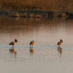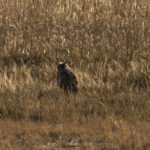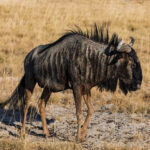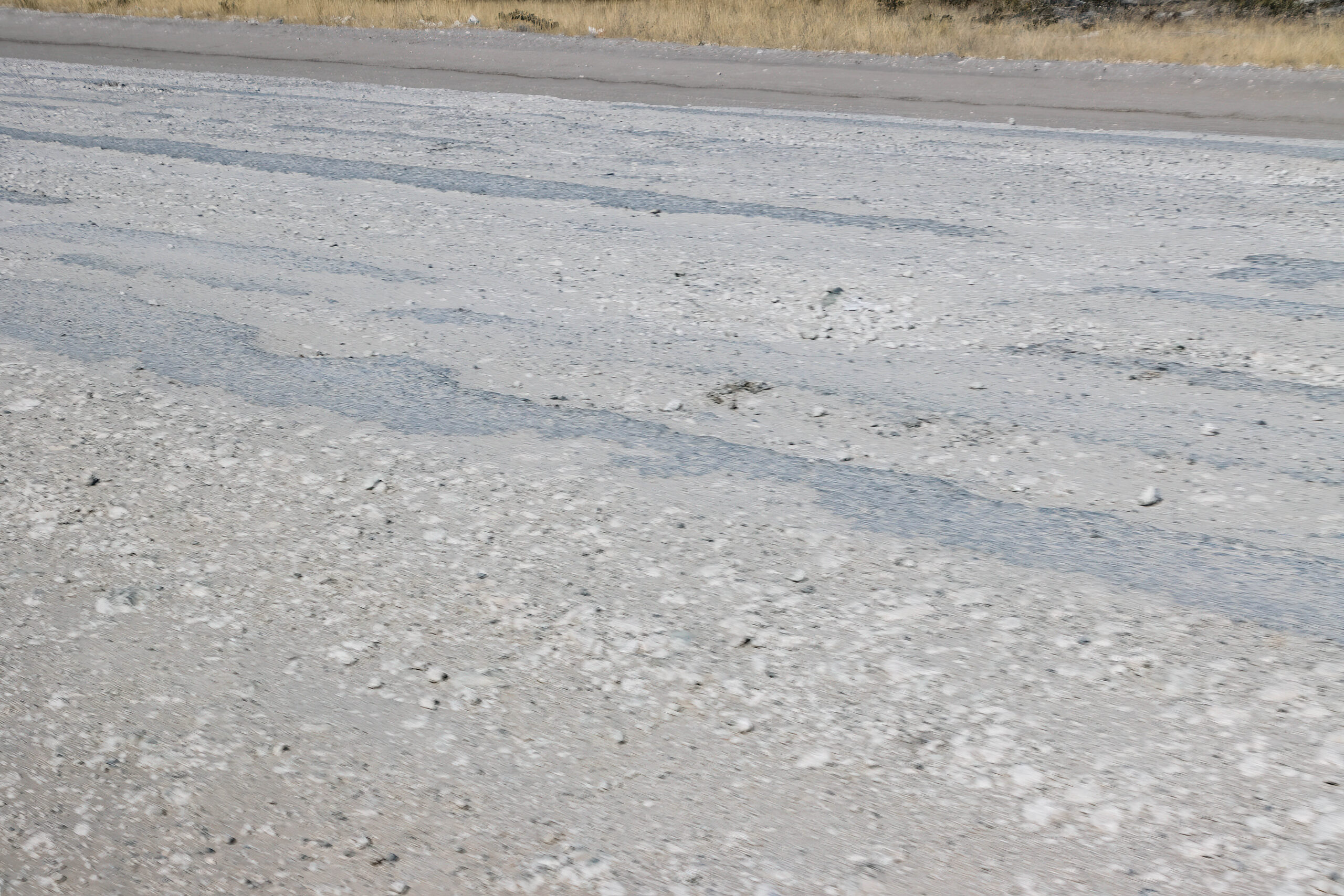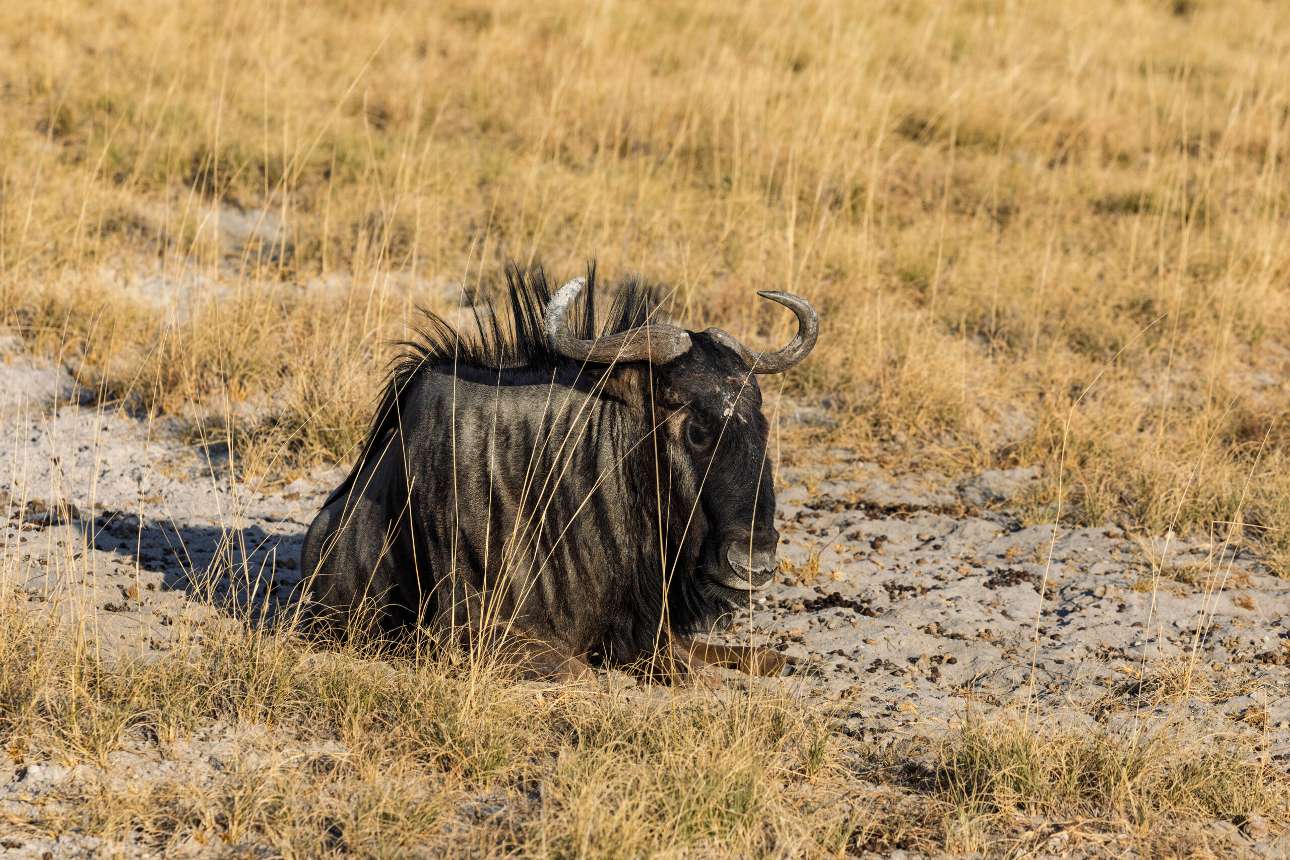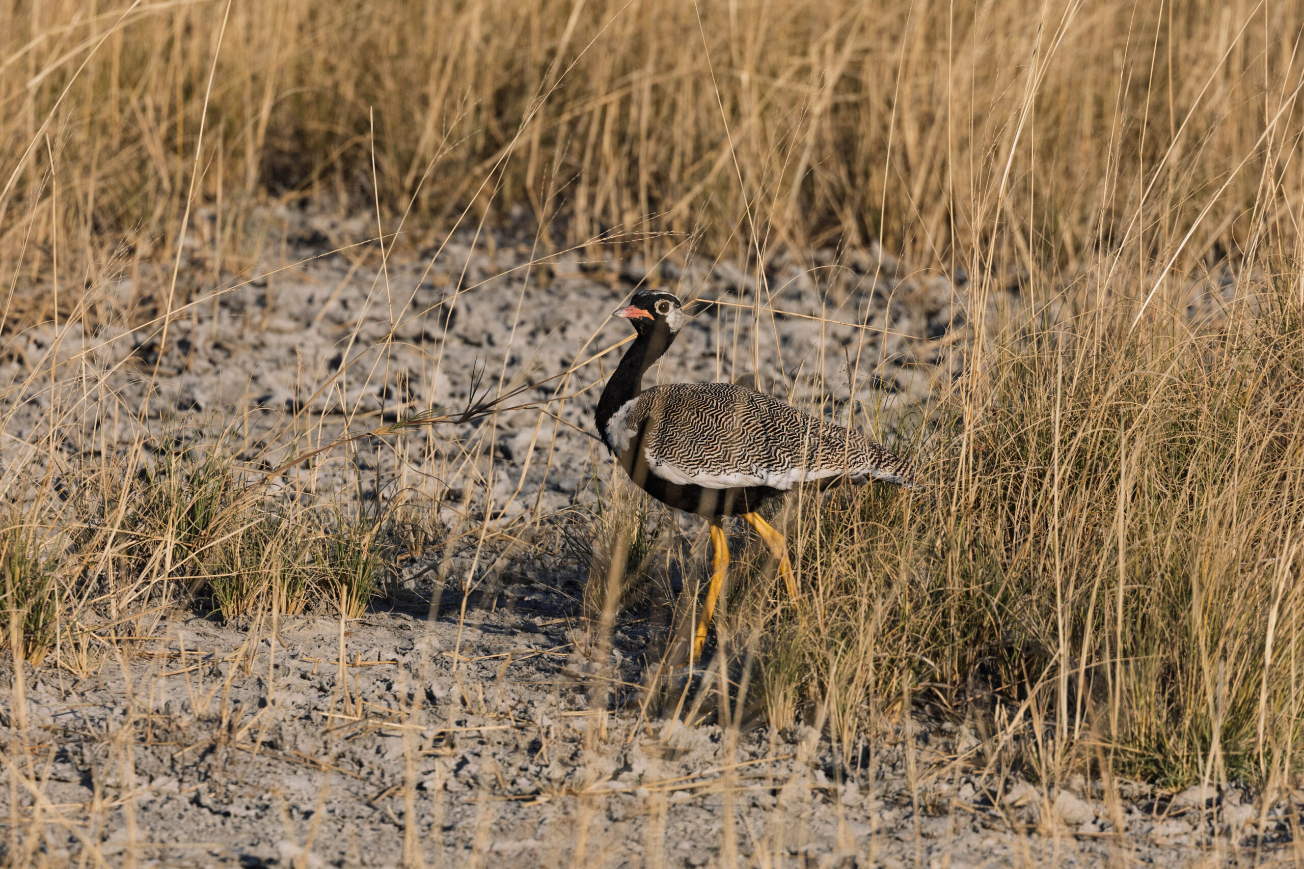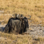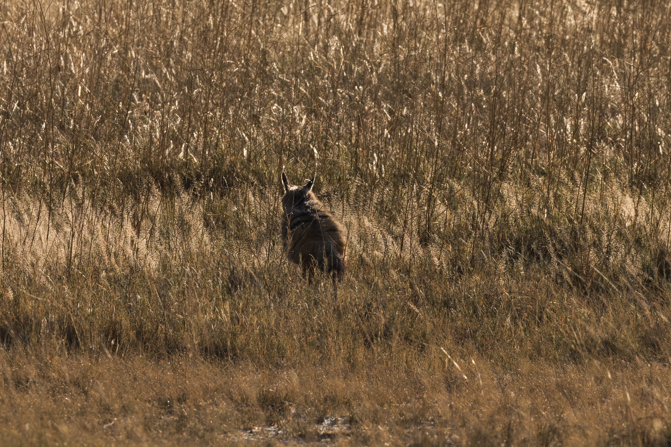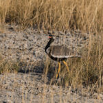 We left the road and drove out onto the salt pan with the salt crust crunching beneath the wheels of the vehicle. Out in the pan, our first sighting was of a blue wildebeest and then we were lucky to be treated to a rare, if fleeting, glimpse of an aardwolf as it ran across the road and disappeared into the long grasses. Next was a white-quilled bustard, which PK told us is also known as the mother-in-law bird or the helicopter bird, because of its habit of hovering before plunging to the ground.