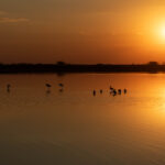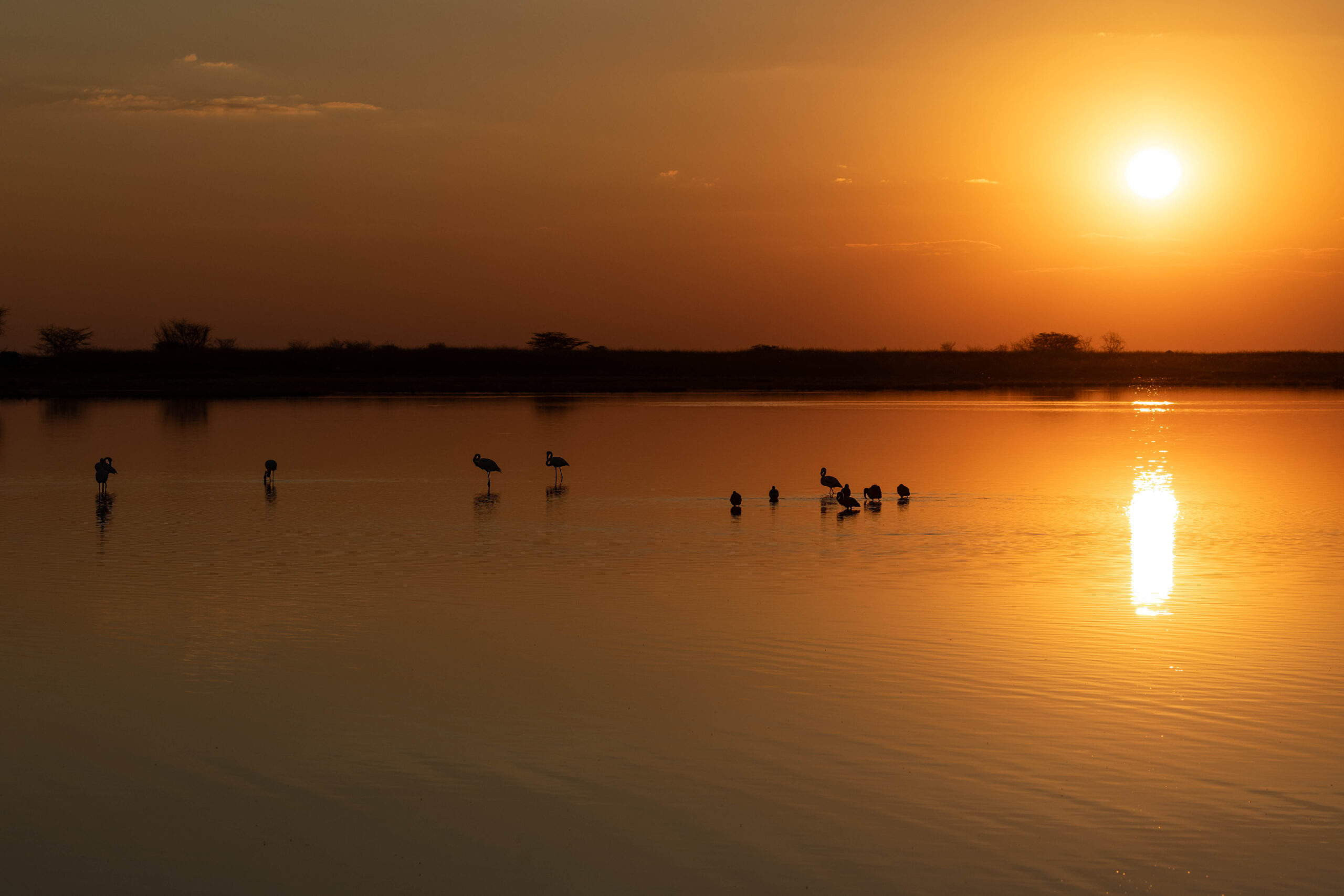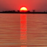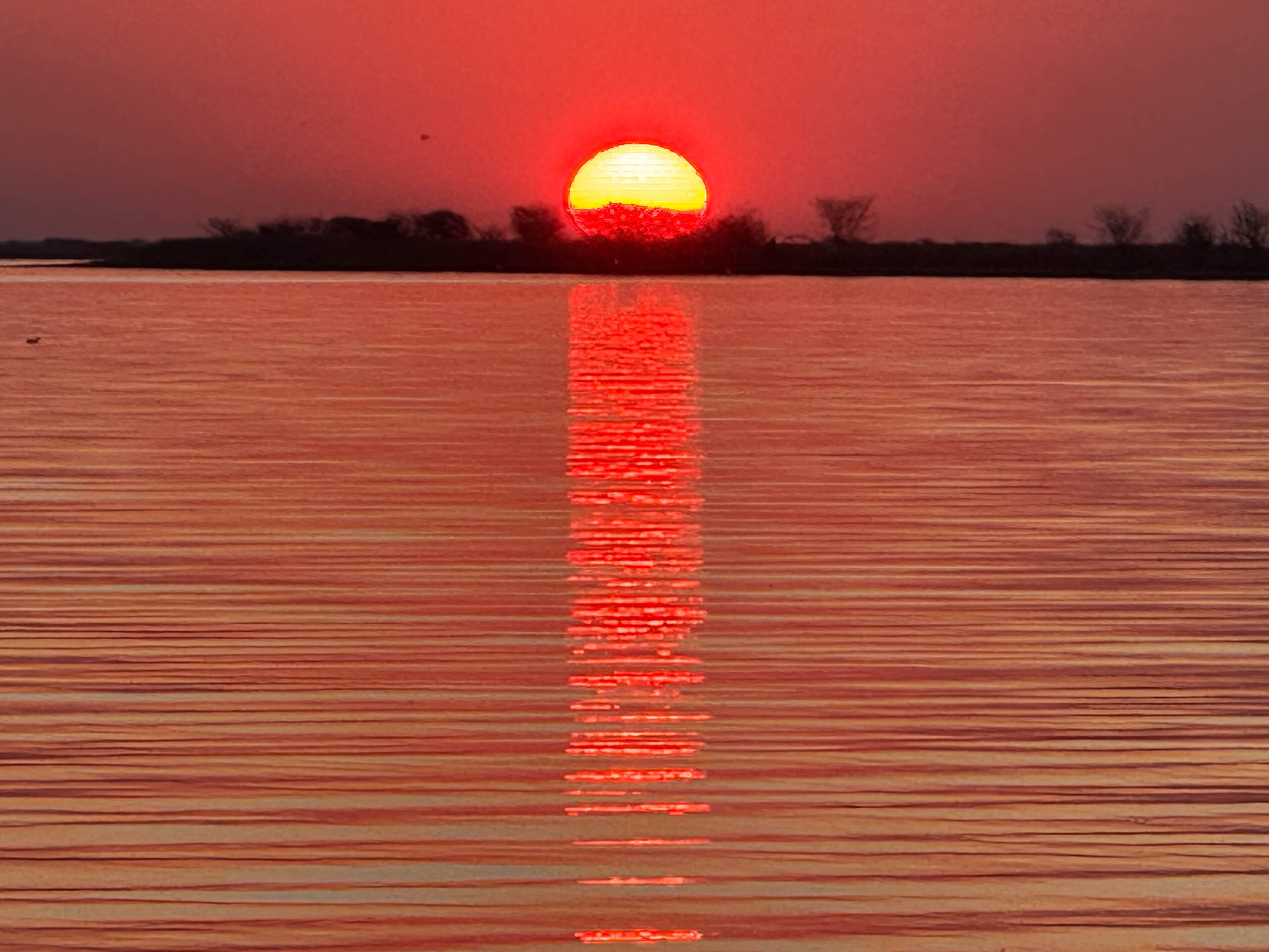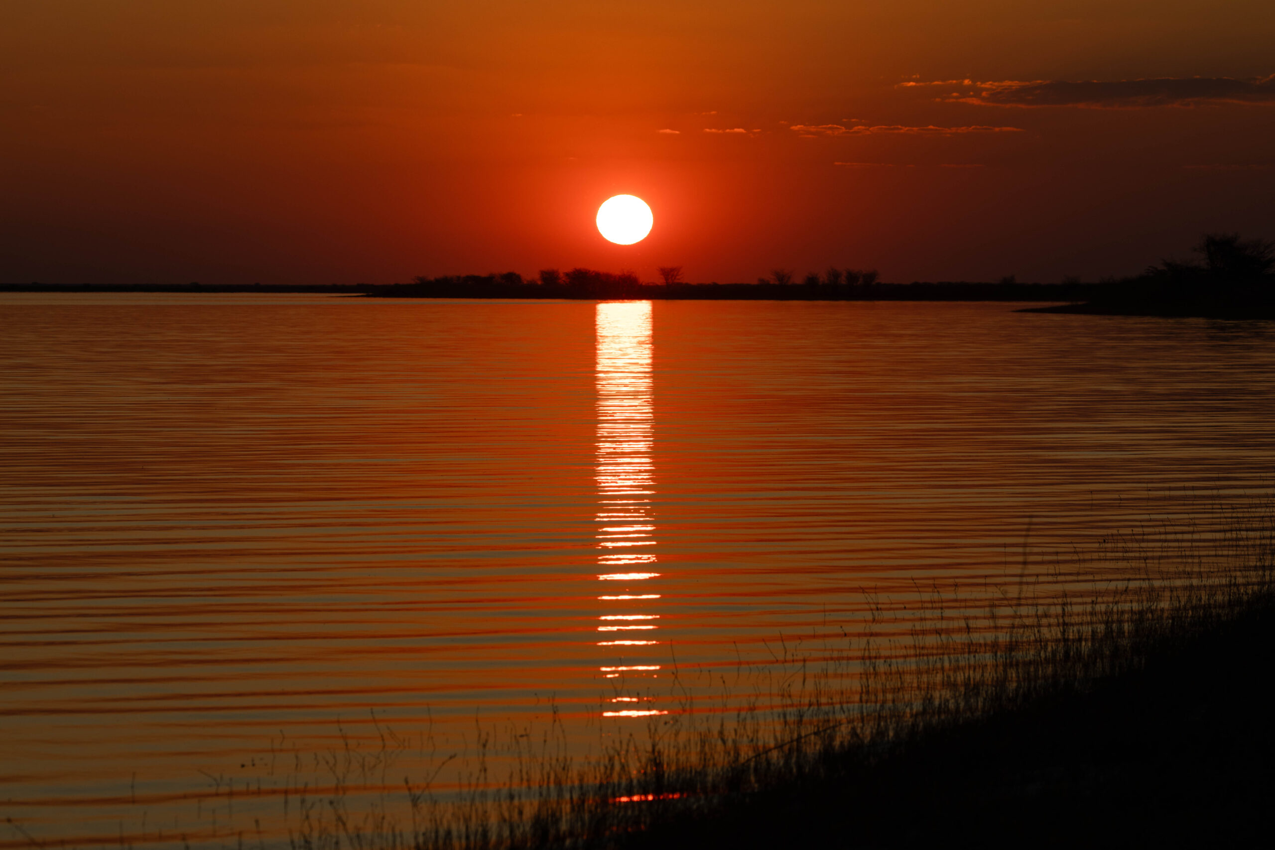 As sunset approached, we pulled up beside the huge expanse of water currently filling the Sua Pan. Another day, another sundowner, with the drinks and nibbles coming out of the coolers for us to enjoy while the sun dipped below the horizon. Tonight’s sunset was a spectacularly red one.