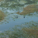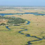 After last minute pre-flight bush toilet, we said our farewells to Solomon and then we were loaded into the Cessna Grand Caravan EX, an eleven-seat utility aircraft operated by Mack Air. Our pilot, Moses, welcomed us aboard, gave us a briefing on what to expect during the flight and then we were off on our aerial adventure. After several circuits over the Okavango Delta, to give us a bird’s eye view of the area we had been exploring on the ground for the last two days, Moses pointed the nose of the aircraft towards Maun.