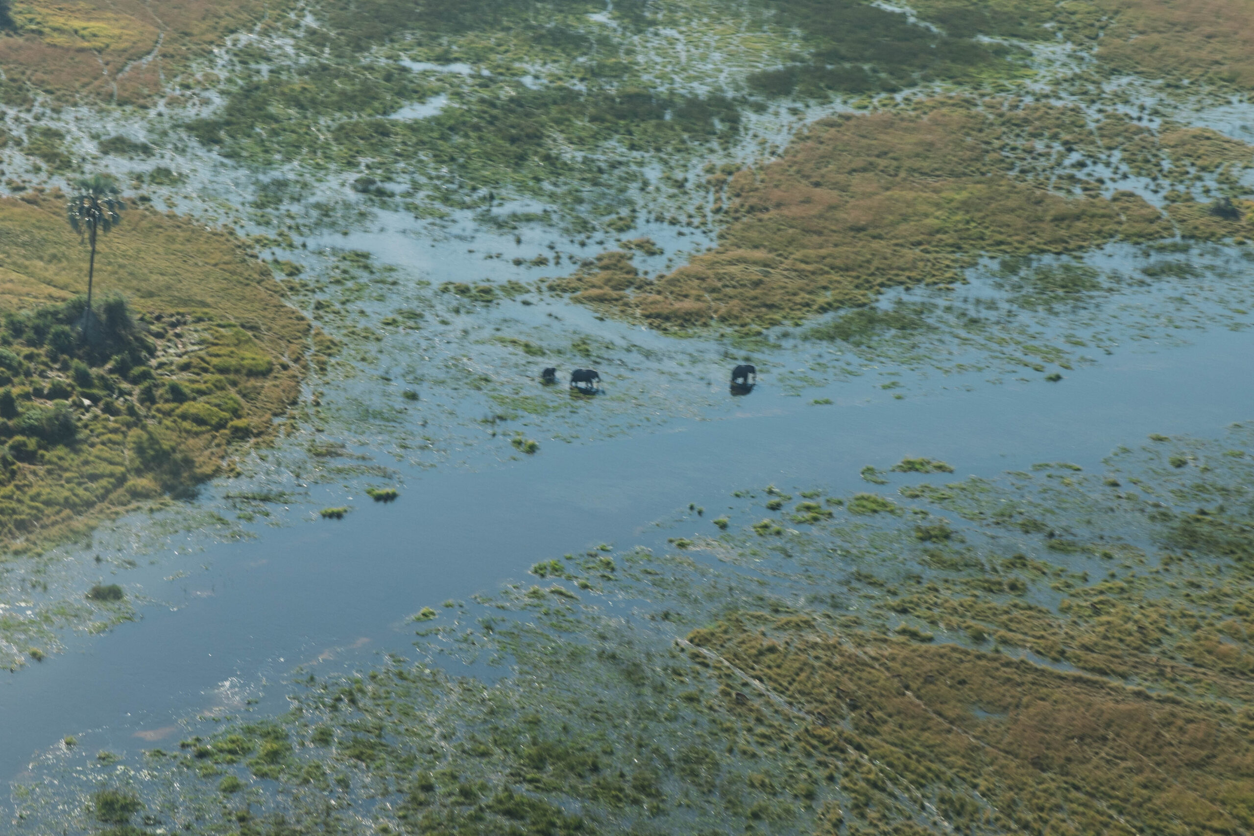 Flying at just 500 feet above the ground we enjoyed fantastic views of the expanded waterways, white clay pans and palm-lined lagoons. We had our eyes peeled for hippos in the channels, and elephants and buffalo huddling in the shade of the trees. It was absolutely incredible seeing elephants, giraffes, hippos and antelopes from the air. Very difficult to photograph the wildlife, even with a window seat, but WOW!