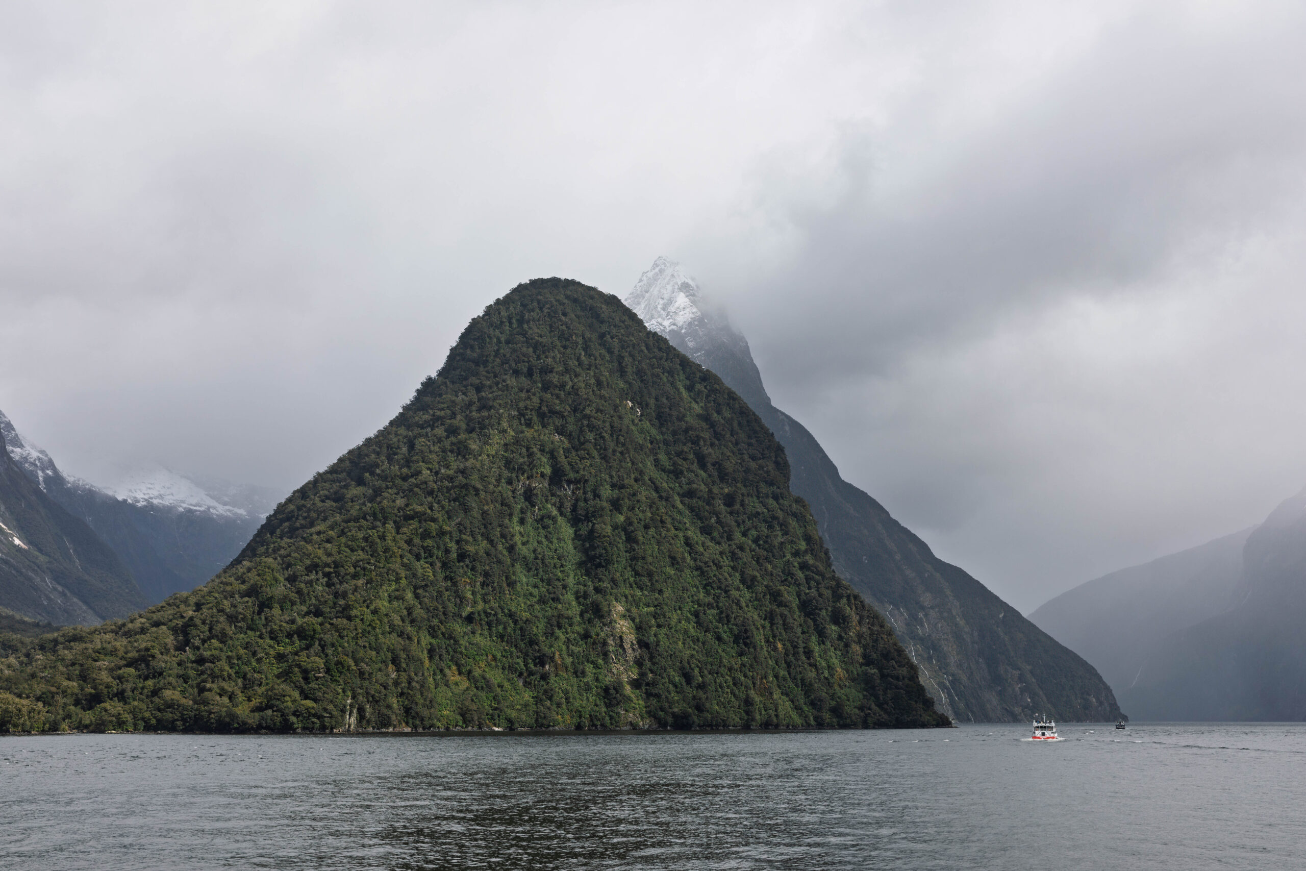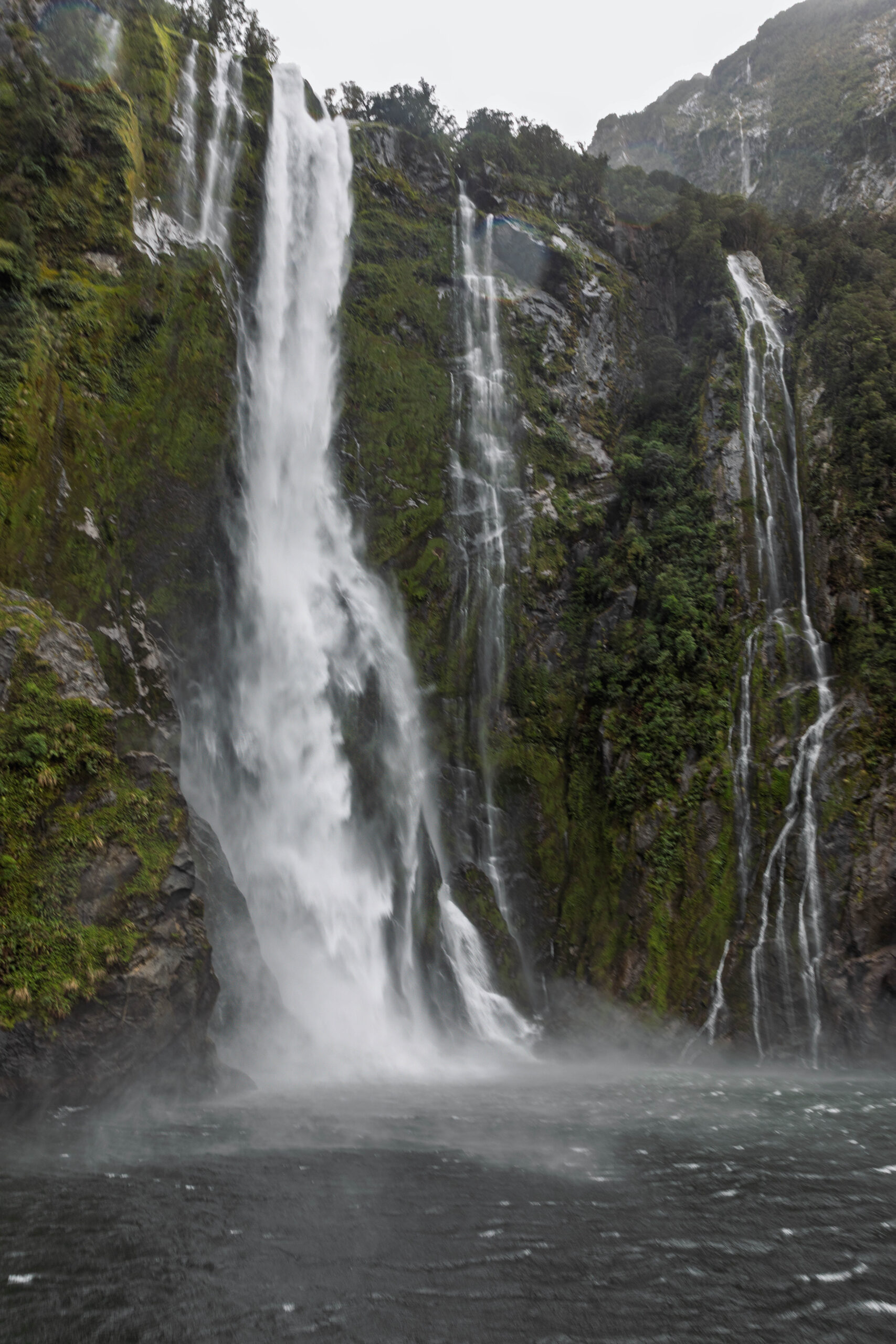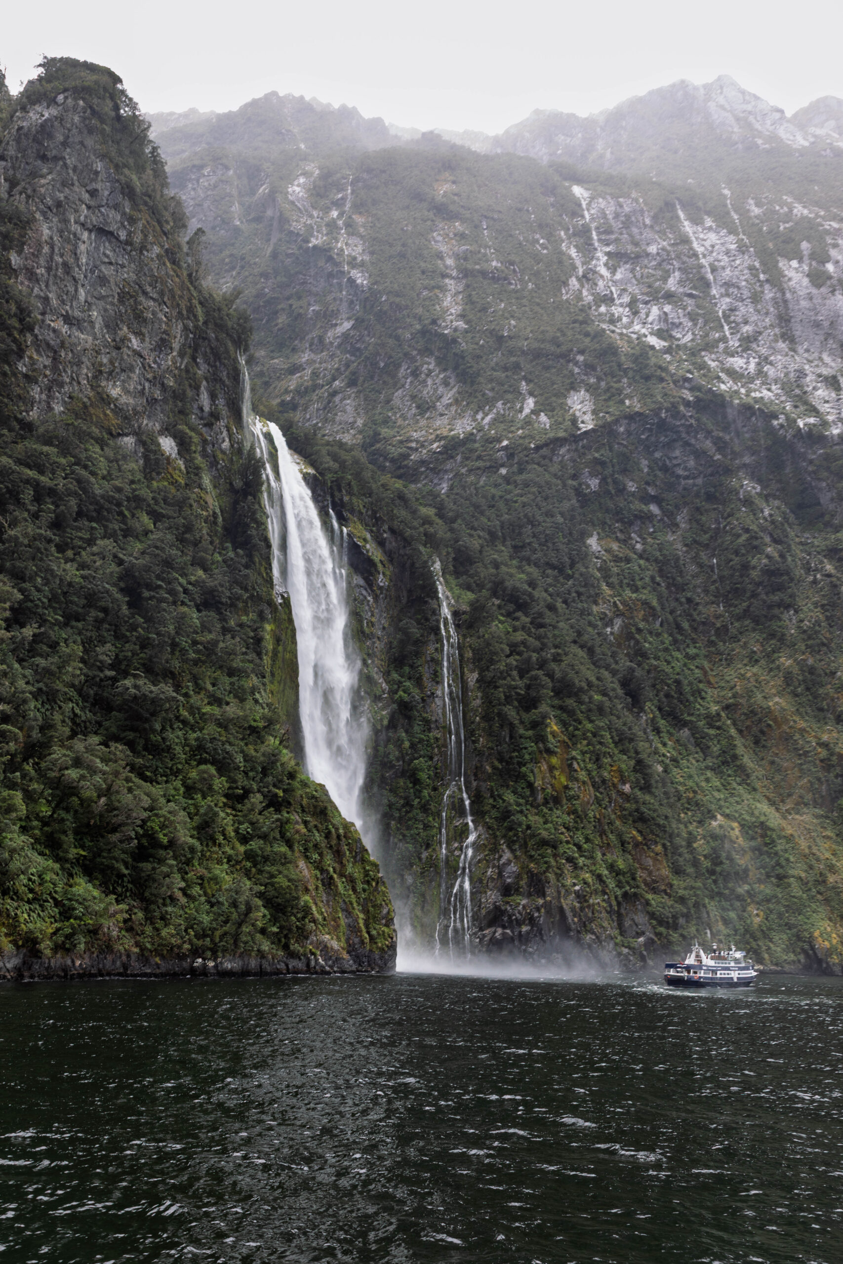 And, sure enough, as we re-entered the sound, it started to rain again. I guess it’s the water laden clouds, arriving from across the Tasman Sea, being forced up the mountains and dropping their load onto the mountains and waters of the sound. Milford Sound is one of the wettest places on earth, receiving around eight metres of rainfall each year!