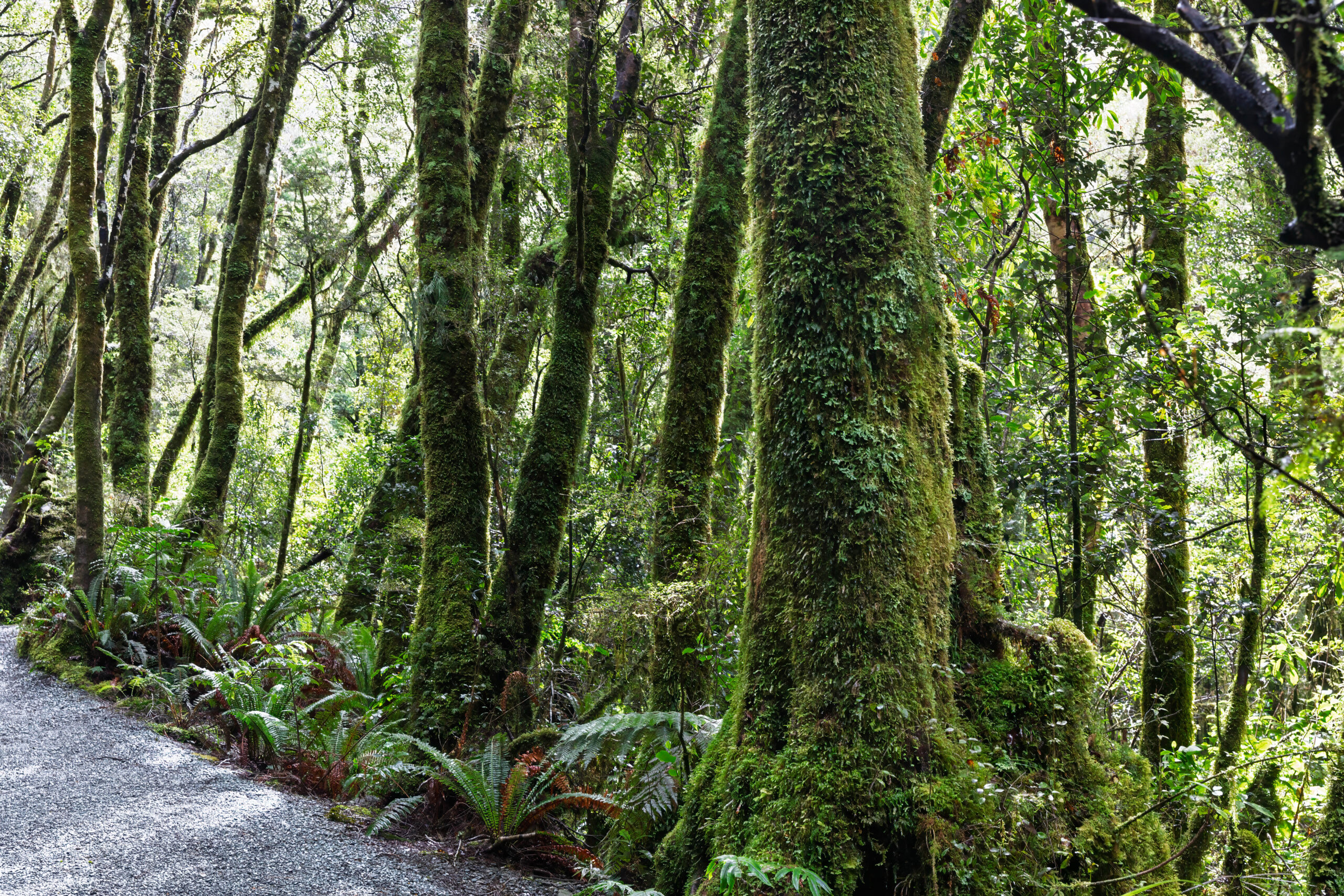 We travelled back past Lake Fergus and Lake Gunn, stopping for quick photos at each. We pulled in at Cascade Creek, but found only a camping ground. At Mirror Lakes they lived up to their name, providing amazing reflections of Mount Eglinton and the Earl Mountains opposite. The lakes were formed from the Eglinton River in the early 1970s after a large storm event severed bends from the main watercourse, leaving behind oxbow lakes.