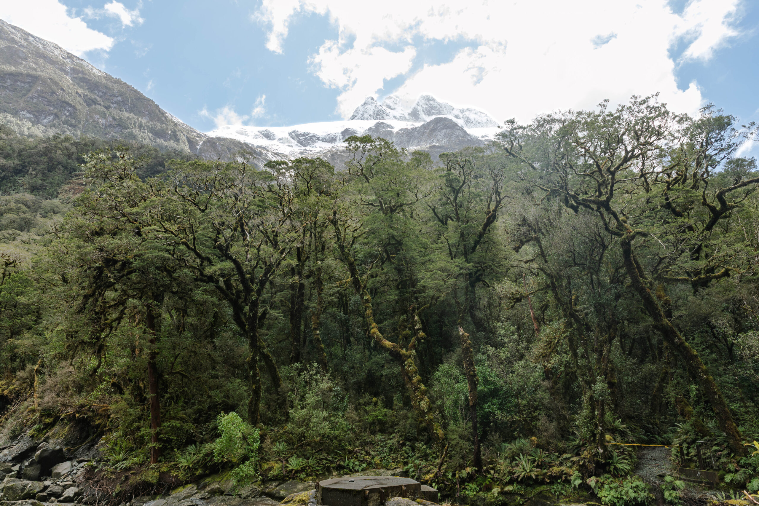 Another stop at Falls Creek where we encountered yet another kea. There are only supposed to be about 5,000 of these birds left in the wild, yet we were lucky enough to see about a dozen of them today. Finally, a kea-free stop where we looked out over the Hollyford River and Mount Christina, Mount Crosscut and Mount Lyttle and the Humboldt Mountains and Ocean Peak.