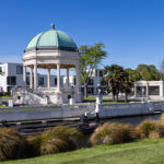 We walked through Cathedral Square where Christchurch Cathedral remains shrouded in scaffolding. They do seem to have made some progress with the reinstatement works since our last visit but, apparently, the cathedral will not re-open until 2030. After our wander around the city centre, we were heading back to the car when we spied a Golden Retriever across the Avon River at the Edmonds Band Rotunda, seemingly on his own and looking for his owner.