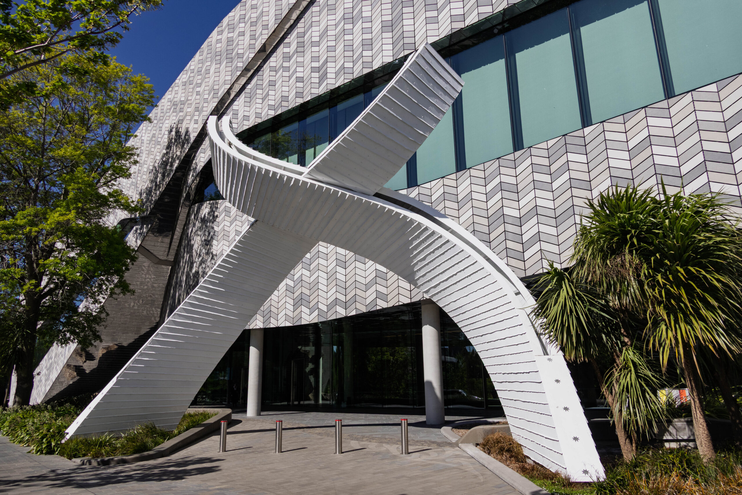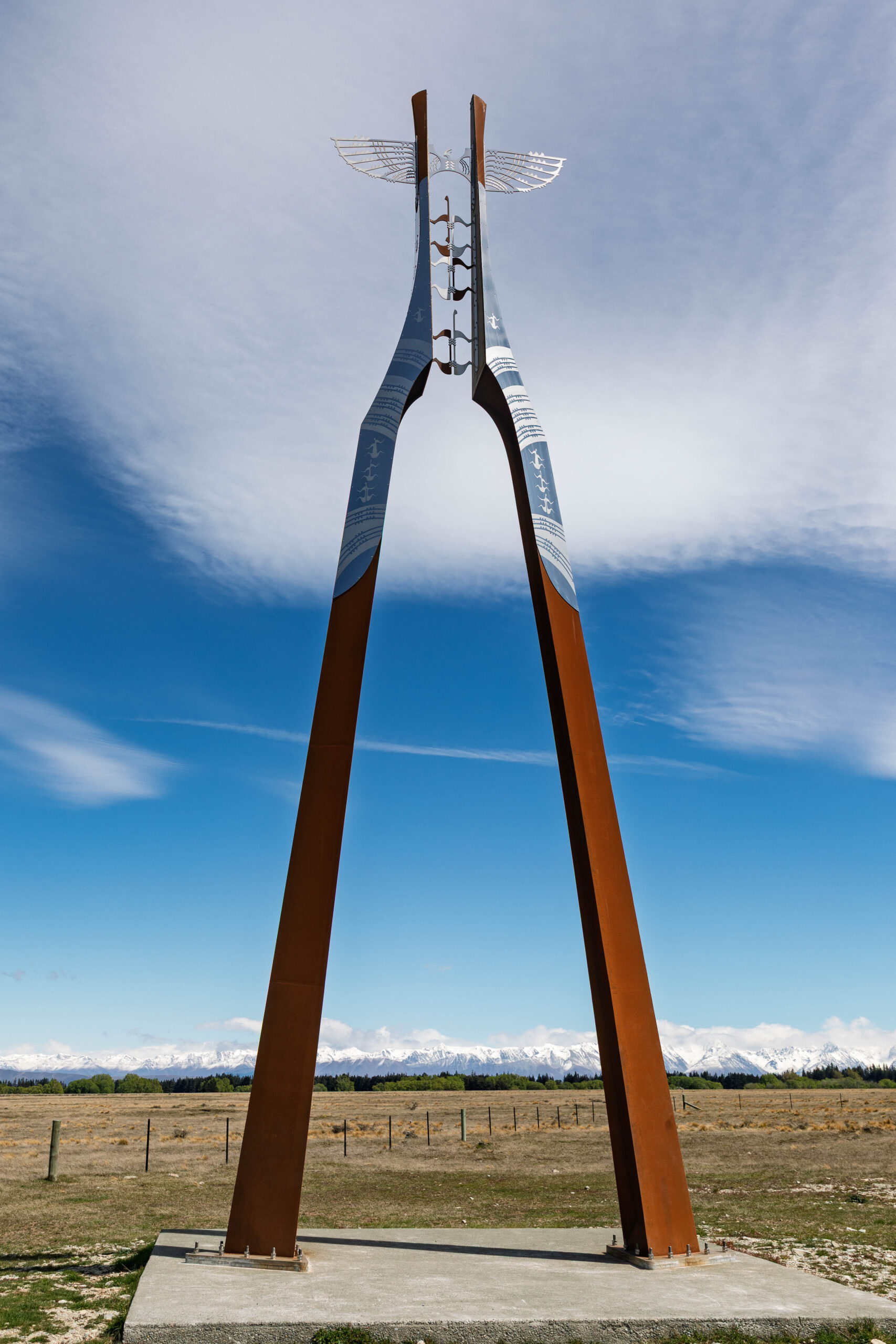 We went back outside and snapped a couple more photos of Mount Cook with ‘almost’ no cloud. Then, since we had to walk past the statue on the way to the car, tried that door again and … it opened. We were able to exit via another door onto the terrace where we tried to take photos of Sir Ed looking at Mount Cook. It’s a bit of a stretch to frame them in the same shot.