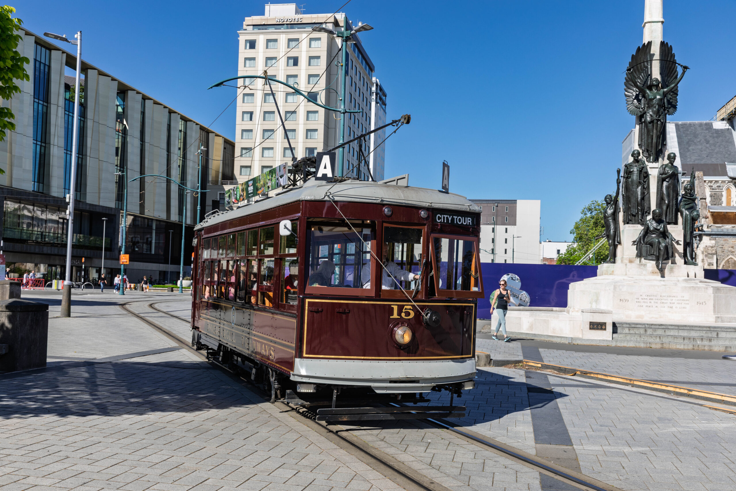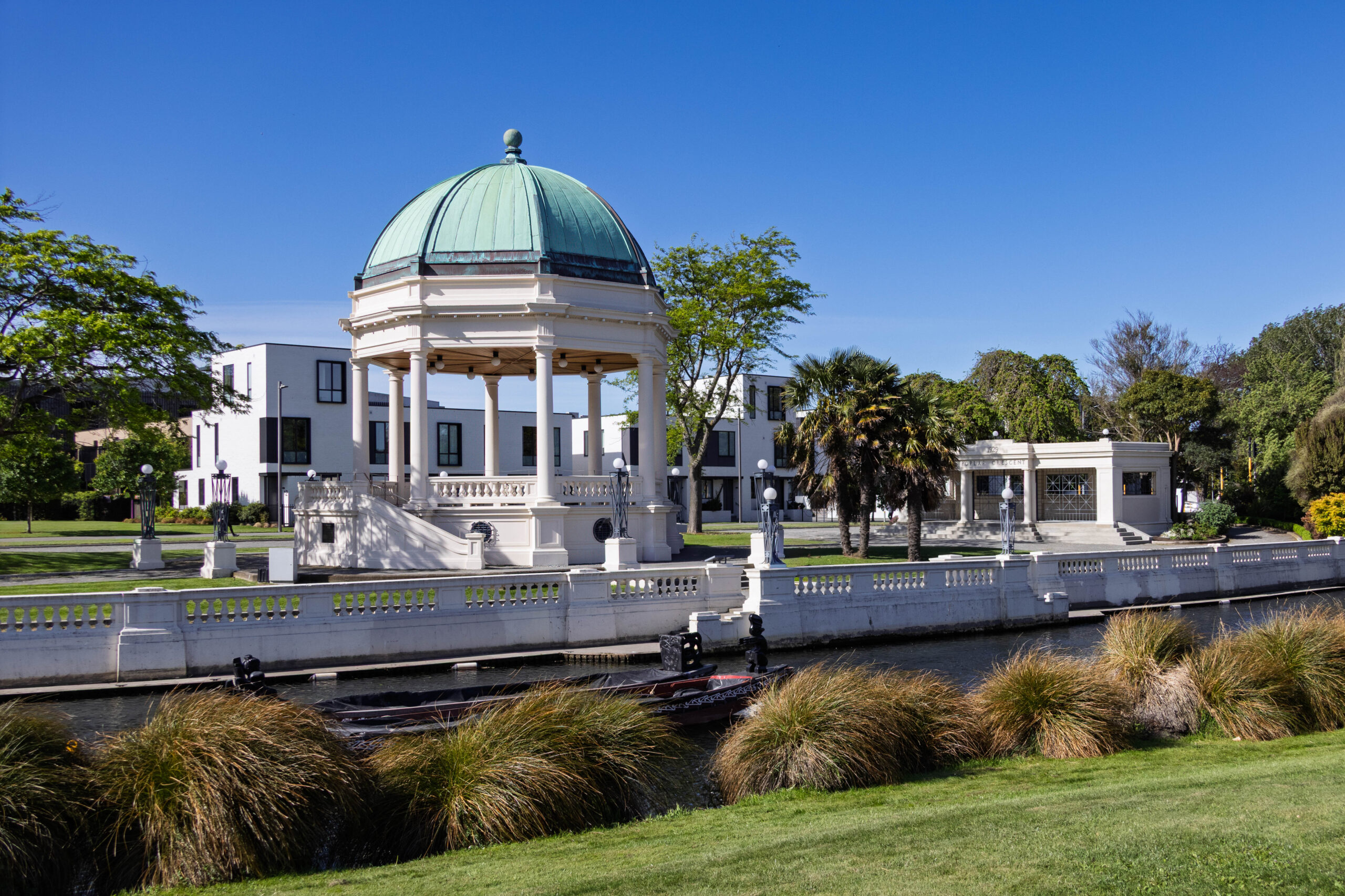 We walked through Cathedral Square where Christchurch Cathedral remains shrouded in scaffolding. They do seem to have made some progress with the reinstatement works since our last visit but, apparently, the cathedral will not re-open until 2030. After our wander around the city centre, we were heading back to the car when we spied a Golden Retriever across the Avon River at the Edmonds Band Rotunda, seemingly on his own and looking for his owner.