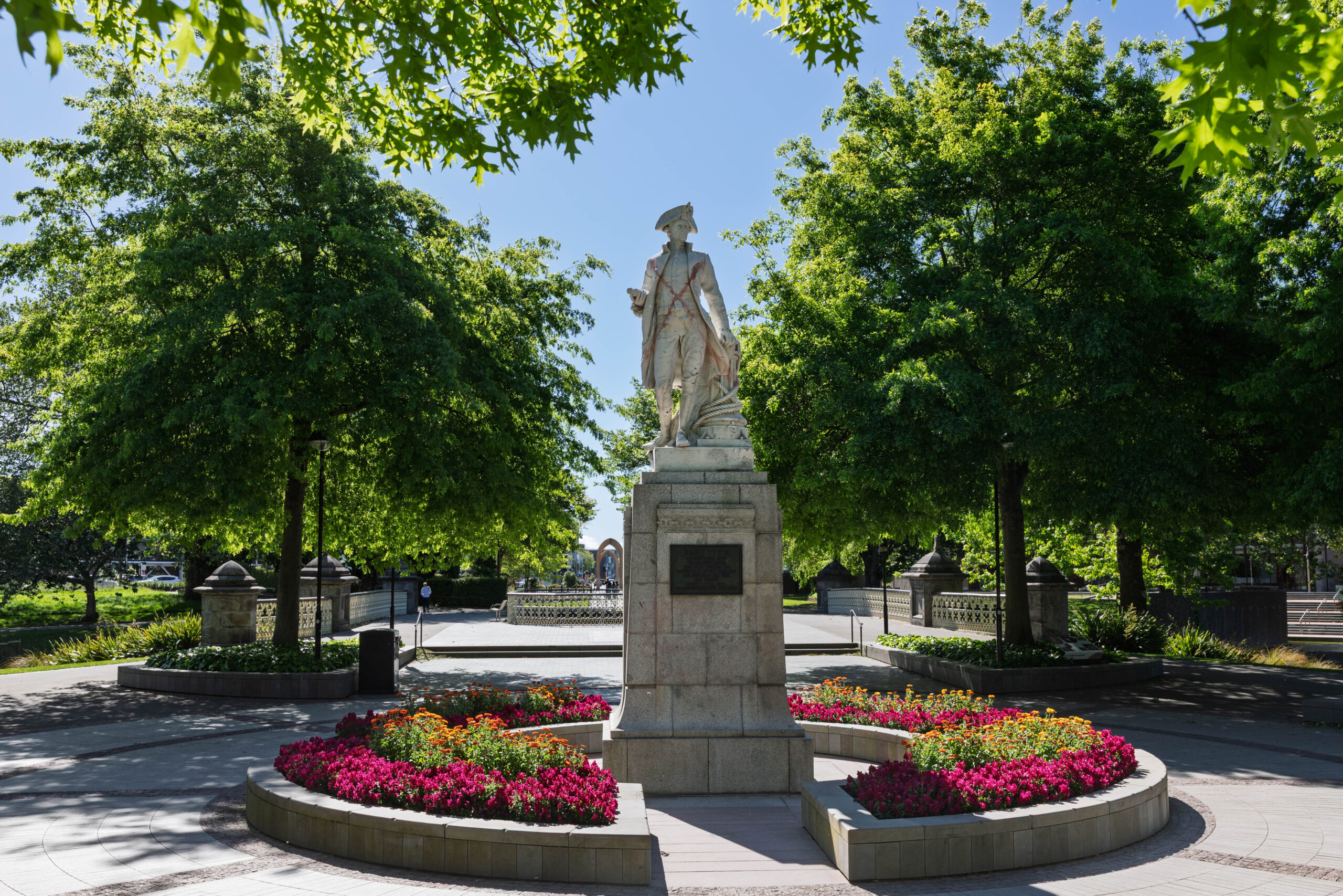 From there we re-traced most of our route from nearly three weeks ago, when we made our way south on State Highway 1. Although we did travel a bit more directly to Christchurch, without a detour onto the Banks Peninsula today. Arriving in Christchurch mid-afternoon, we parked the car near Christchurch Cathedral and opposite Victoria Square. We wandered through the gardens in the square where we found statues of Queen Victoria and Captain Cook.