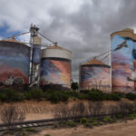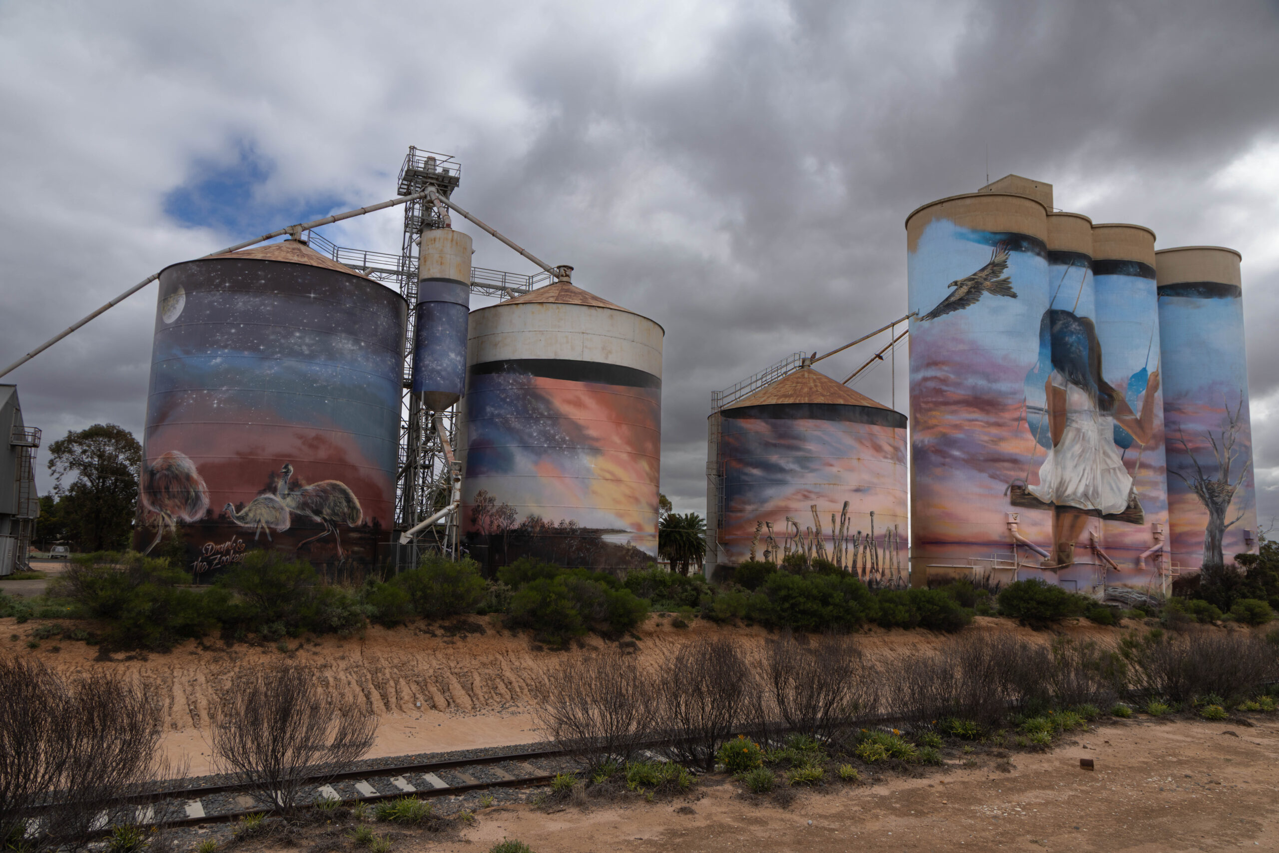 Arriving in Sea Lake we made a quick stop at their art silo too. Again, we have seen it before, but took photos again today. These silos were painted by Joel Fergie (aka The Zookeeper) and Travis Vinson (aka Drapl) in October 2019. These silos feature a young girl swinging from a mallee eucalyptus and gazing out over the endless vista of Lake Tyrell. A wedge tail eagle and emus also feature in the artwork.