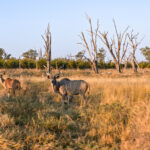 Our first animal this morning was a Steenbok, followed by the now somewhat ubiquitous hornbills. We turned into the area of the park known as Paradise, where we found red lechwe. Solomon identified some lion tracks and there were rumours of a leopard sighting. We made a civilised toilet stop at the facilities at one of the reserve’s other gates, where we also saw some new wildlife, tiny bats hanging under the eaves. Those aren’t seeds on the ground, they’re bat scat!