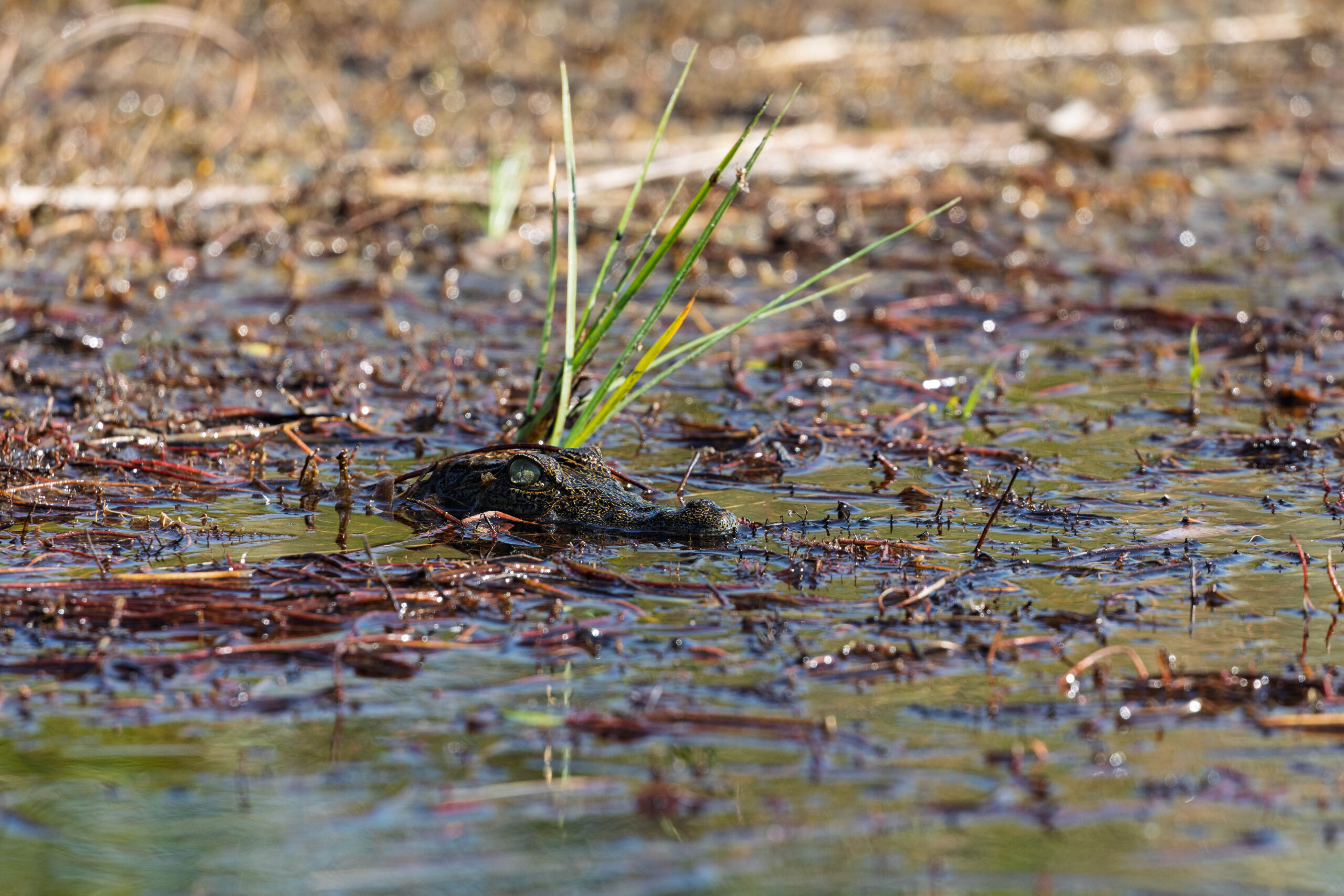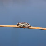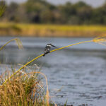We left the reed channels behind us and made our way out into the huge expanse of Xaxanika, the largest permanent lagoon in Moremi. We continued to see plenty of bird life: African fish eagle, African darter and pied kingfisher. Blade stopped the boat and picked out a reed upon which clung an Angolan reed frog. Being a bit of a poser, the frog stayed on the length of reed while we passed it from hand to hand to have a closer look and take photographs.