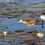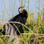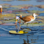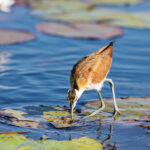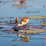 We saw a family of jacanas. First, a juvenile from last year’s clutch, then the two surviving chicks (of four) that were hatched this year. Finally we saw the daddy jacana who apparently is in charge of watching the chicks while their mother is off finding a new partner!!