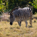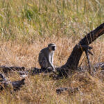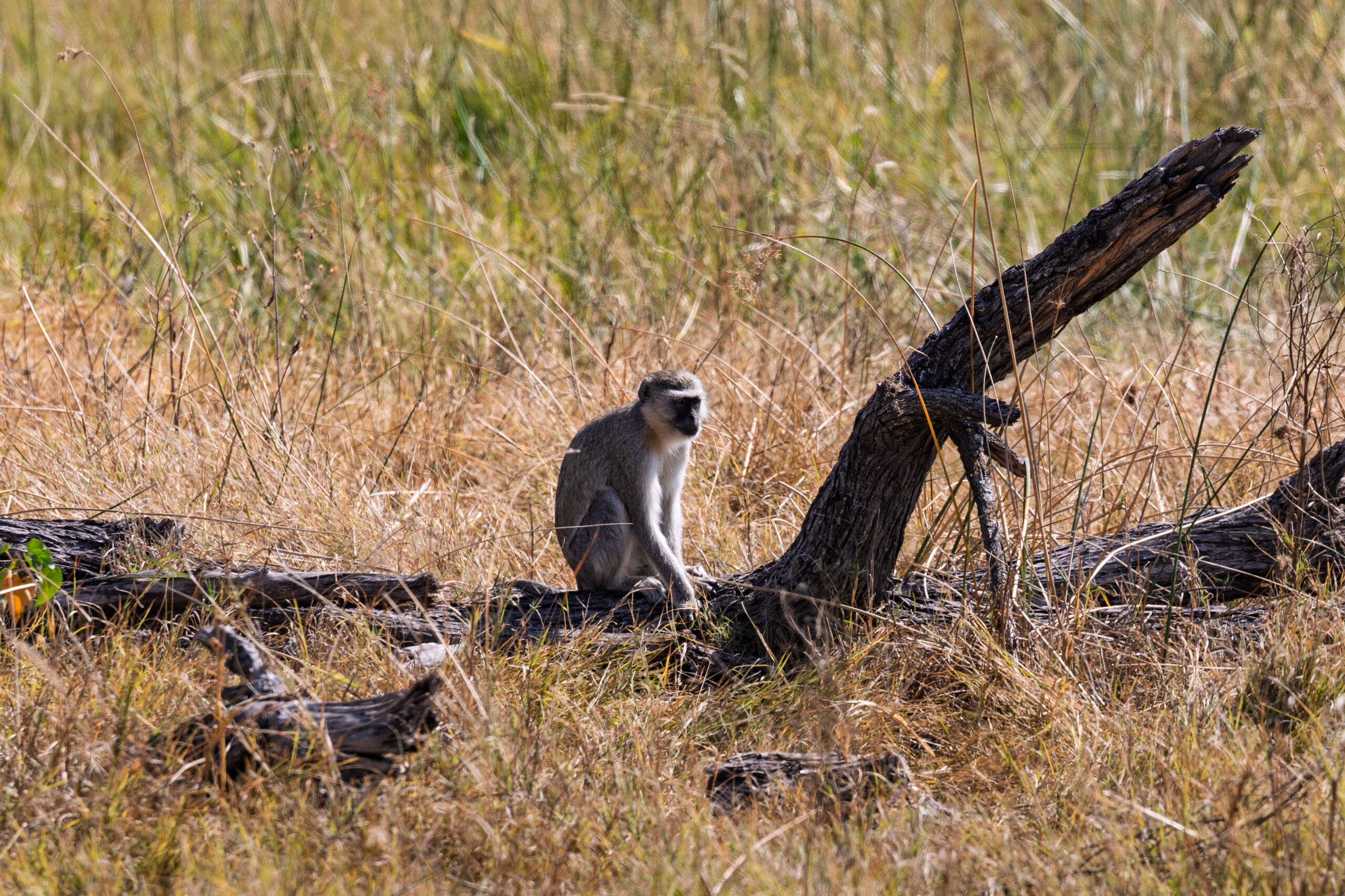 More zebras – or as Wian calls them, donkeys in pajamas – a lovely tower of giraffes feeding on a stand of candle pod acacias, elephants, and a group of male red lechwe. Some primates, in the form of vervet monkeys and then some reptile action, a crocodile sunning itself on the water’s edge.