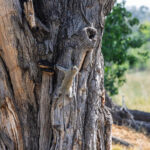 After seeing a couple of zebras, we spotted a herd of elephants near the water. Solomon tried to drive us closer but already the water has encroached on the access track that he would have been able to use a couple of weeks ago. And the list goes on: African fish eagle, impalas, hippo, hippo, water monitor, elephant. Something new, a bearded woodpecker before more impala, another elephant and more zebras. It was lovely to see a troop of chacma baboons in the wild rather than scavenging on the outskirts of town. Thank goodness some of them still live their best life in the reserve.