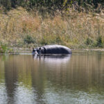 Wian and Solomon met us at the dock and we climbed aboard the truck again to start the journey back to camp. More zebras, antelopes (probably impalas), another lone elephant, waterbuck and a massive breeding herd of elephants. After one last hopeful turn around the leopard’s lair (alleged!) we saw a hippo in the distance and then Solomon drove us closer to the herd of elephants. So many elephants, including several calves. It was very exciting.