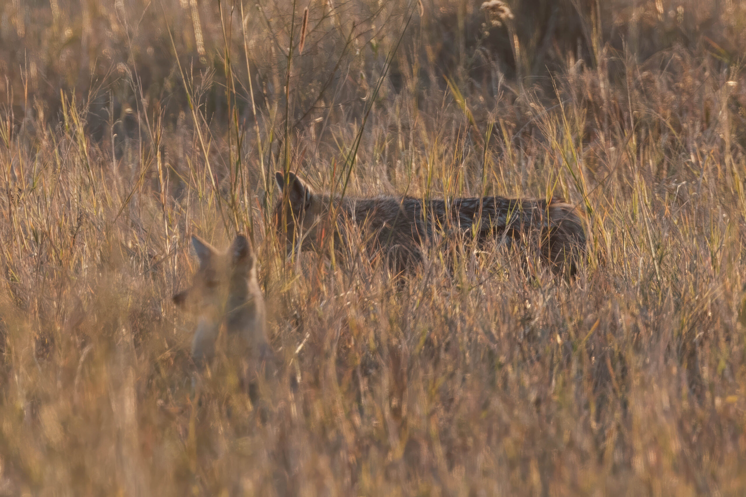 More zebras, kudu and some side-striped jackals as we motored along. The late afternoon sun was beautiful on the trees beside the road making them look much more autumnal than they did this morning. We were overtaken by some rangers who reminded Solomon that he needed to make camp before dark. After a few more kilometres, we caught up to the rangers finding they had stopped to collect some firewood. We wondered if they had stopped to kill some time to give Solomon a chance to be back at camp before they had to issue him with a fine??
