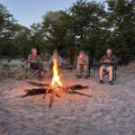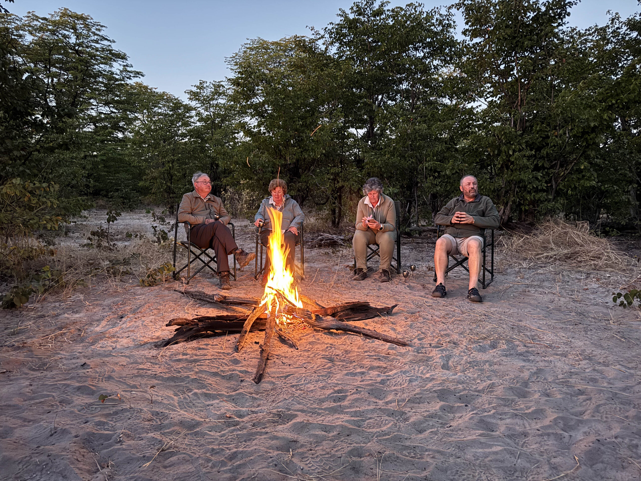 After the briefing the staff filled our buckets with warm water and we were able to take our first bucket showers to freshen up after our dusty drive between Maun and our campsite. It was short and sweet but we felt better for it, then headed to the campfire for drinks and nibbles. Some enjoyed G&Ts, while others stuck to beer and wine or … sparkling water.