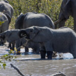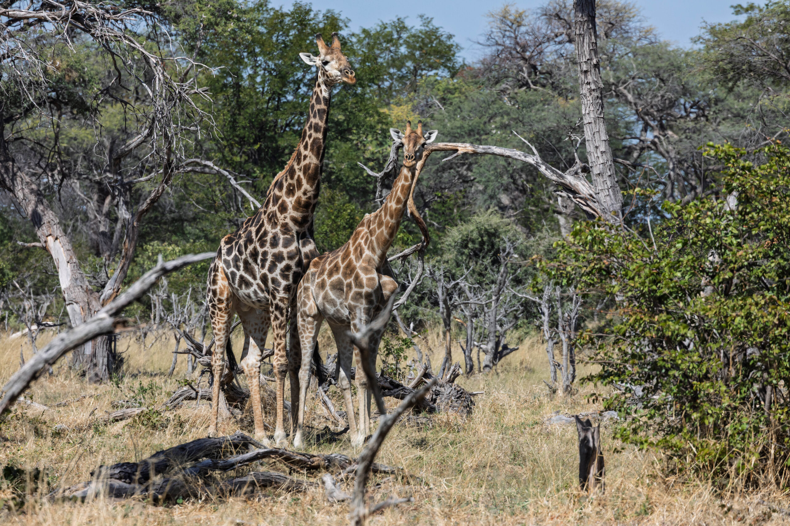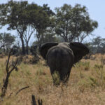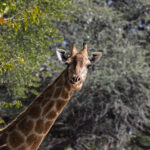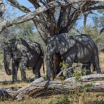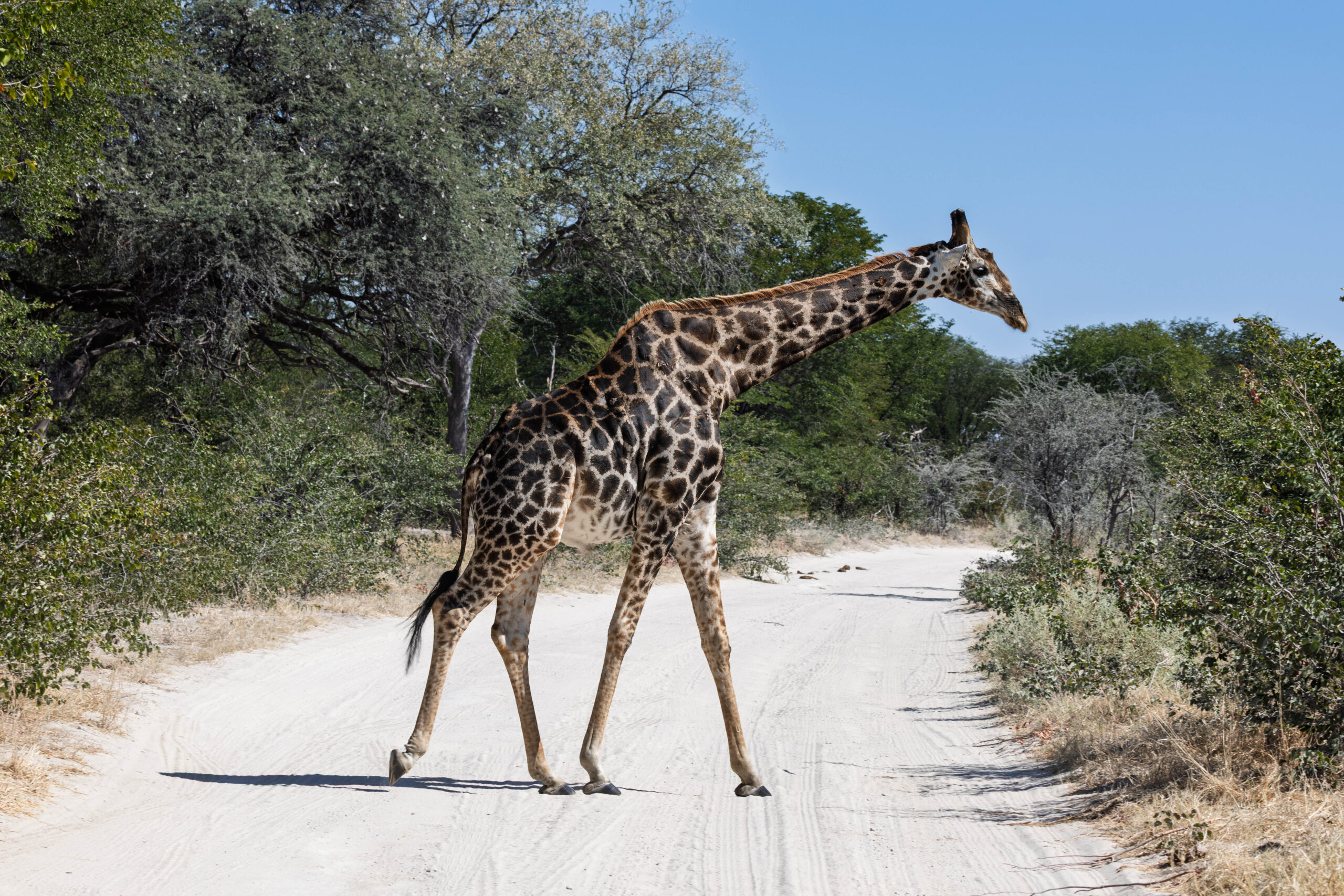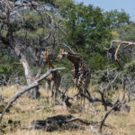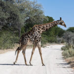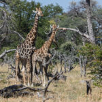 Soon after we arrived at the buffalo fence and the veterinary checkpoint that exists to prevent foot and mouth disease being transferred between the north and the south. After passing inside the fence we started to see giraffes – before and after our morning tea (bush toilet) stop. Still not sick of seeing giraffes in the wild. We saw a lone bull elephant and a pair of giraffes where we thought we might be going to see some action because the bull was pressing up very close to the rear of the cow and, according to Solomon, it is the season for making baby giraffes.