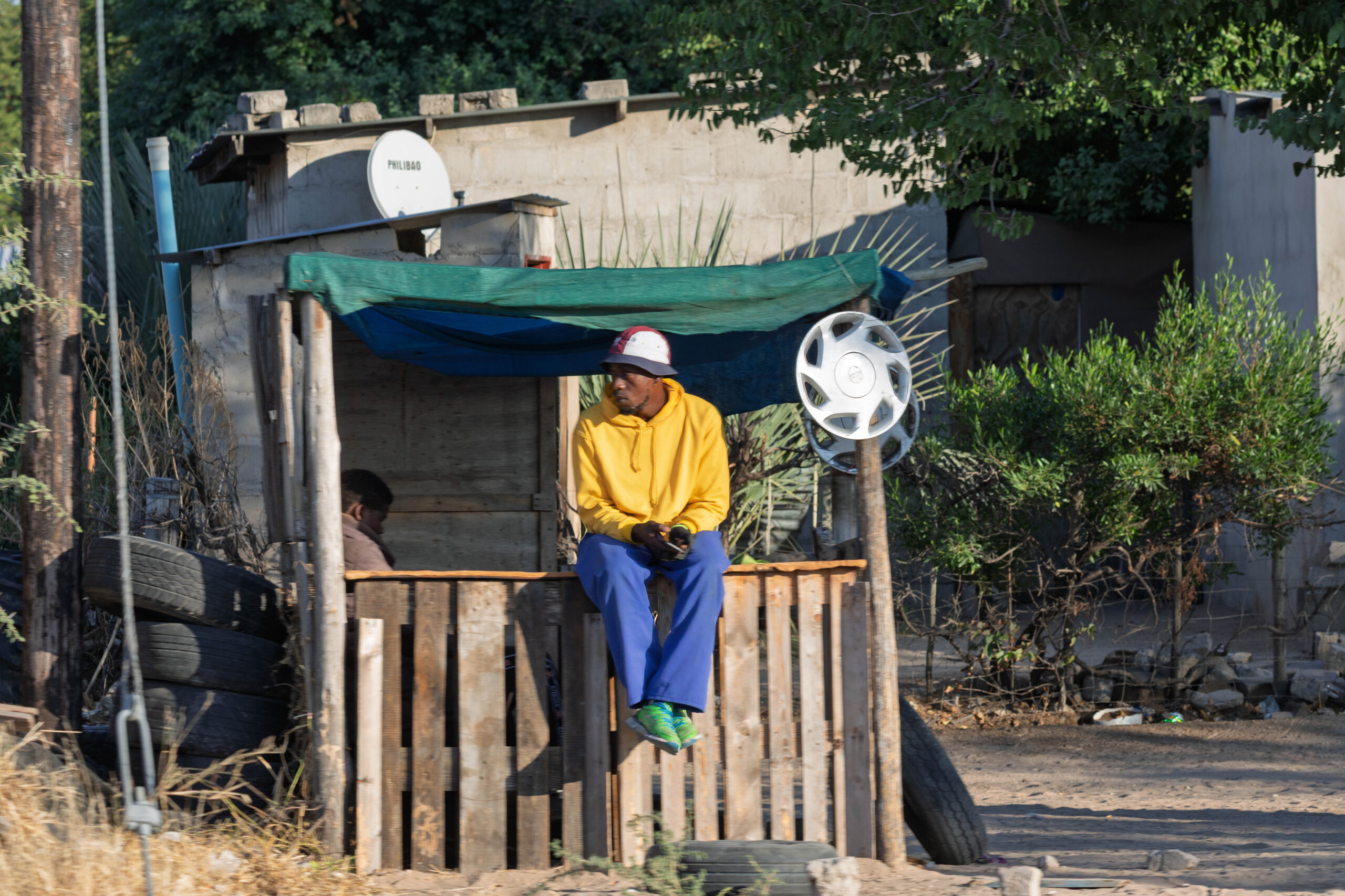 Not far out of town, Solomon and Wian locked the hubs to start tackling the sandy track. The track was road adjacent but allegedly a smoother ride than driving on the road? At this stage of our game drive, we were only seeing domestic livestock – donkeys, cattle and goats. As we left the inhabited compounds, with their small livestock holdings behind us, it was time for our first bush toilet stop.