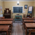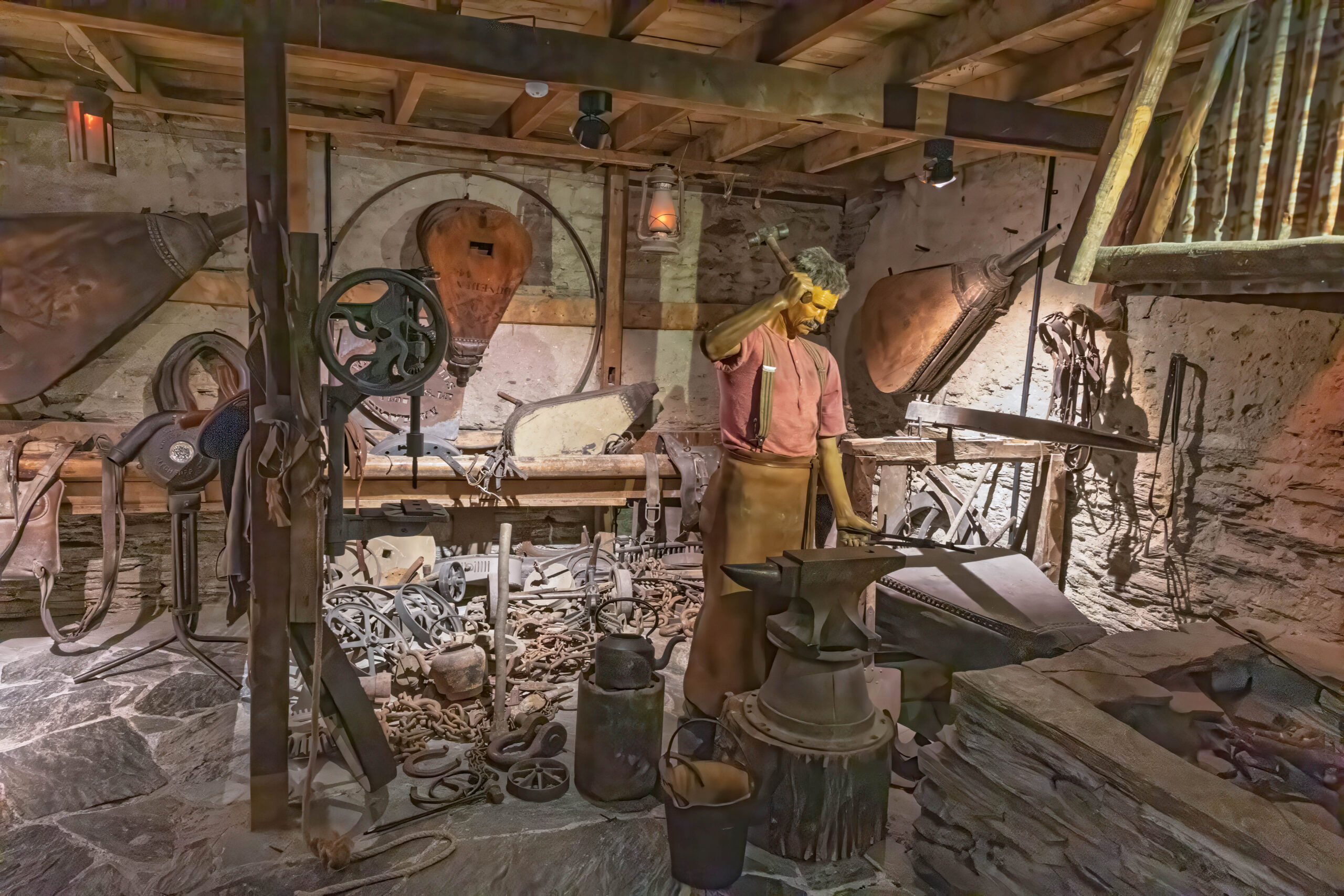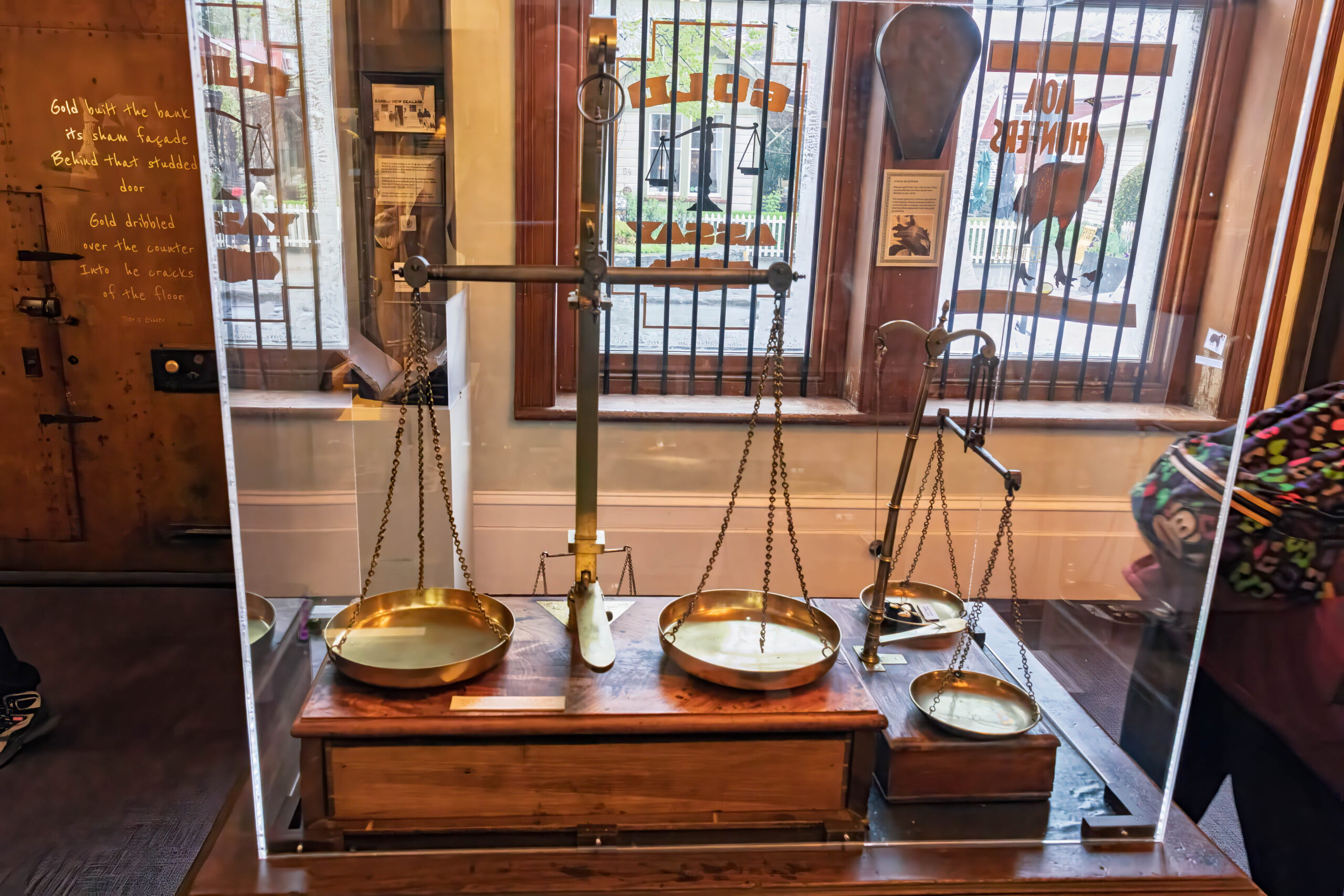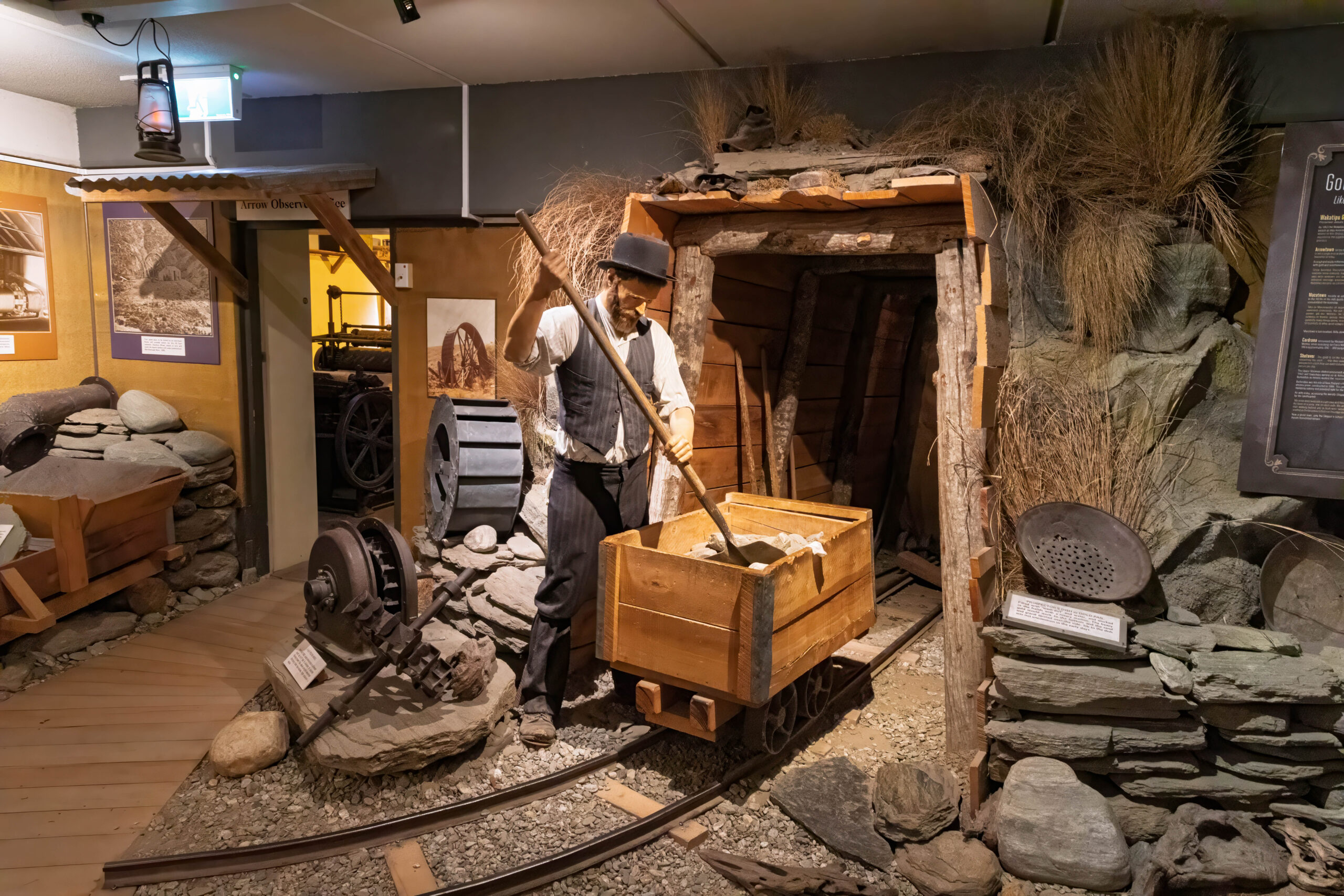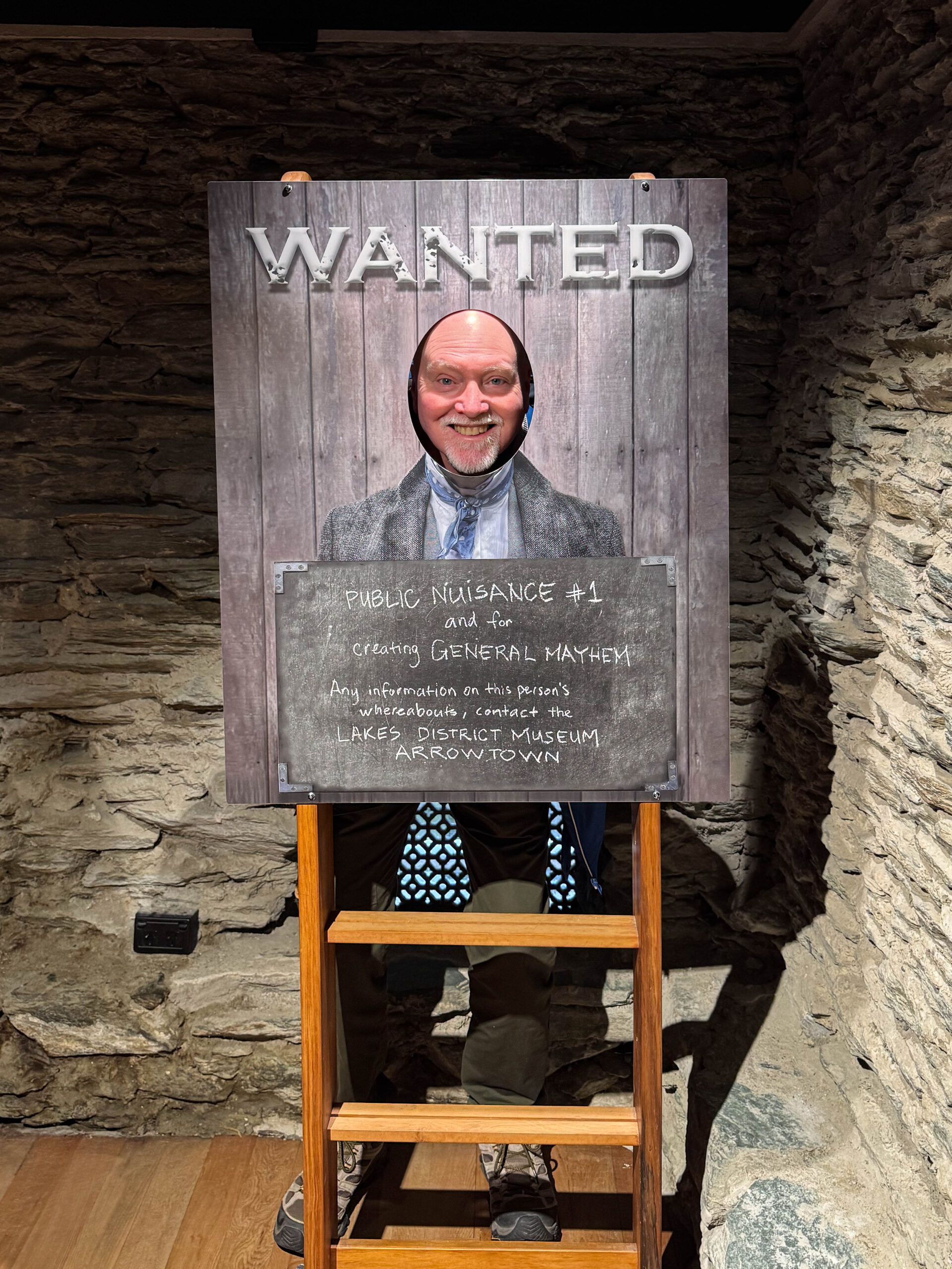 Continuing on our way, we passed the turnoff for Coronet Peak (ski field) and, on a fine day, we probably would have driven up to check out the view. Today, with visibility very poor, we didn’t bother to take the drive up the mountain. We continued along Malaghan Road, soon arriving in Arrowtown with no discernible improvement in the weather and parked the car near the Arrow River. We sat for a bit trying to decide what to do in the rain. We had driven past the Lakes District Museum & Gallery, so decided to spend a bit of time in there.
