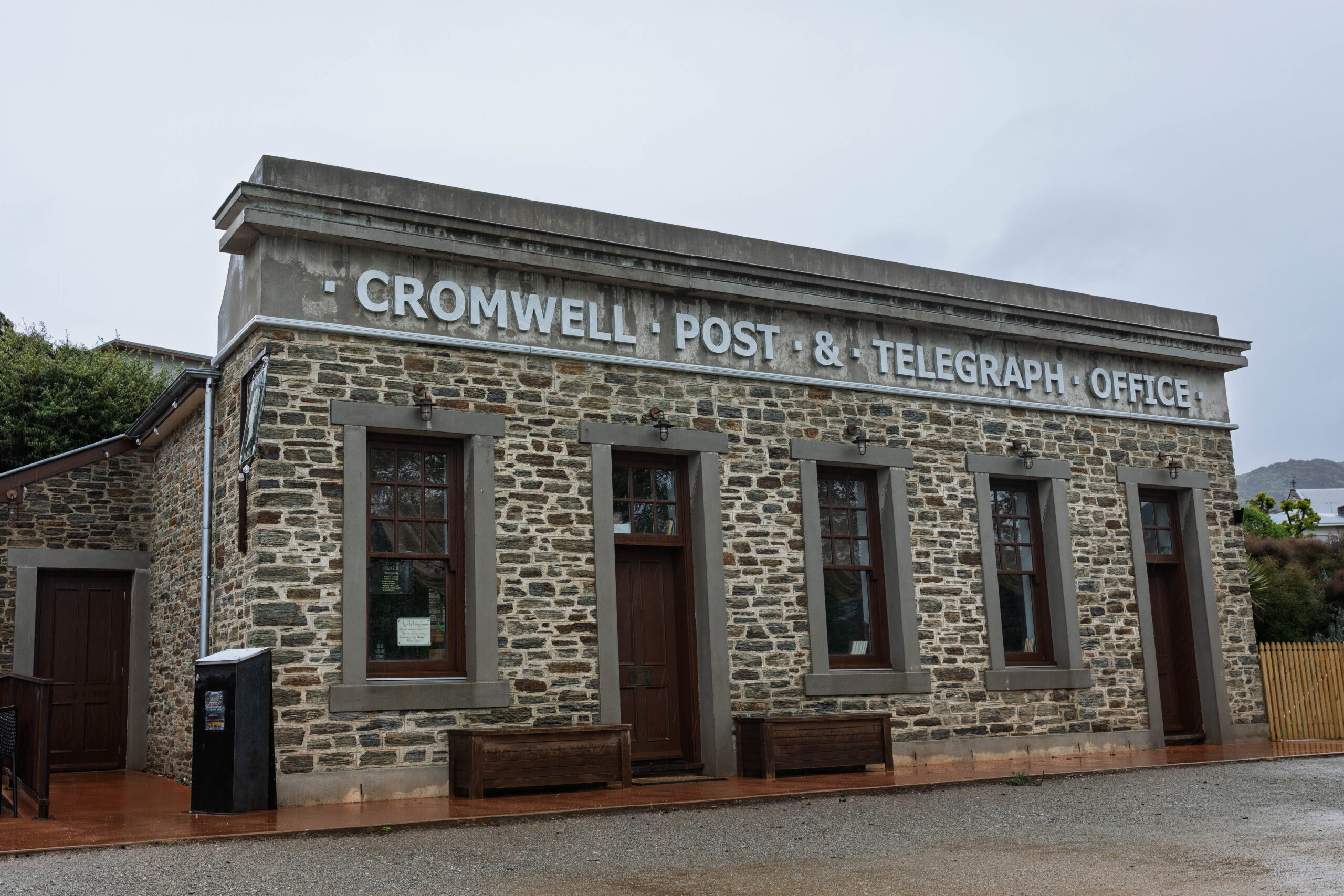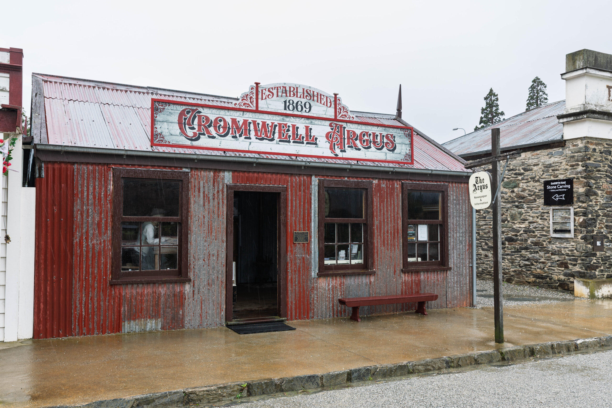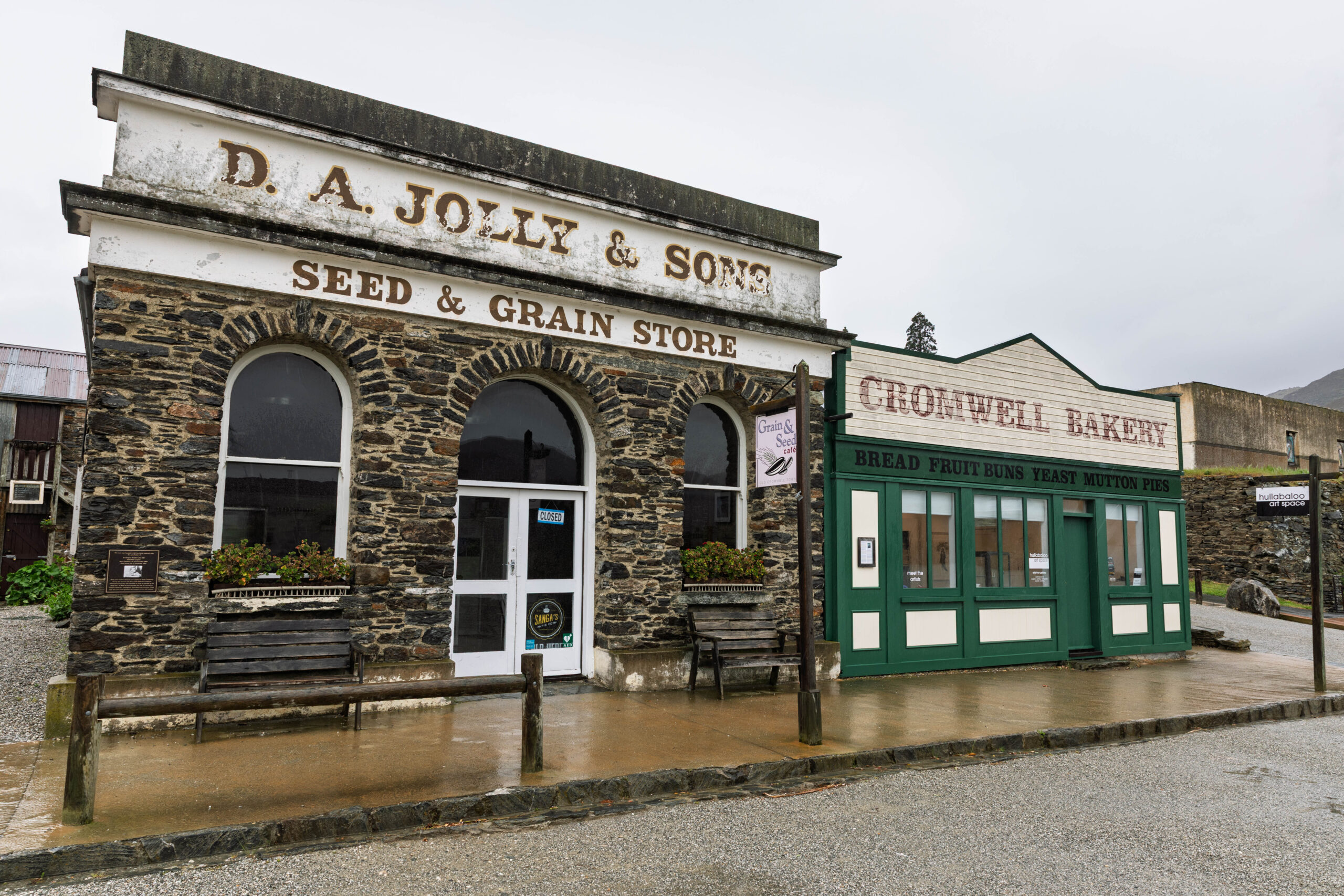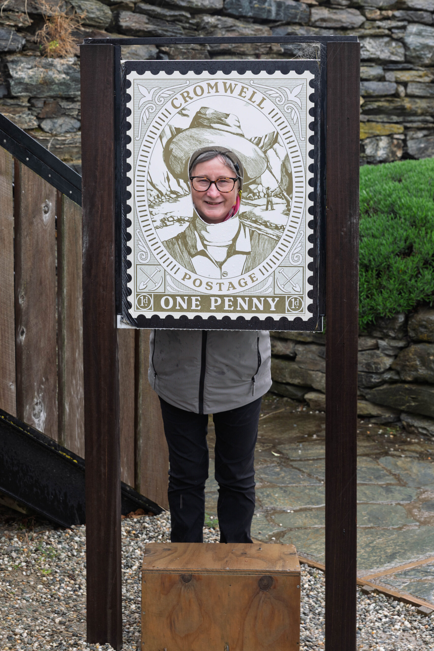 We made it to Cromwell without encountering any road closures due to flooding. Phew! We drove straight through the new part of town to the Cromwell Heritage Precinct. With the time spent driving half way up the Crown Range and then back down again, lunchtime had rolled around. We popped into the Pinot Junction – Lakeside Café, where we enjoyed a delicious lunch in a very popular little café. Or was that just people eating instead of sightseeing on this wet and gloomy day? We shared a BLAT sandwich, because the cinnamon scrolls looked delicious and we couldn’t resist buying one of those too. After our sandwich we enjoyed half a scroll each and … only half as many kilojoules sharing!