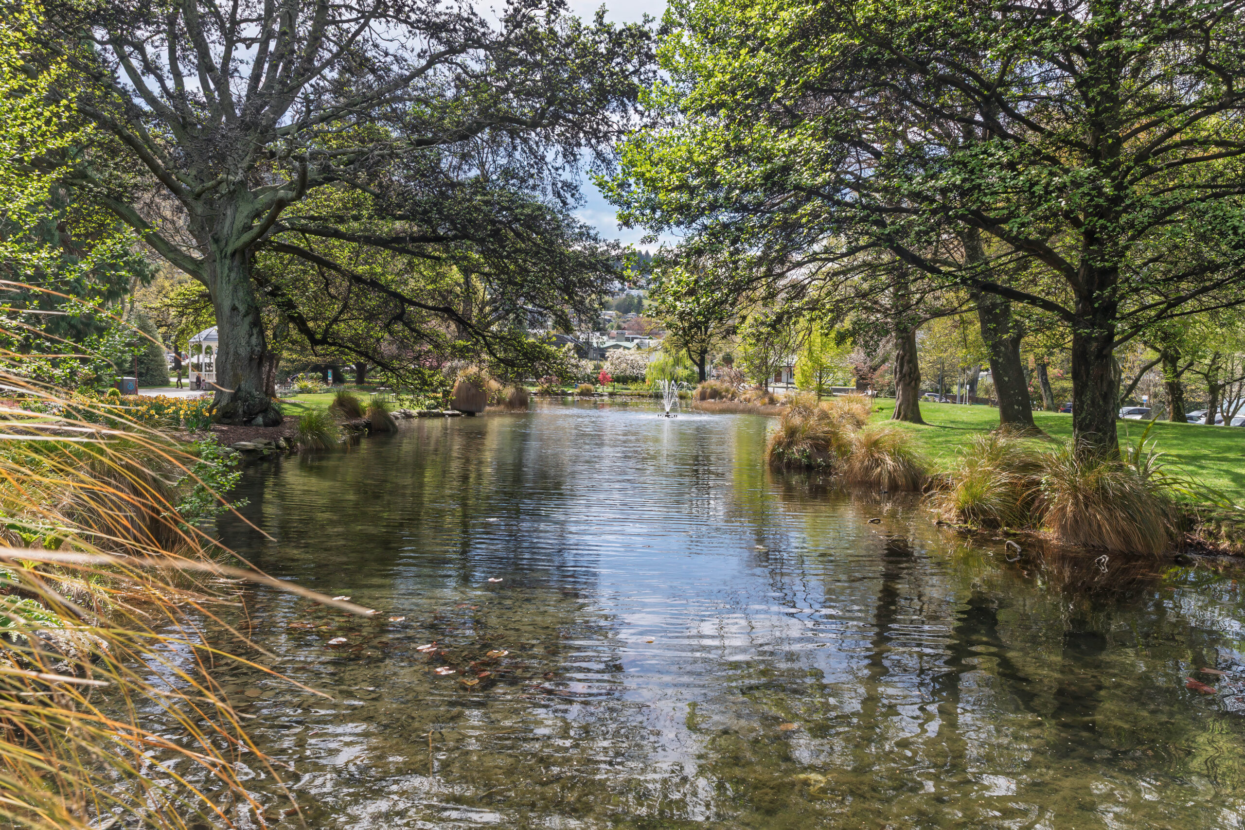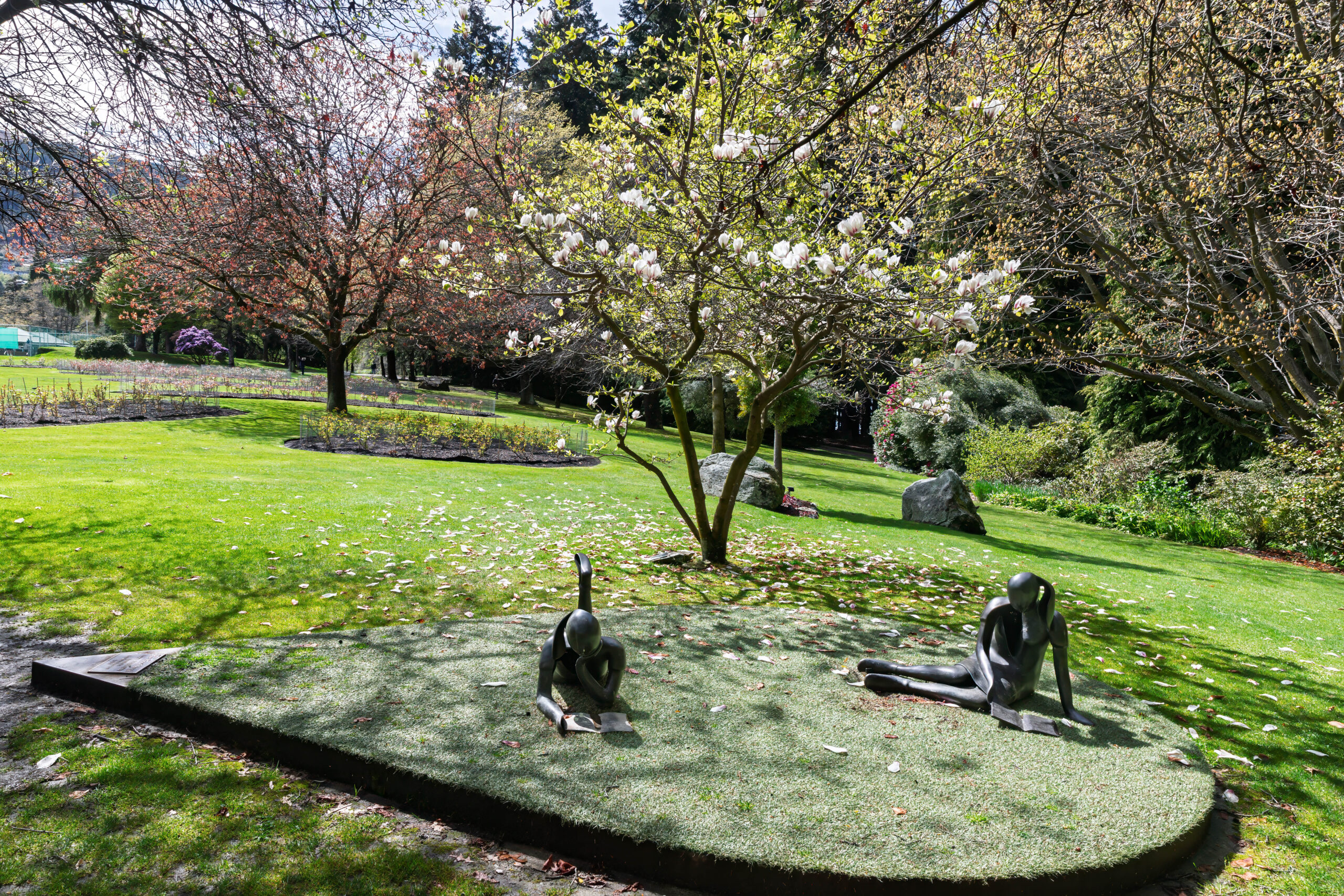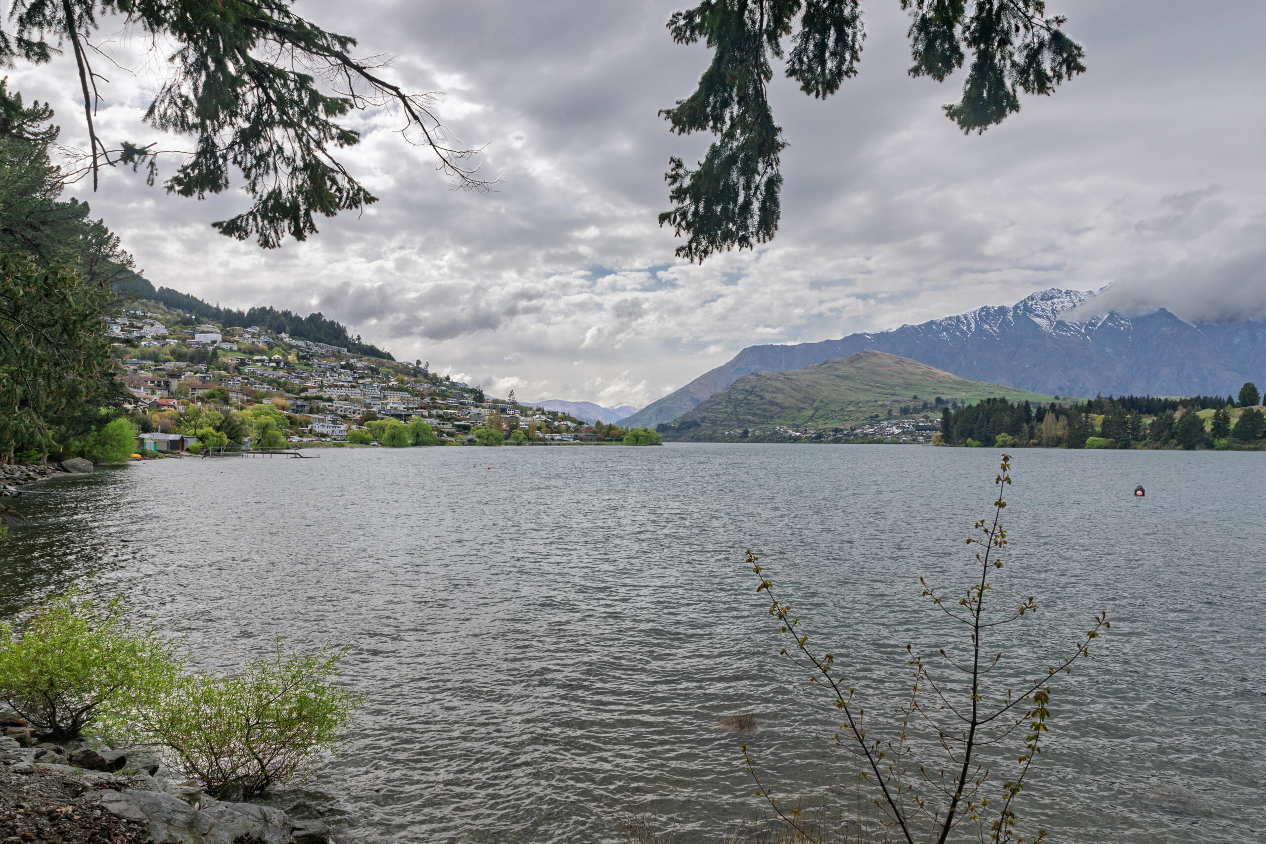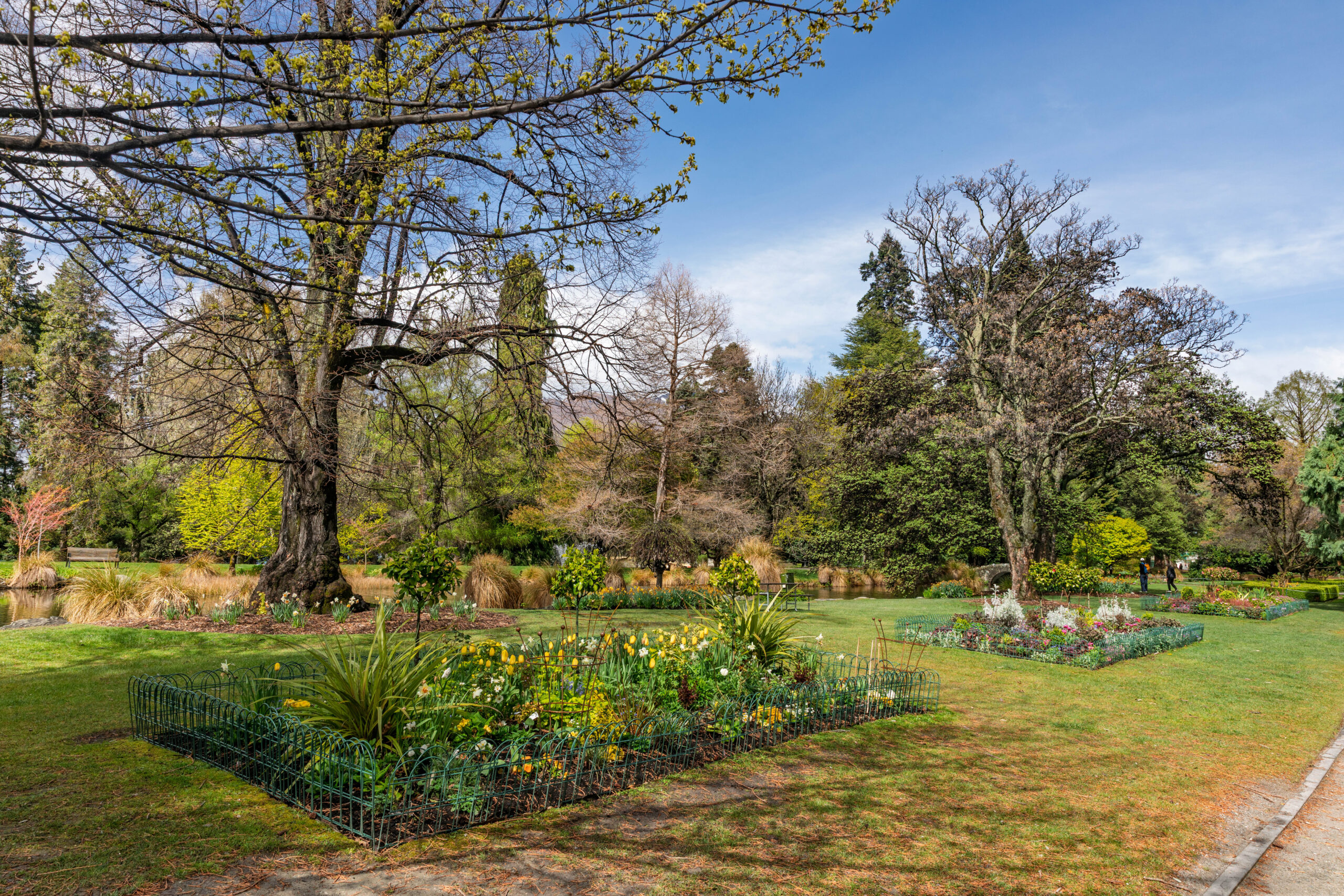 We walked down the very steep hill outside the apartments and turned right at the lake to walk along Park Street to the Queenstown Gardens. We walked around the perimeter first, between the water and the pine and fir trees, before venturing up into the more formal part of the gardens. The shelter that the trees provide creates a microclimate for a beautiful formal garden, filled with blossom trees, beds filled with flowering bulbs, colourful rhododendrons and deciduous trees just bursting out in their spring foliage. In summer, the rose gardens will be gorgeous.