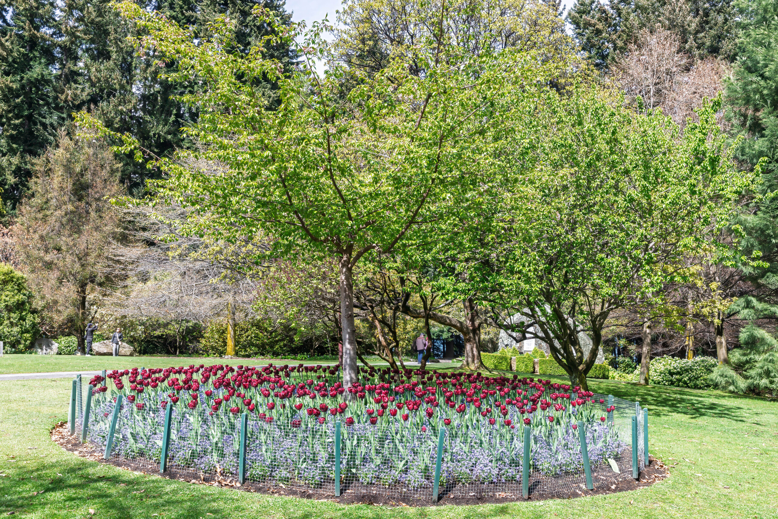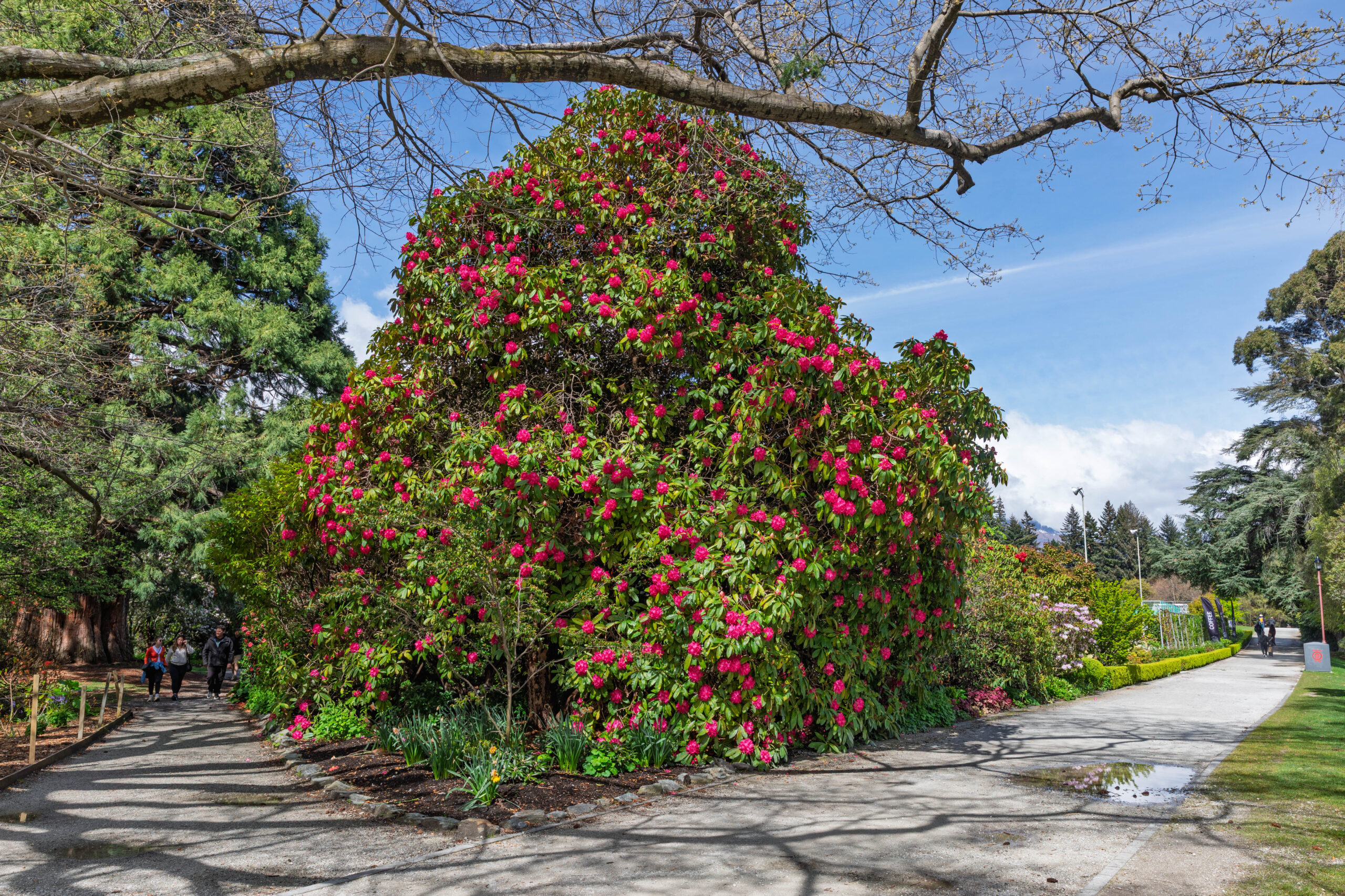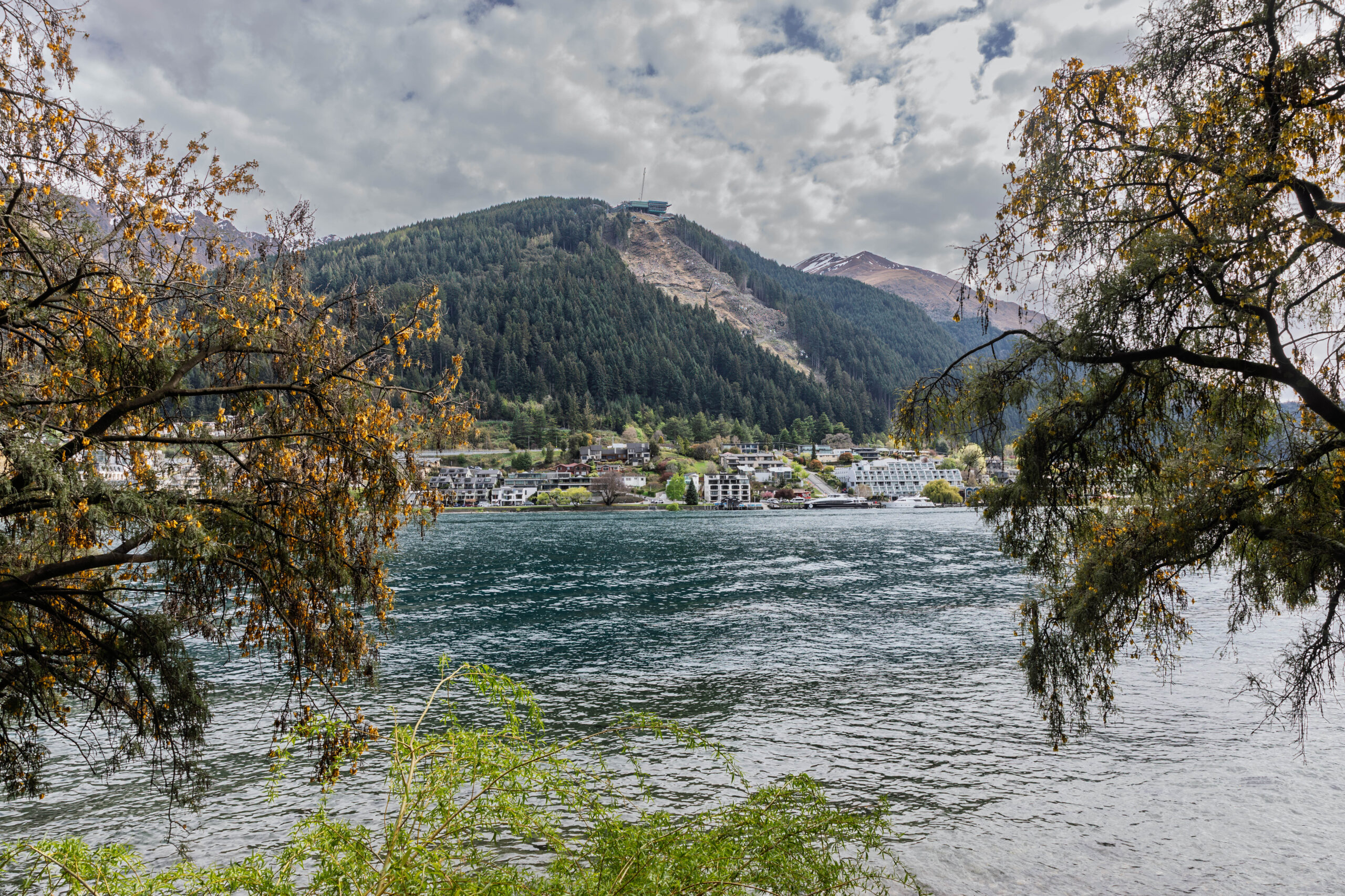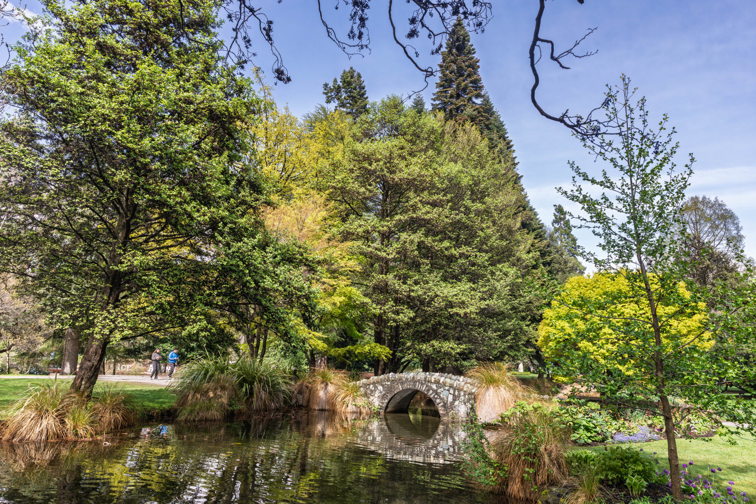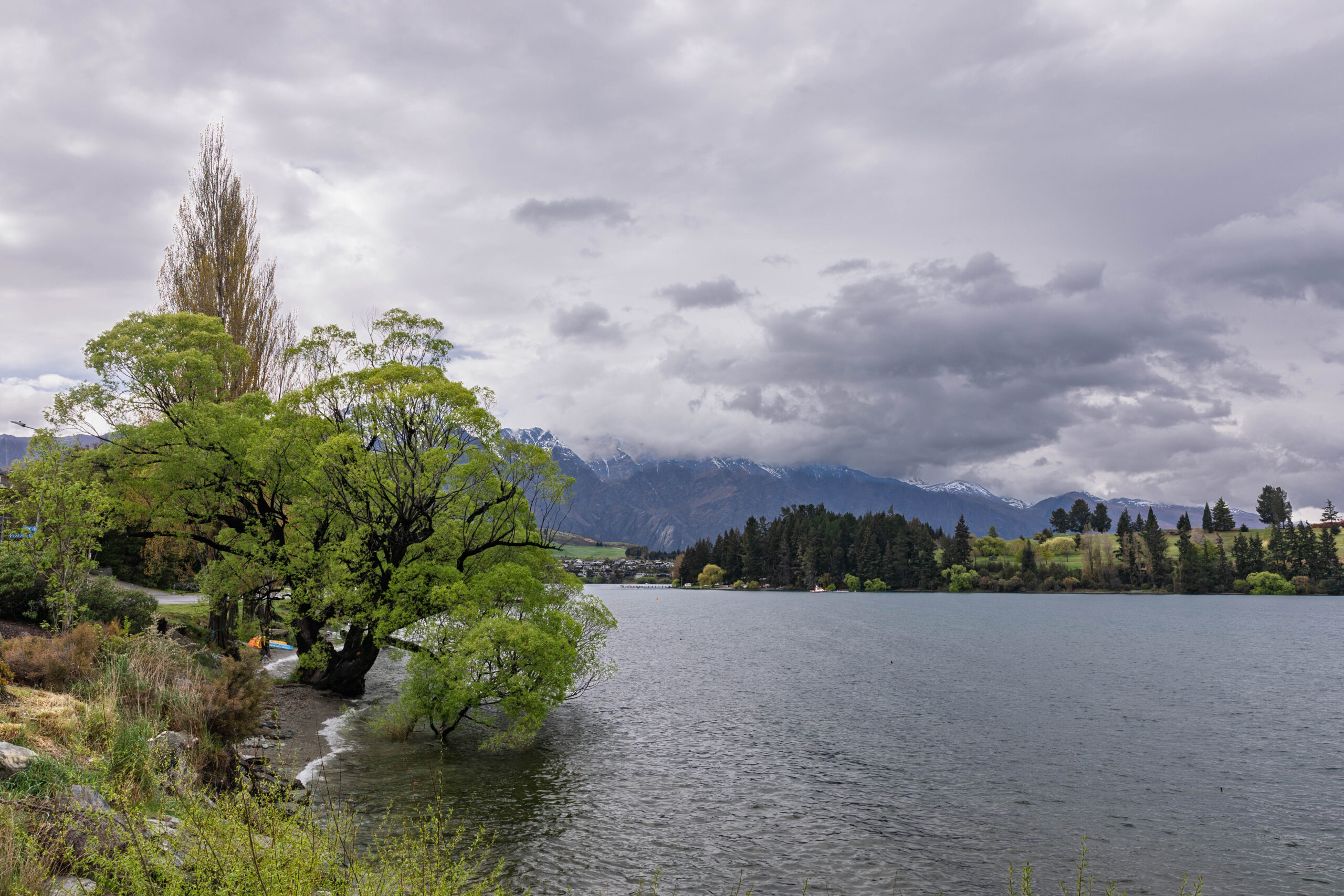 We walked down the very steep hill outside the apartments and turned right at the lake to walk along Park Street to the Queenstown Gardens. We walked around the perimeter first, between the water and the pine and fir trees, before venturing up into the more formal part of the gardens. The shelter that the trees provide creates a microclimate for a beautiful formal garden, filled with blossom trees, beds filled with flowering bulbs, colourful rhododendrons and deciduous trees just bursting out in their spring foliage. In summer, the rose gardens will be gorgeous.