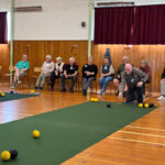Today they were able to field eight teams of four playing on four pitches/mats/carpets? I should ask Robin or Sandra what the correct terminology is. I did learn that the target is called a ‘kitty’ in carpet bowls, rather than a ‘jack’ as in lawn bowls. The more experienced players made the Aussie novices very welcome, and were generous with their tips. Bernie and I managed to play three matches without completely embarrassing ourselves. Our biggest problem was a lack of consistency, but at least we didn’t bowl too many straight off the end or the side.