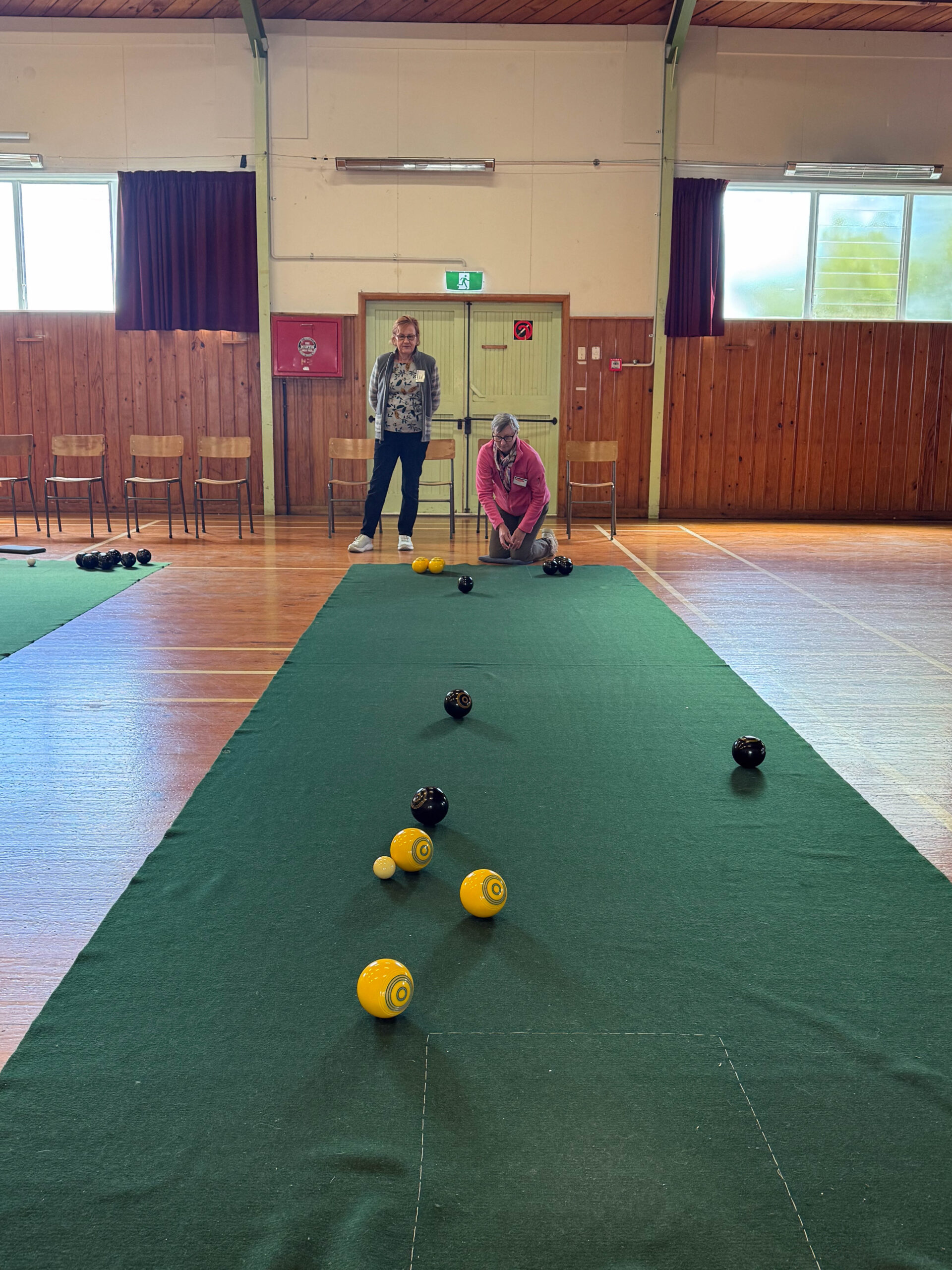 Although we slept in this morning, we have managed to be more active than yesterday. It was a low bar that was set yesterday though. Not much was achieved this morning, but after lunch we headed out with Robin and Sandra to their weekly carpet bowls game. They have an enthusiastic membership of OAPs who certainly enjoy their bowls.