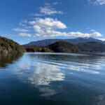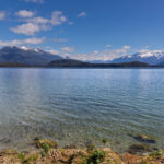 We arrived in Manapouri and snapped some shots looking across the lake to the mountains. After a drive along the lakeshore on Fraser’s Beach Road, we circled back around to try to find somewhere to eat. The only place that was open was The Church Bar and Restaurant. We headed in and ordered toasted sandwiches for a light lunch. We headed up to the upstairs terrace and sat in glorious sunshine with a magnificent view to wait for our sandwiches. And wait … AND WAIT. It took 50 minutes for our simple lunches to arrive!! Luckily we had an hour to spare sitting around waiting for food to be prepared. Thank goodness the weather was beautiful and the view so awesome.