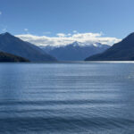 Now driving northwards on the Clifen-Blackmount Road we were treated to impressive mountain scenery all around us, some still topped with snow. Arriving at the Hillside-Manapouri Road, Suri told us to turn right. Looking at the atlas, it seemed it would be more scenic to go left to Manapouri and then alongside Lake Manapouri as we headed north.