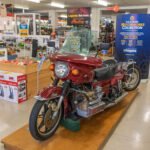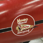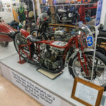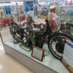 At the back of the store we found THE bike on which Burt Munro claimed the Class S-A 1000cc World Record on 26th of August 1967 with an average speed of 184.087 mph. The average speed was calculated from a north run and a south run on the Bonneville Salt Flats in Utah, USA. The record still stands today because the class has since been retired. Burt’s story was told in the 2005 movie ‘The World’s Fastest Indian’ starring Anthony Hopkins as Bert Munro.
