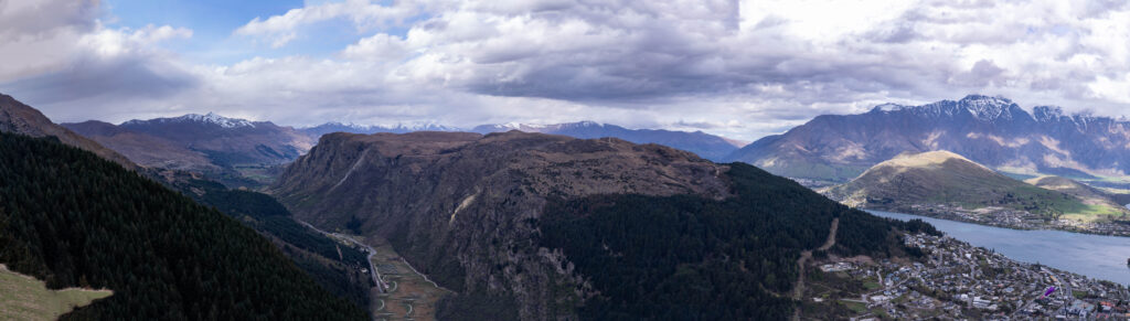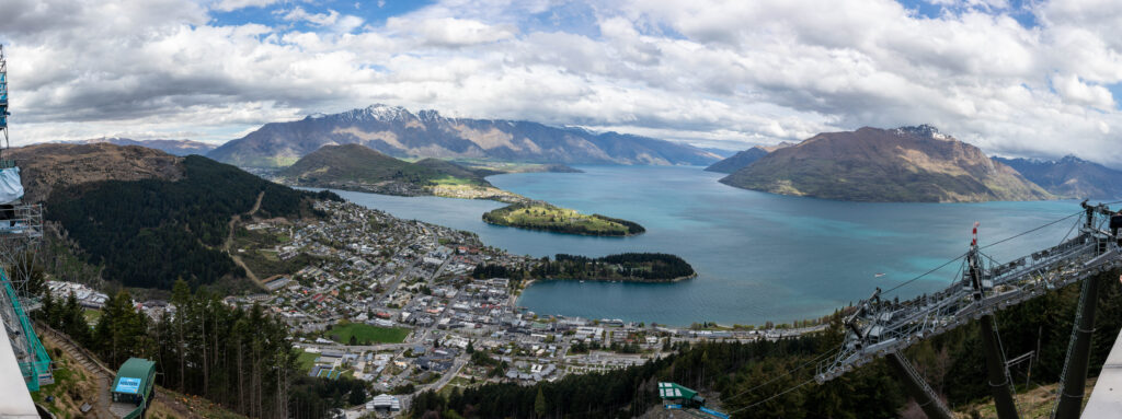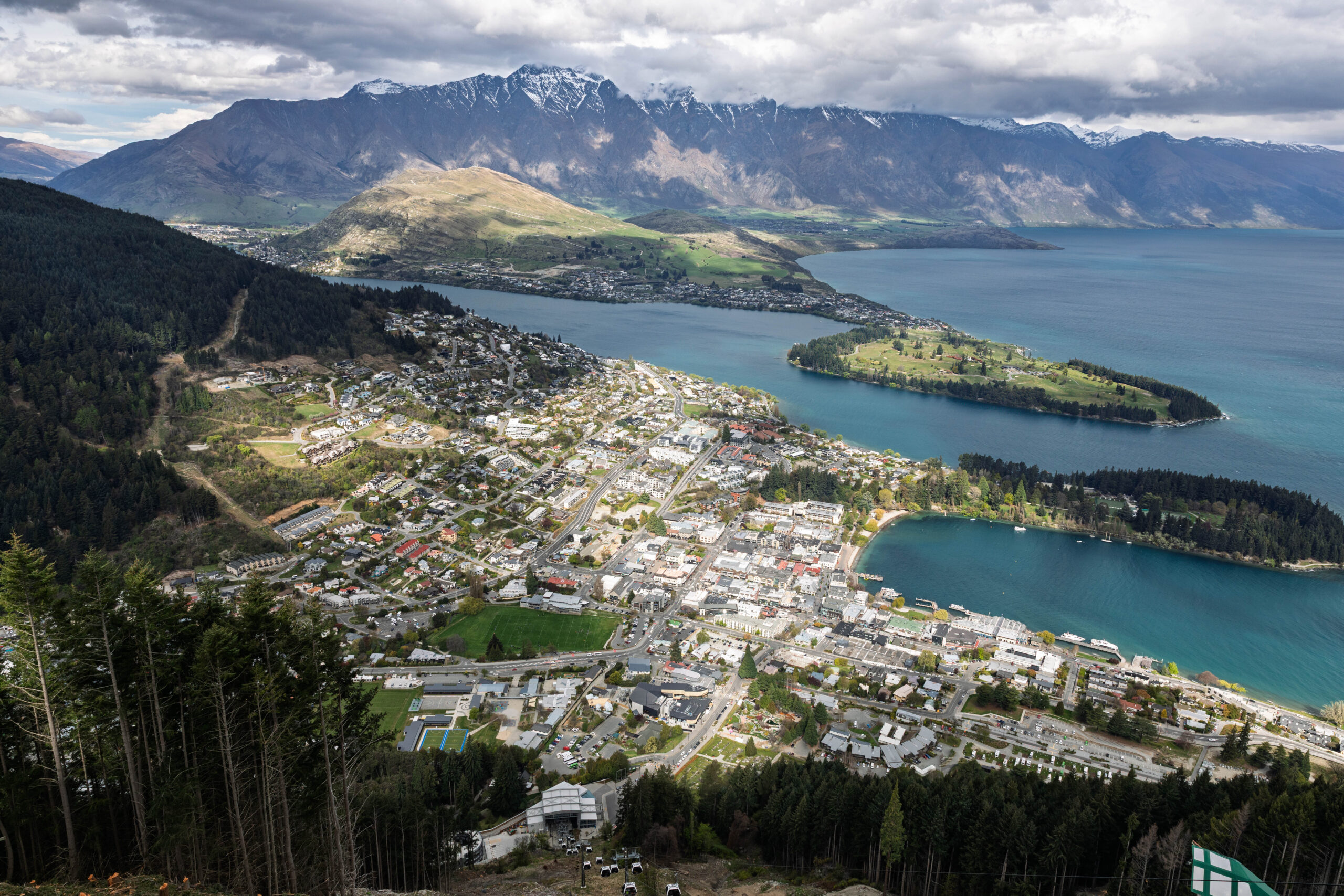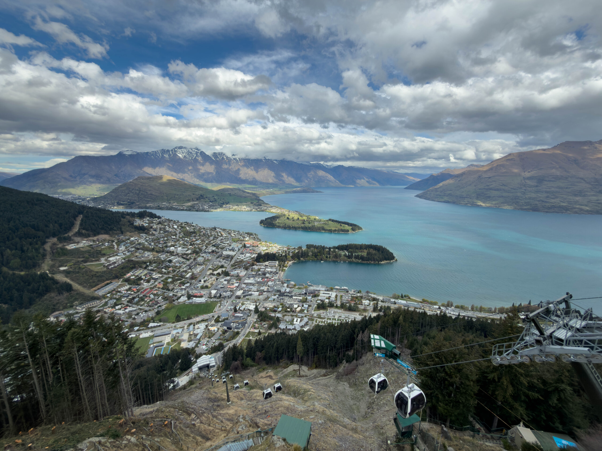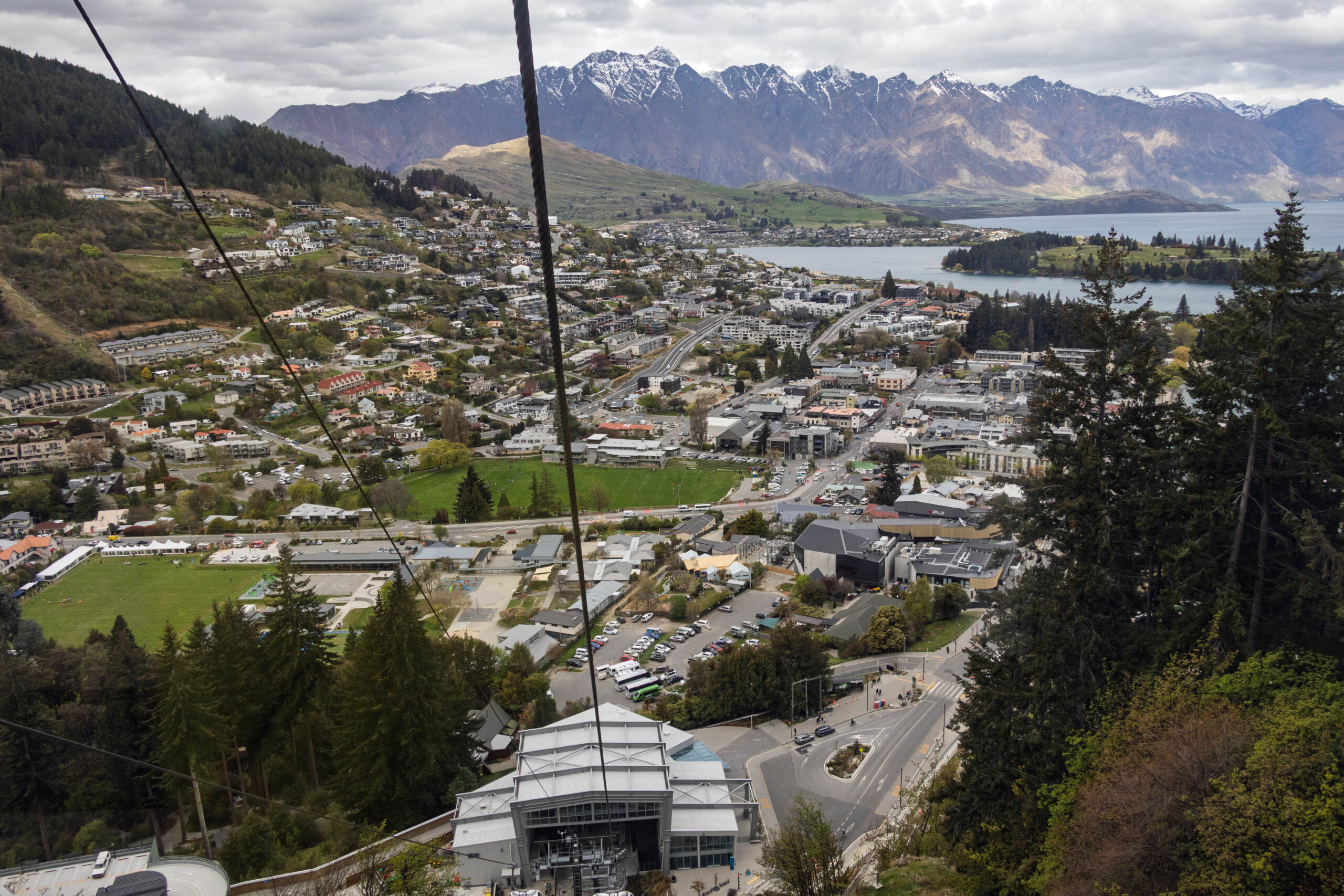 We checked in at the Garden Court Apartments, scoring an upgrade to an apartment with a separate bedroom. We were expecting more of studio apartment, so that’s very nice to have a separate kitchen/lounge/dining area, a bedroom and a bathroom. We also have a washing machine and dryer, so we’ll be able to freshen up some clothes. And, we even have a slice of view in one direction to The Remarkables (mountains) and a sliver in the other direction down to the lake.