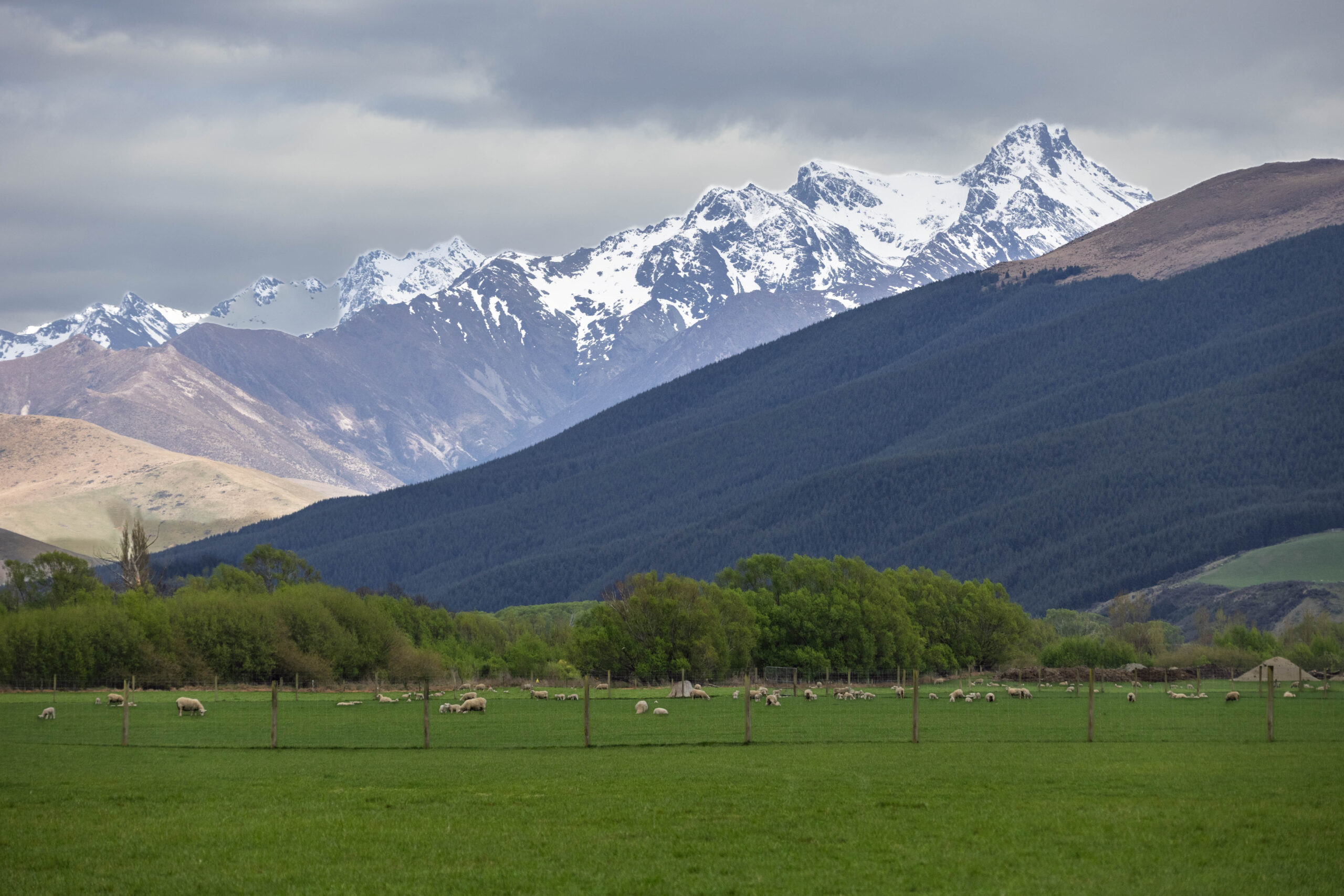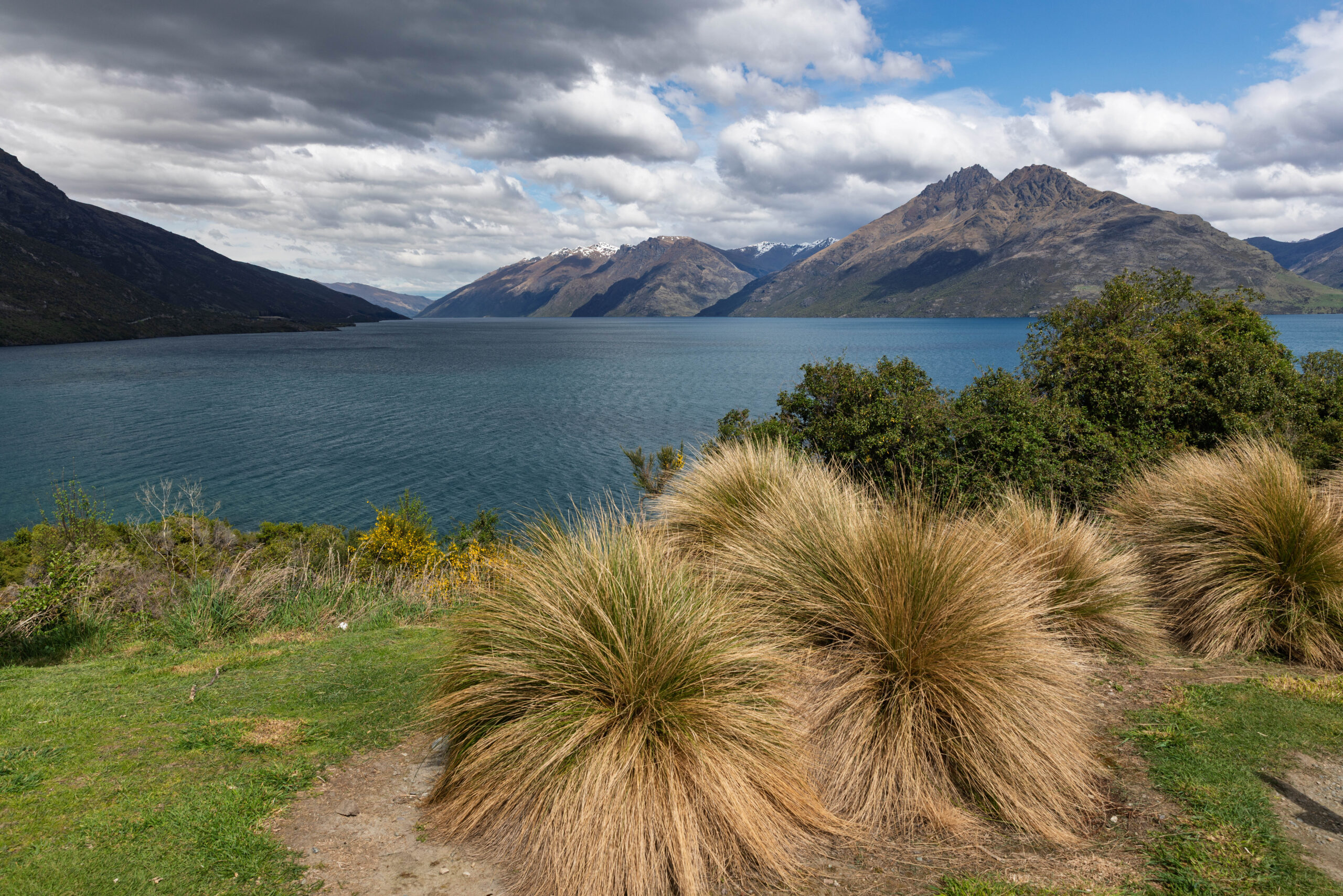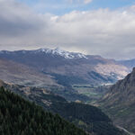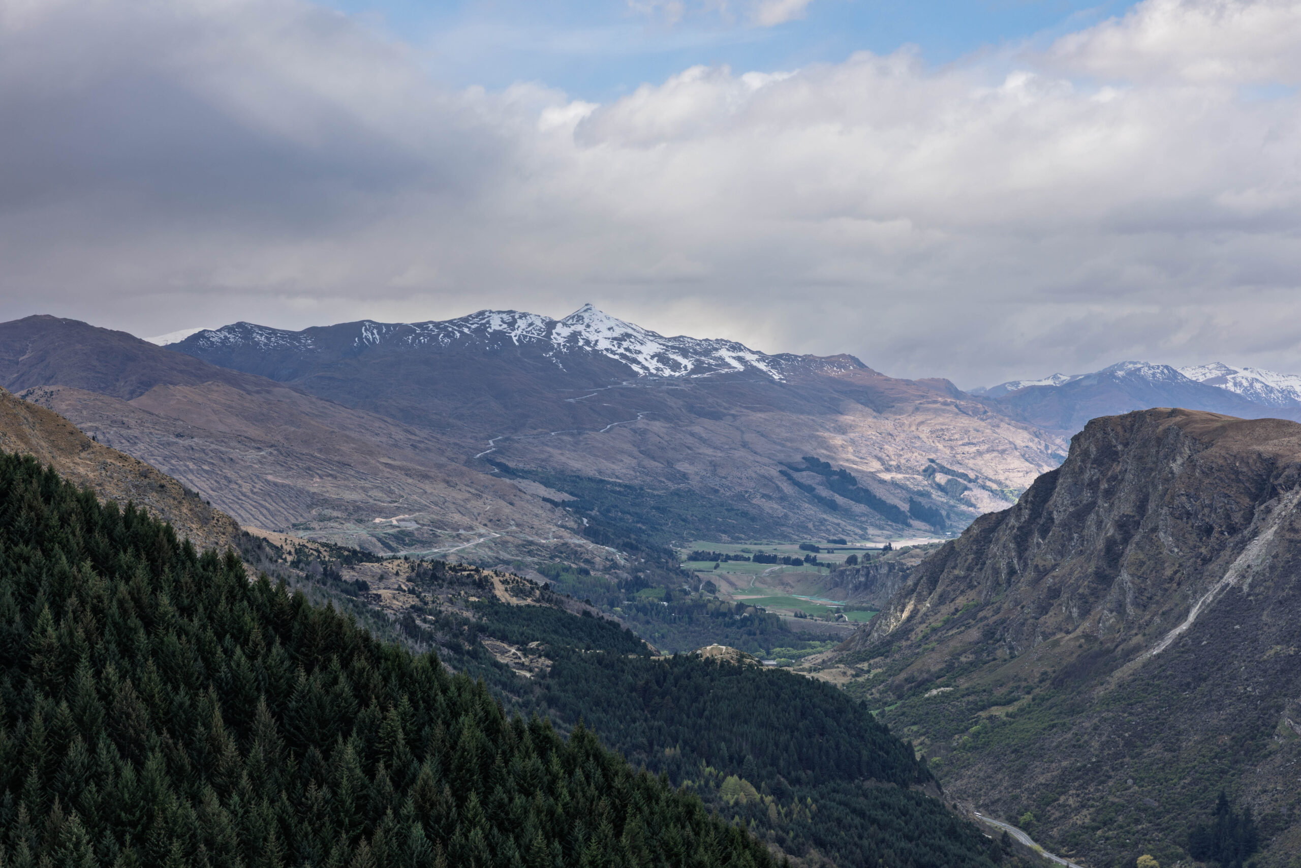 Next we set the SatNav for Queenstown and headed out of town on State Highway 94, soon reaching The Key where we encountered several kilometres of roadwork. After clearing the roadworks, we stopped at our first scenic viewpoint, near the Spear Peak Red Tussock Conservation Area. We actually didn’t see the sign until after photographing the mountains to the north so, hopefully, there are some red tussocks in the foreground, ha, ha?