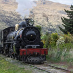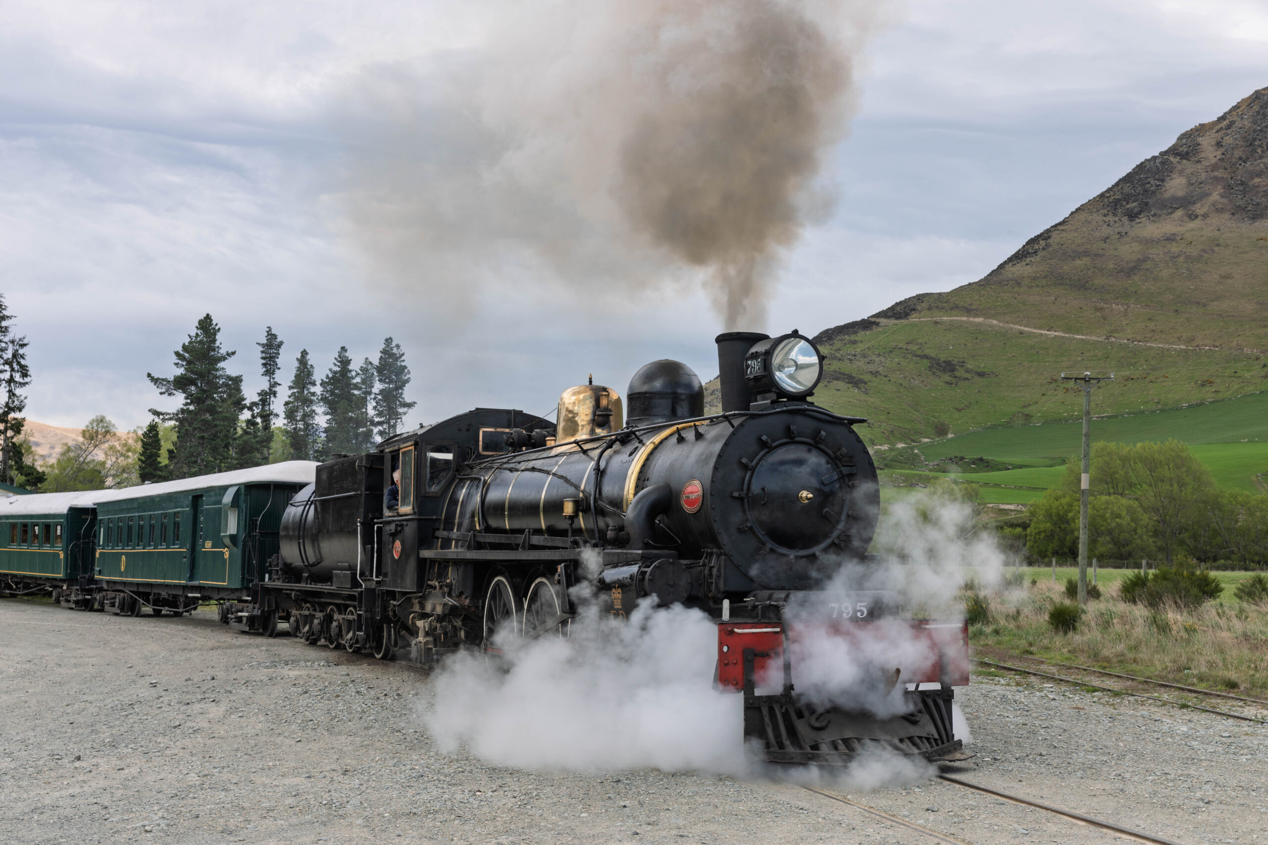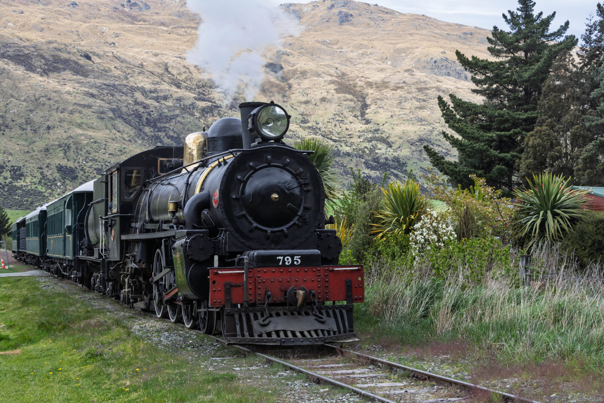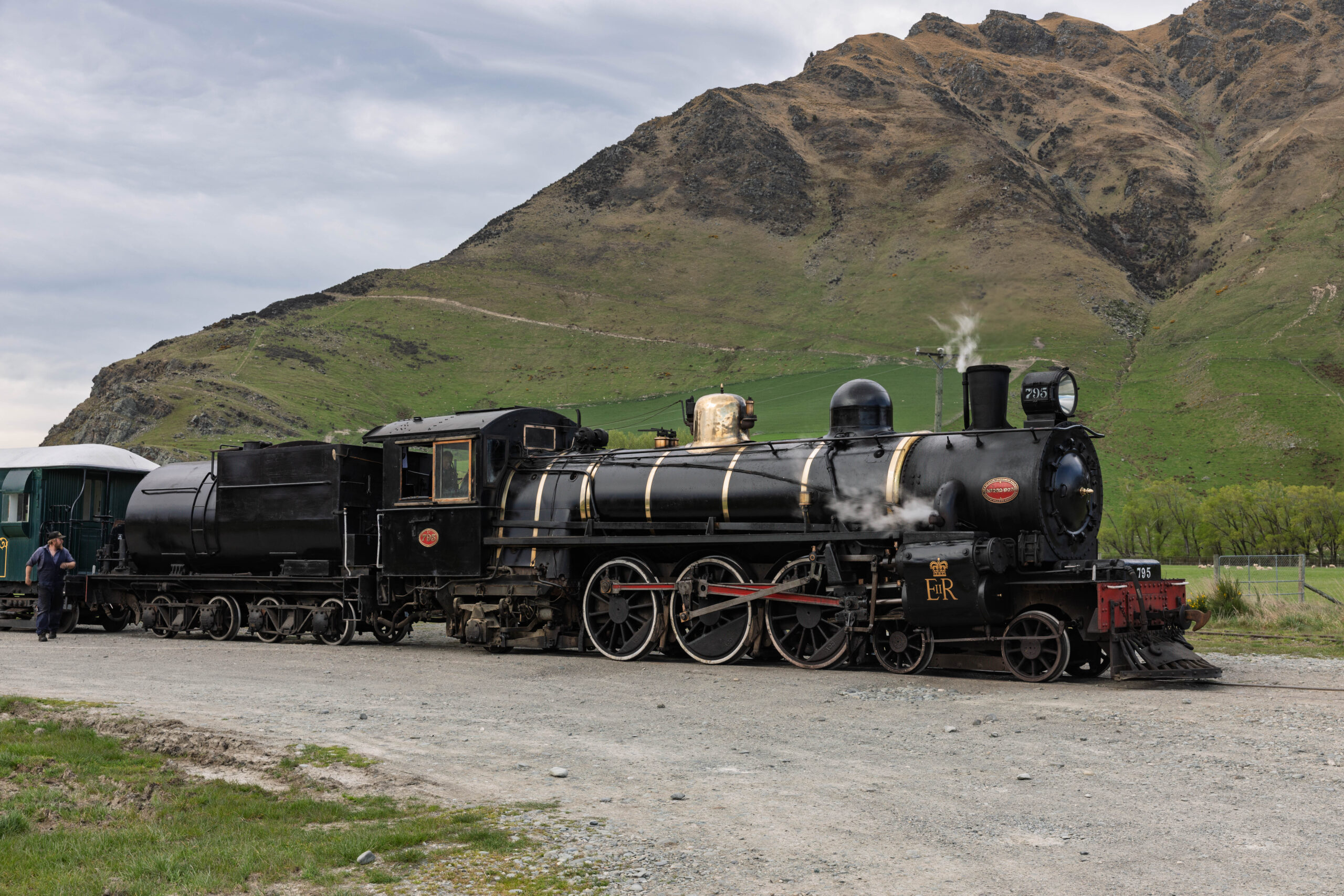 Arriving in Garston we could see a crop being grown on trellises. Kiwi fruit or hops we wondered. When we passed the sign saying ‘Good beer grown here’ we knew it was hops! At least it made a change from sheep and cows. Shortly after this we swept around a bend in the road and … there was a stream train. That was something different. Being suckers for a vintage train we pulled off the road for a sticky beak.