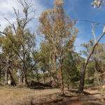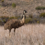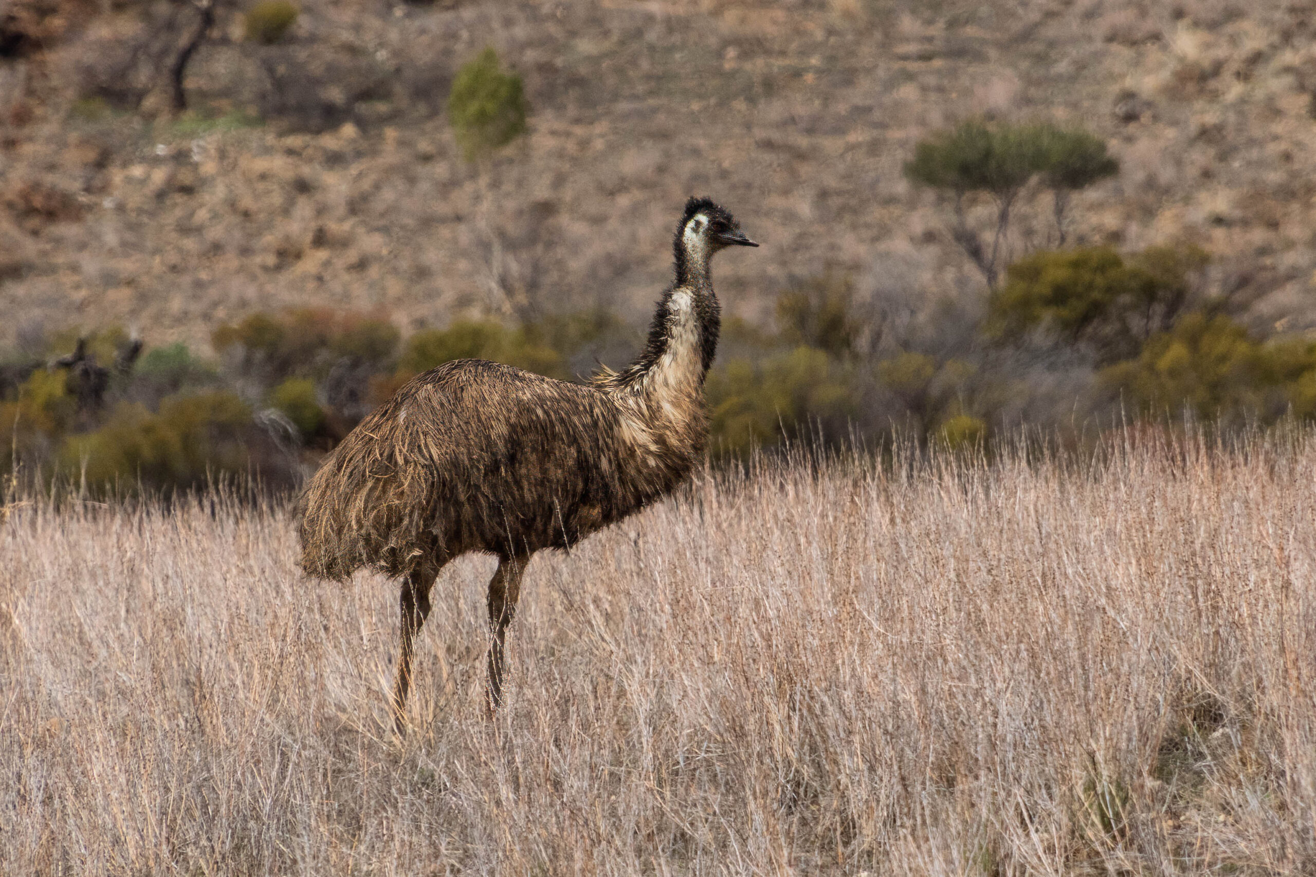 Leaving the hut we encountered a mob of emus. We’re accustomed to seeing emus in pairs or family groups and have never seen such a large group before. Google tells me that emus are not particularly social birds but they do form mobs when feeding or travelling. We watched them feeding on the side of the road for too long because a couple got spooked and cavorted across the road. Oh, no, emus on the road is bad news because there is no way to know what the silly things will do … will they all start stampeding across/along the road?? We waited for a while as more and more decided that they would cross the road, but still there were stragglers on the original side of the road. Eventually Bernie edged the truck forward, very slowly, and we made it past the emus without hitting any.