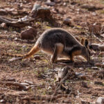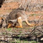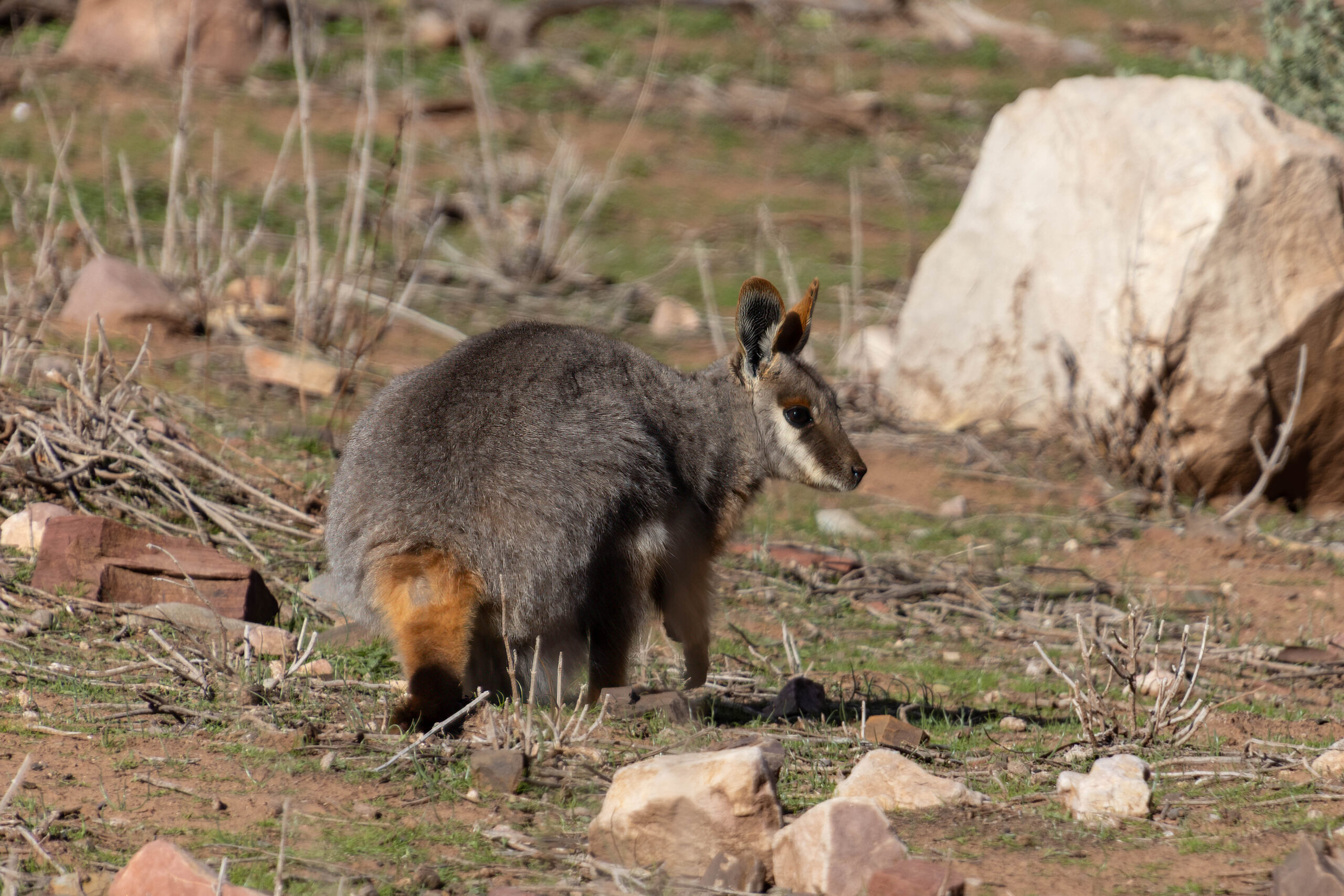 We drove back out to the Brachina Gorge Road and turned right to head towards The Outback Highway. Before reaching the highway we had to negotiate the spectacular Brachina Gorge. We stopped in the gorge at the rock scree that is home to a colony of yellow-footed rock-wallabies. The signs suggested staying quiet and watching carefully to try to see one of these incredibly well-camouflaged marsupials. Soon after we arrived we spotted three hopping across the face of the scree but they soon disappeared into the scrub at the side. They move so quickly on such loose footing!