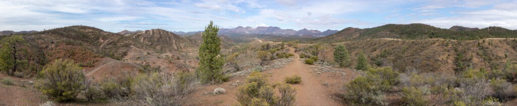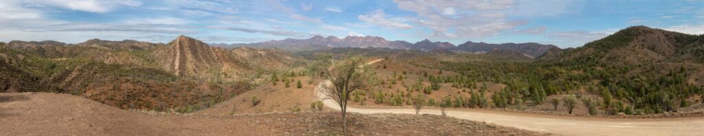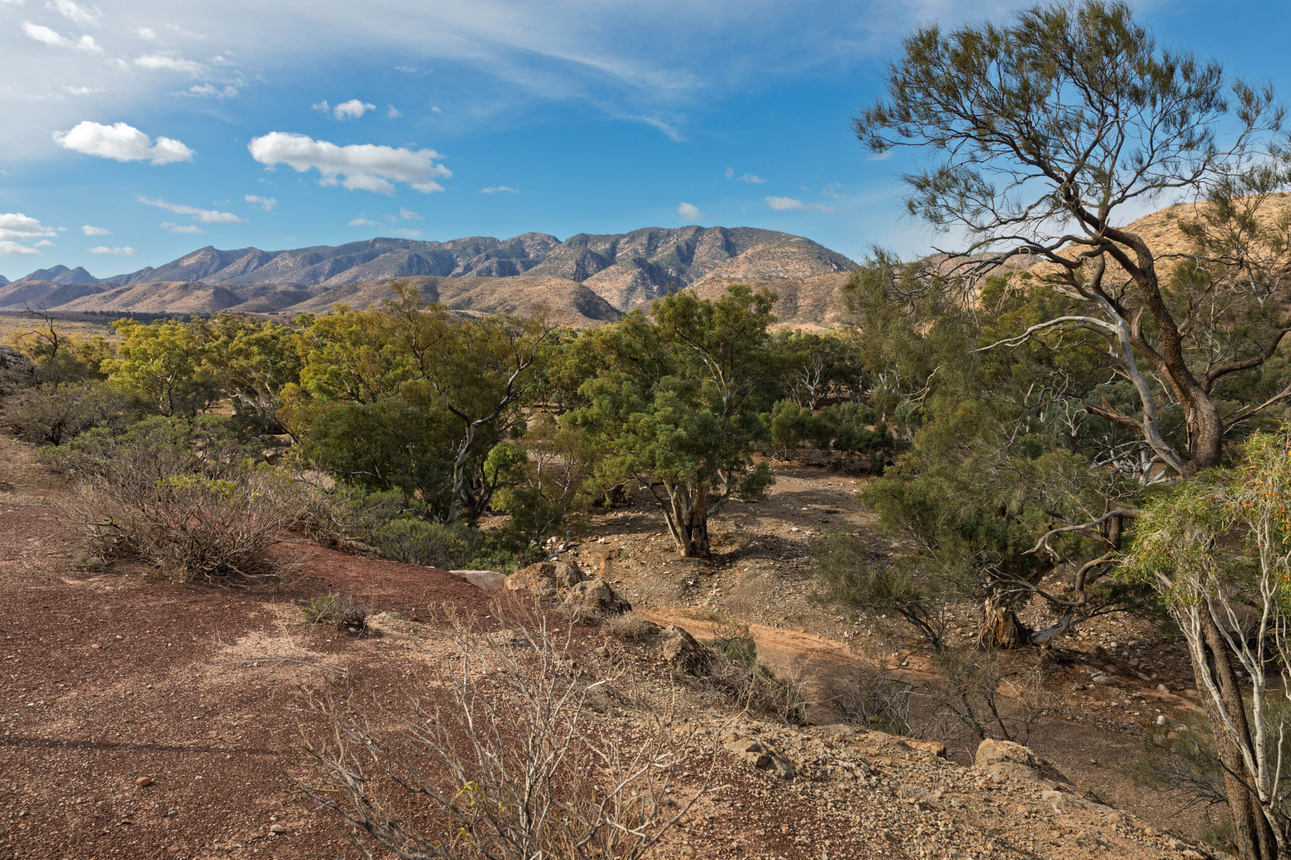 We arrived at Bunyeroo Valley Lookout, where we enjoyed the amazing view and shortly after, Razorback Lookout, with another outstanding vista. At Bunyeroo Gorge we parked in the car park and clambered down to the creek bed for a better look at the gorge. The road meanders through the gorge, alongside and at time across or along the creek amongst the ubiquitous river red gums.