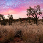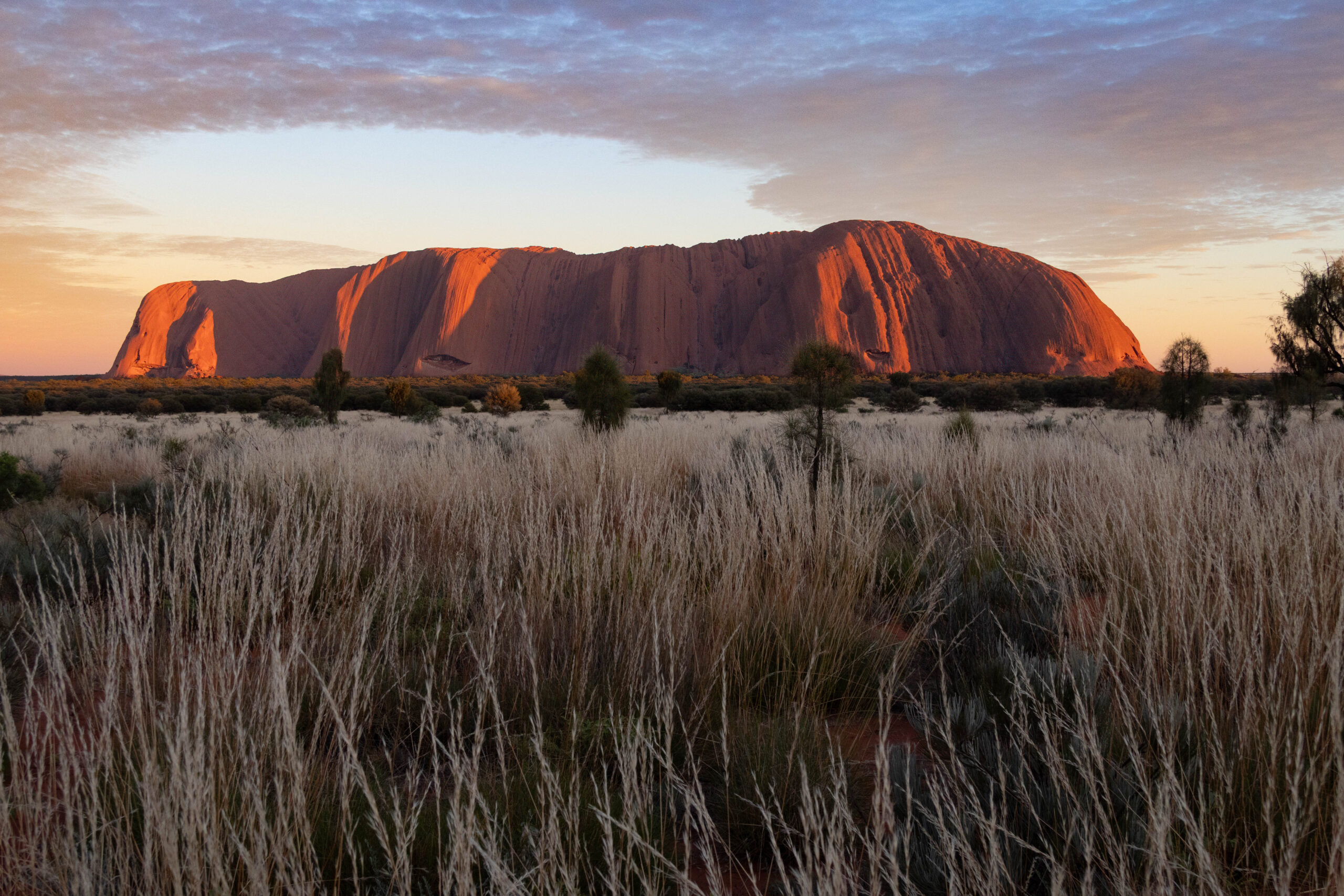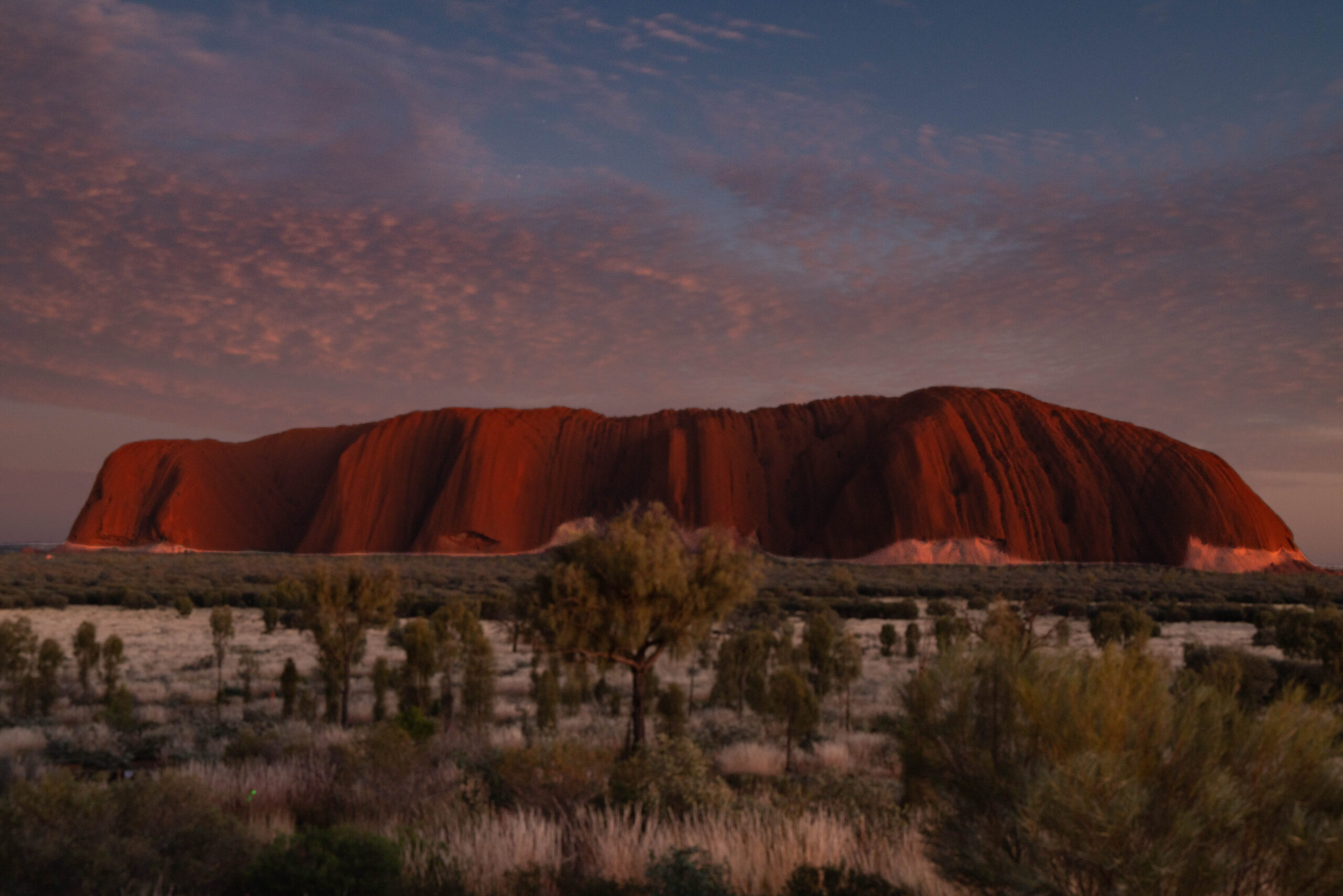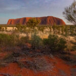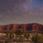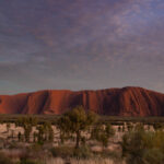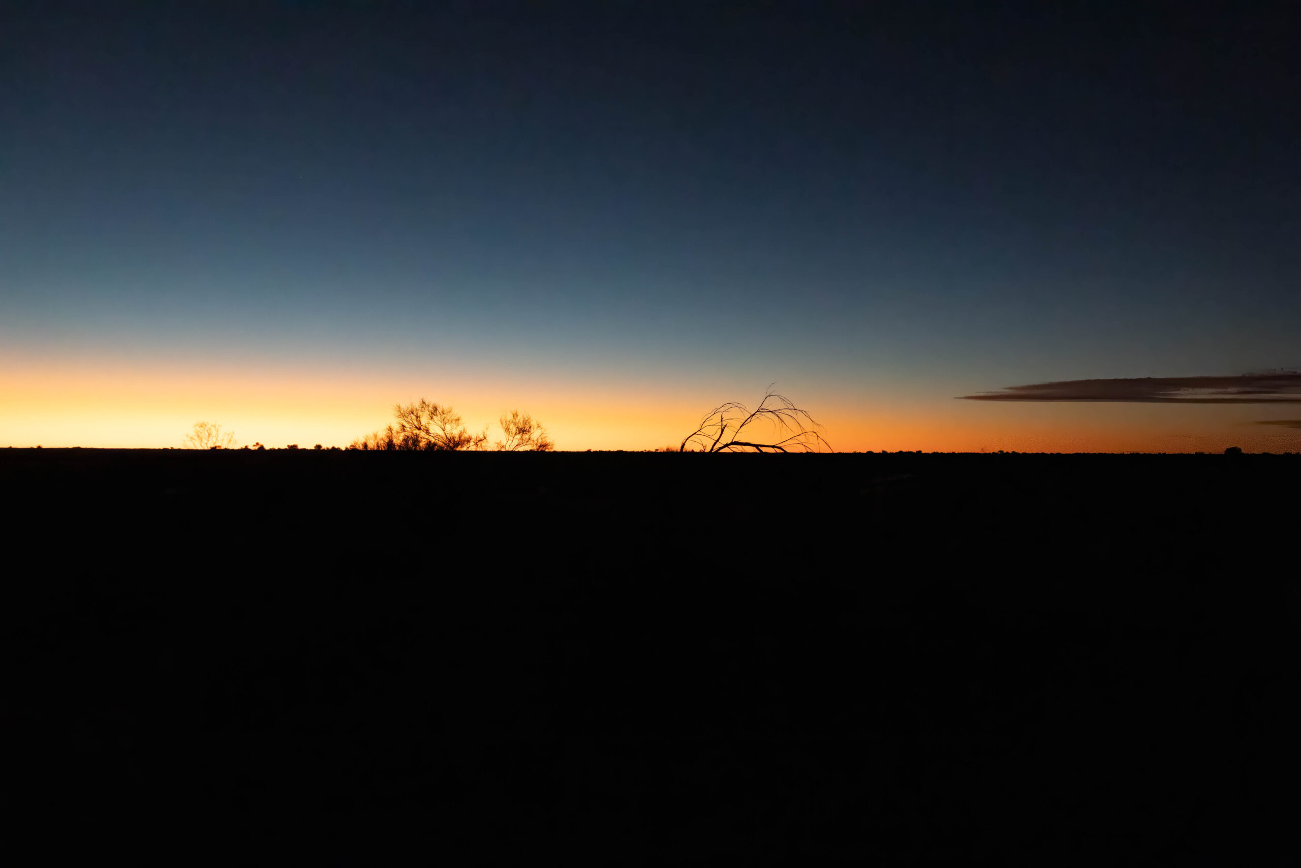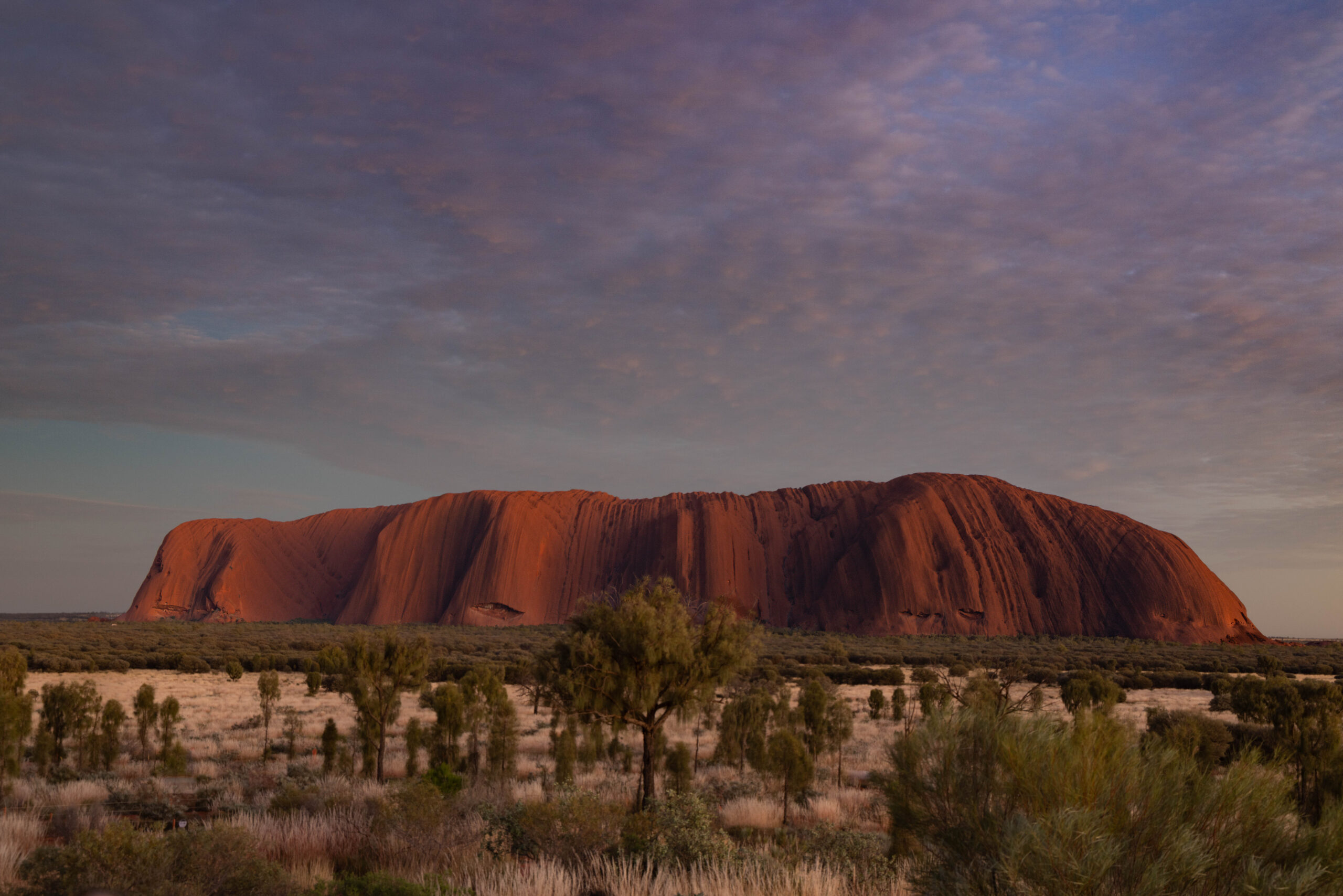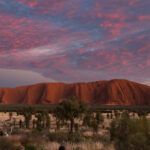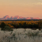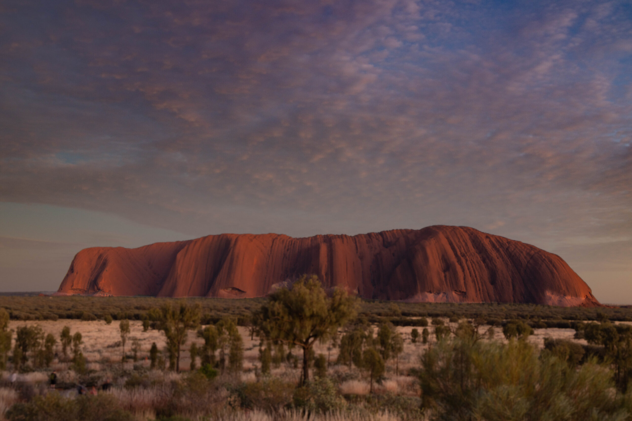 I persevered with the platform for a while but, as it became more and more crowded, I decided to head off to take some photos that would be different from Bernie’s. It seemed a bit daft for both of us to be taking almost the exact same shot and, since I was shooting hand held rather than with a tripod, I had plenty of freedom to wander around. Bernie’s processing photos at the moment, hopefully I managed some interesting shots of Uluru and Kata Tjuṯa, random gnarly trees, the interesting clouds in the east and … the sunrise? By the time 7.03am arrived it could safely be said that we have taken photos of The Rock in many different lights. I’m sure it’s going to be difficult to decide which photos are the best ones.