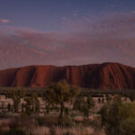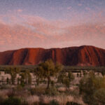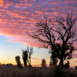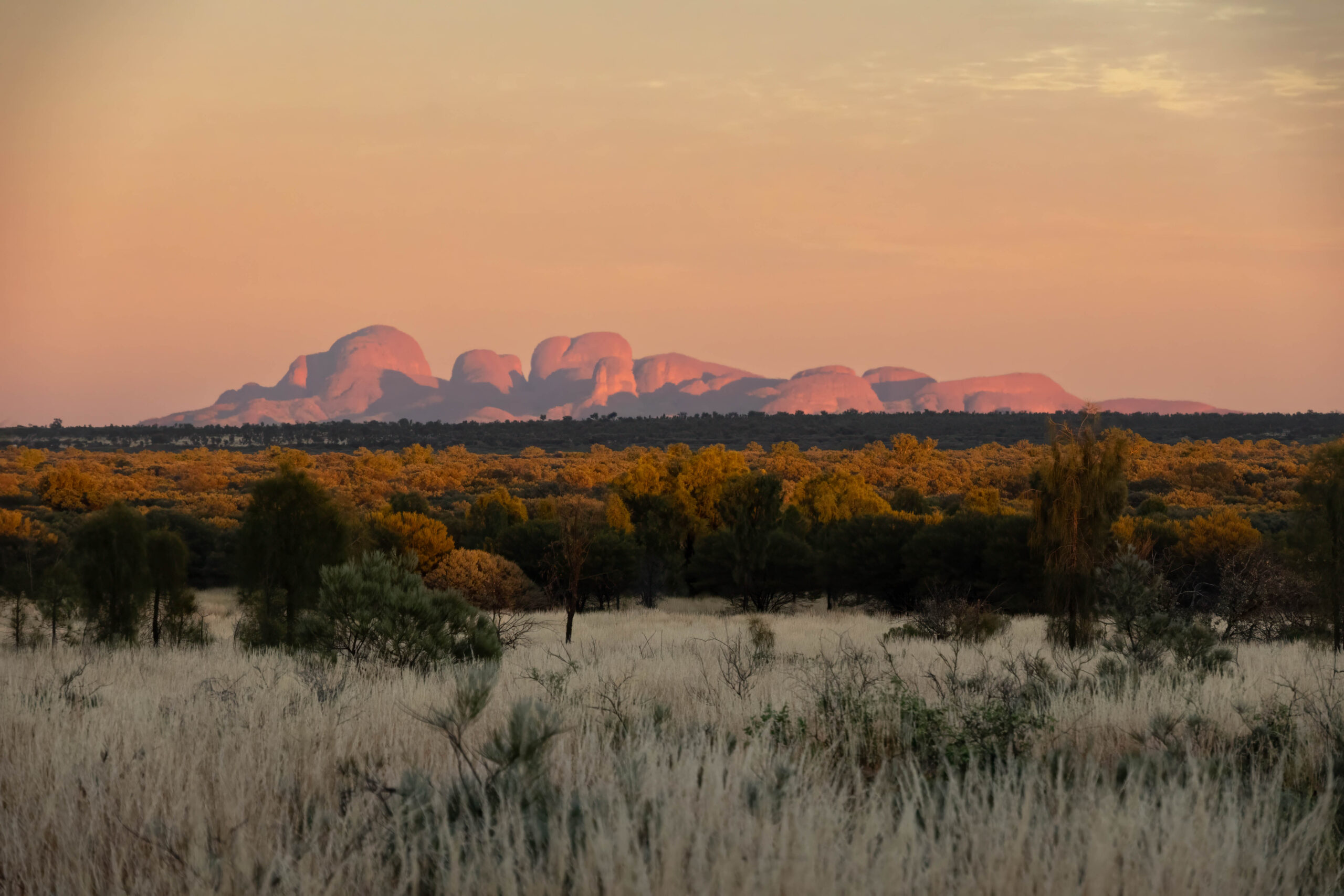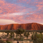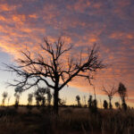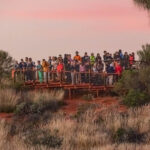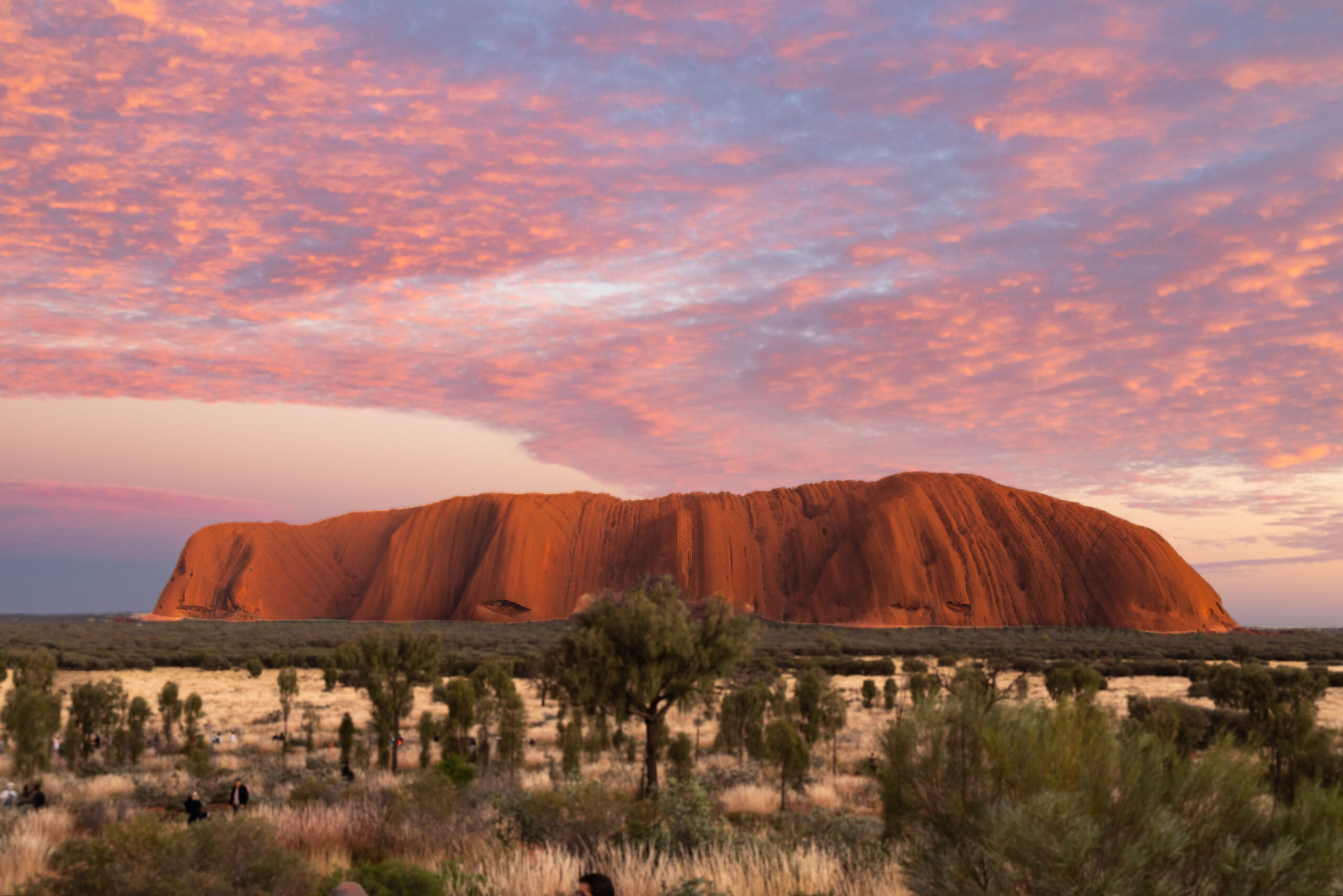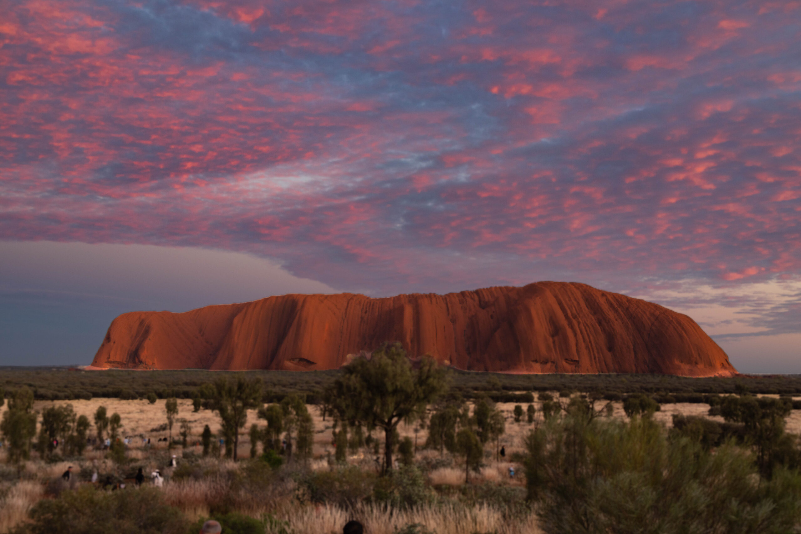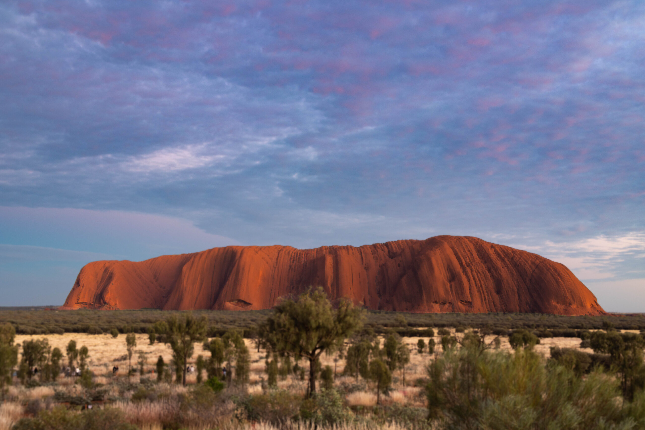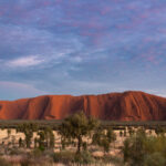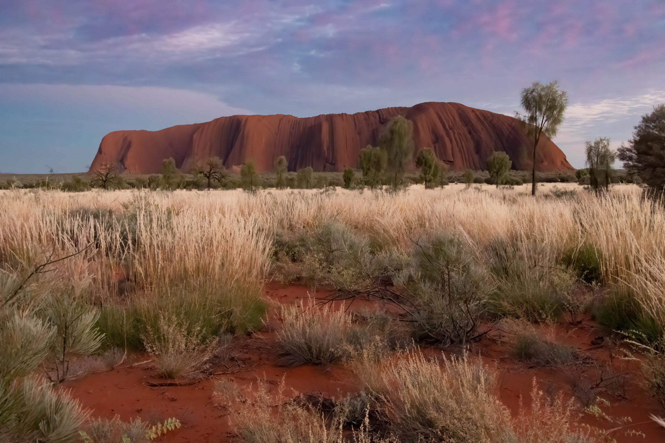 I persevered with the platform for a while but, as it became more and more crowded, I decided to head off to take some photos that would be different from Bernie’s. It seemed a bit daft for both of us to be taking almost the exact same shot and, since I was shooting hand held rather than with a tripod, I had plenty of freedom to wander around. Bernie’s processing photos at the moment, hopefully I managed some interesting shots of Uluru and Kata Tjuṯa, random gnarly trees, the interesting clouds in the east and … the sunrise? By the time 7.03am arrived it could safely be said that we have taken photos of The Rock in many different lights. I’m sure it’s going to be difficult to decide which photos are the best ones.
