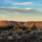 After checking out, we were back on the Lasseter Highway heading east by about 10.00am. For the first 130 kilometres we were retracing our route from Saturday. Because we had been on the road for just over an hour, we stopped again at the Mount Conner Lookout for a leg stretch and another photo of ‘Fooluru’. I read somewhere that the locals call it that because many tourists mistake it for Uluru. They are both inselbergs and both of them, along with Kata Tjuṯa, are part of the same geological formation. However, Mount Conner, or Artilla, has a flat-topped shape and much sharper edges. Artilla sits outside of the national park inside the Curtin Springs Station, owned by the Severin Family since the 1950s.
