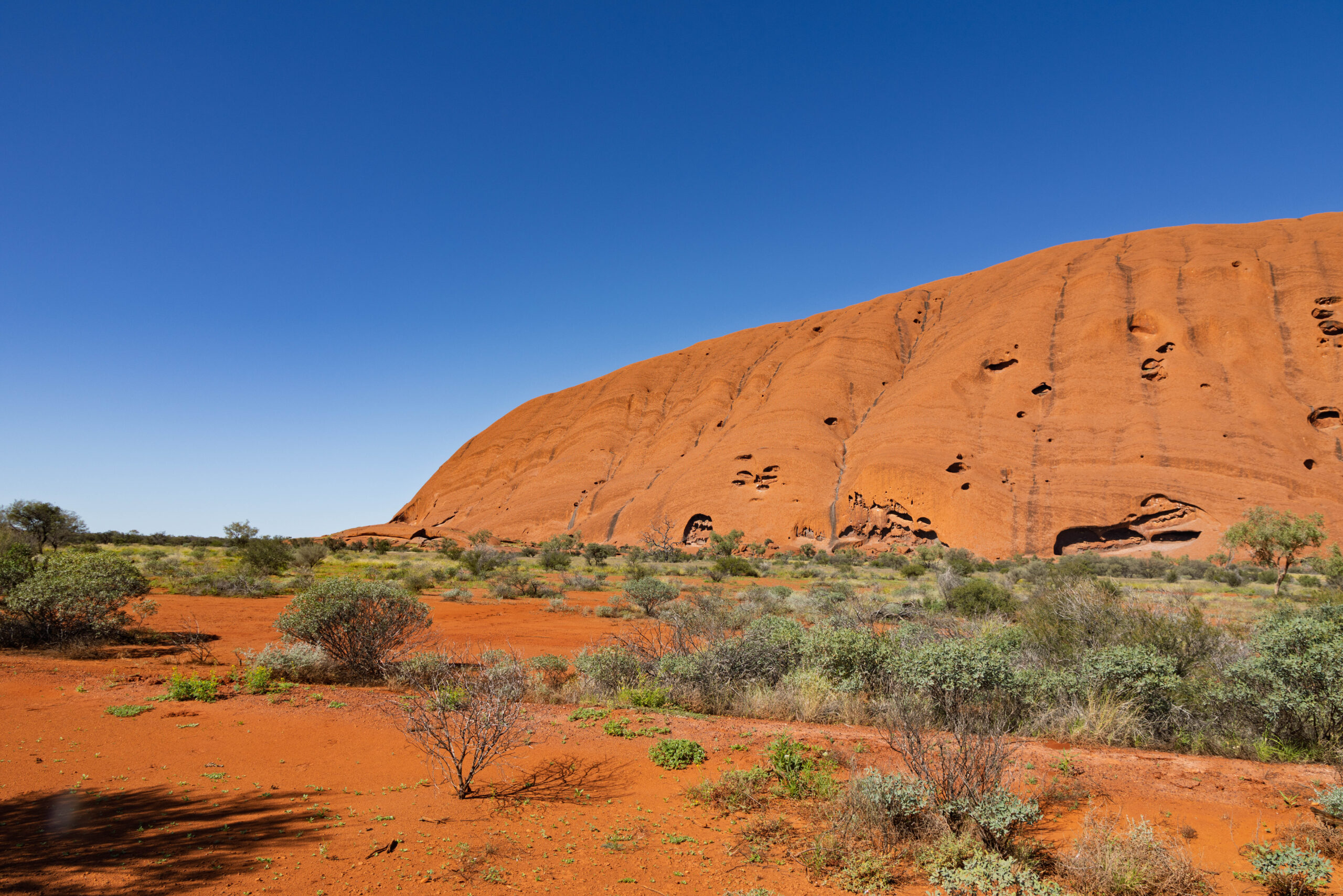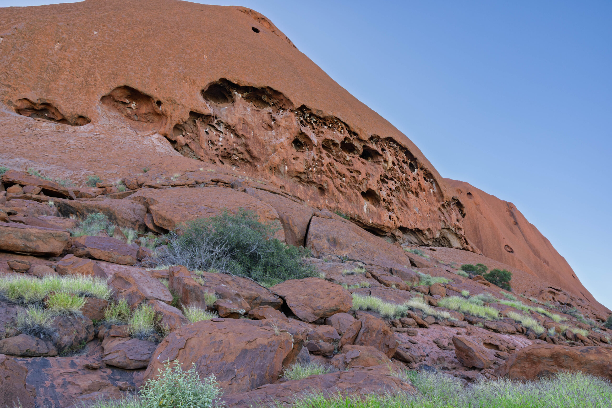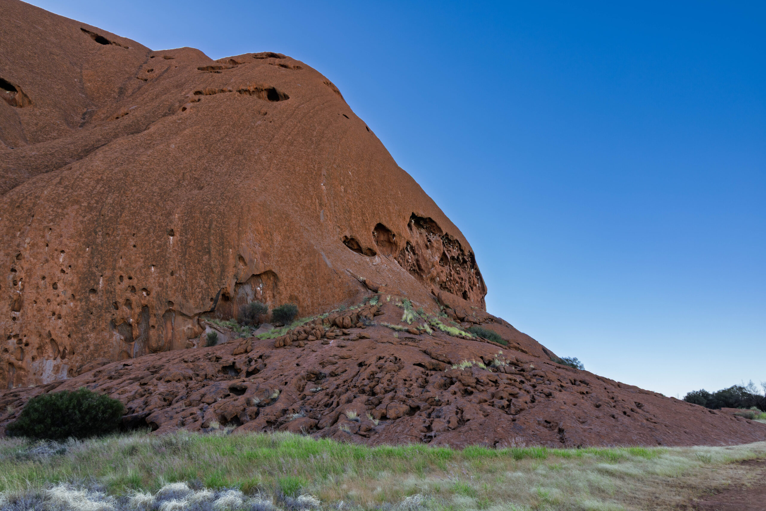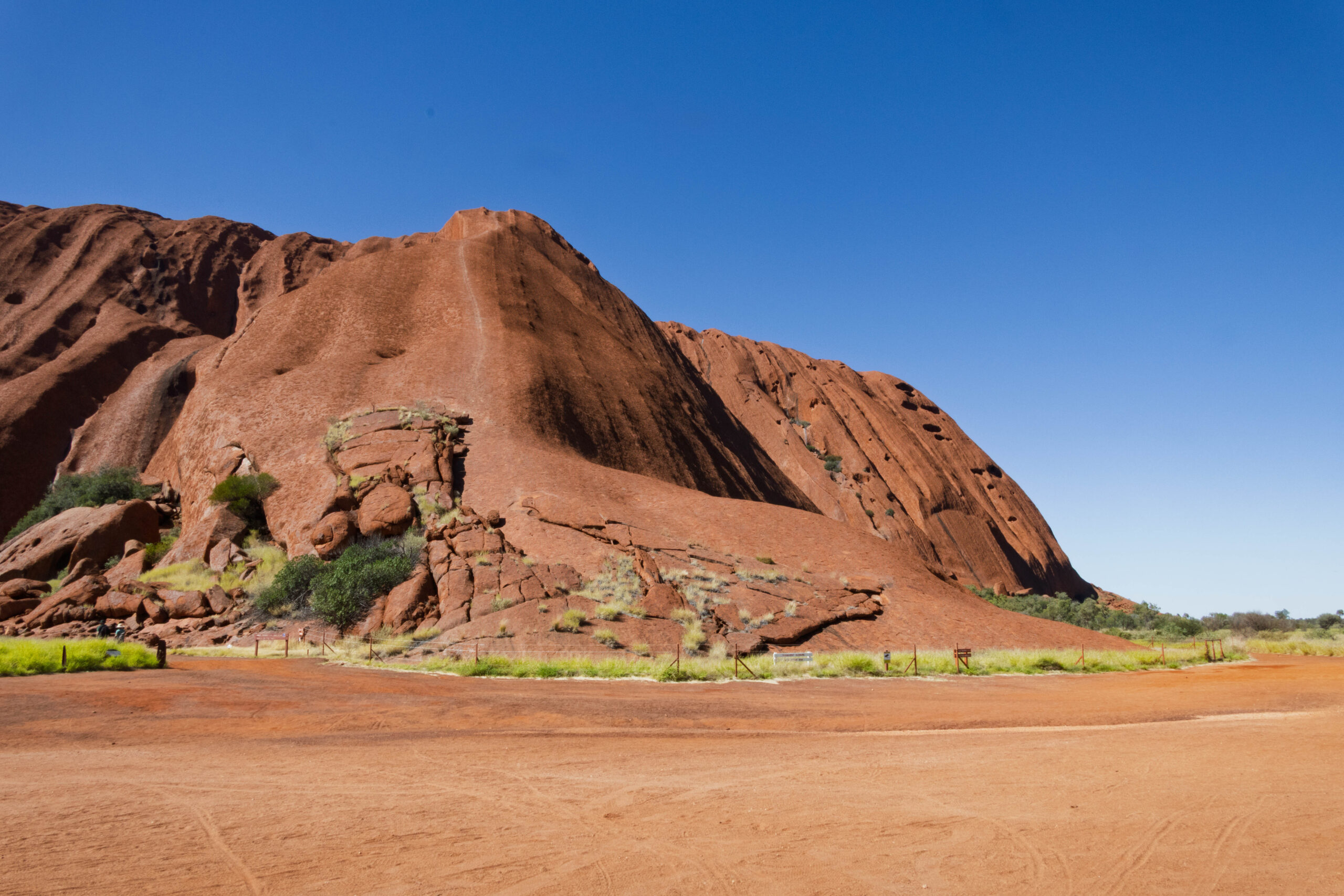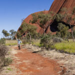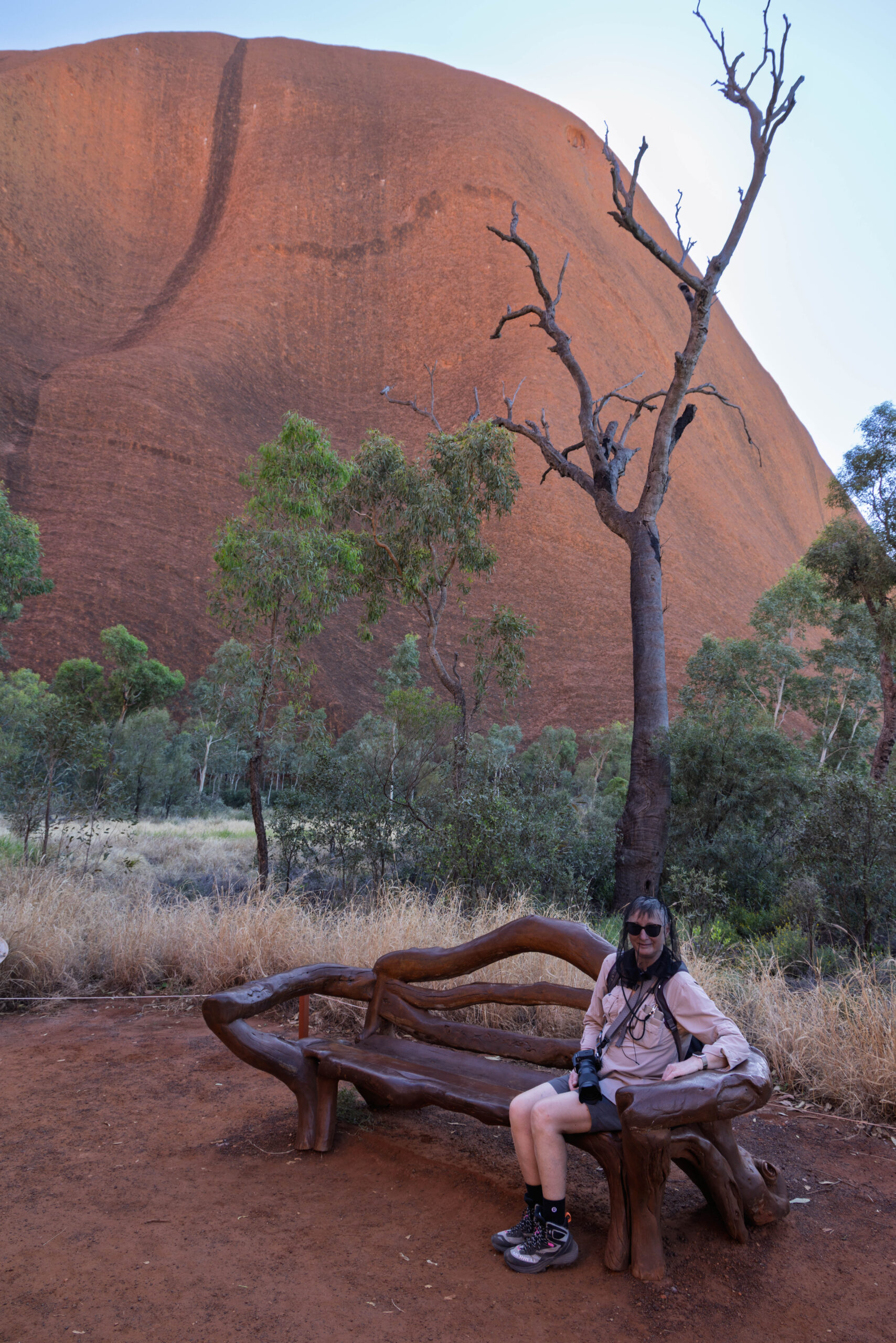Anyhow, this morning we were up early enough to ride around the base of Uluru before it got too hot. We were picked up out the front of the Outback Hotel & Lodge and taken out to the Mala Carpark. This is the carpark at the end of the rock where the climb used to be. The steel poles and chain have been removed but you can still see the wear from all the tourist foot steps that climbed it over the years. Today, you can walk, bicycle or Segway around the base of the rock to get close, but not too close to this important site. We opted to go with the bicycle option which was, of course, an easy option for Bernie and I slightly nerve wracking one for me, since I have not been on my bike in more than 10 years!