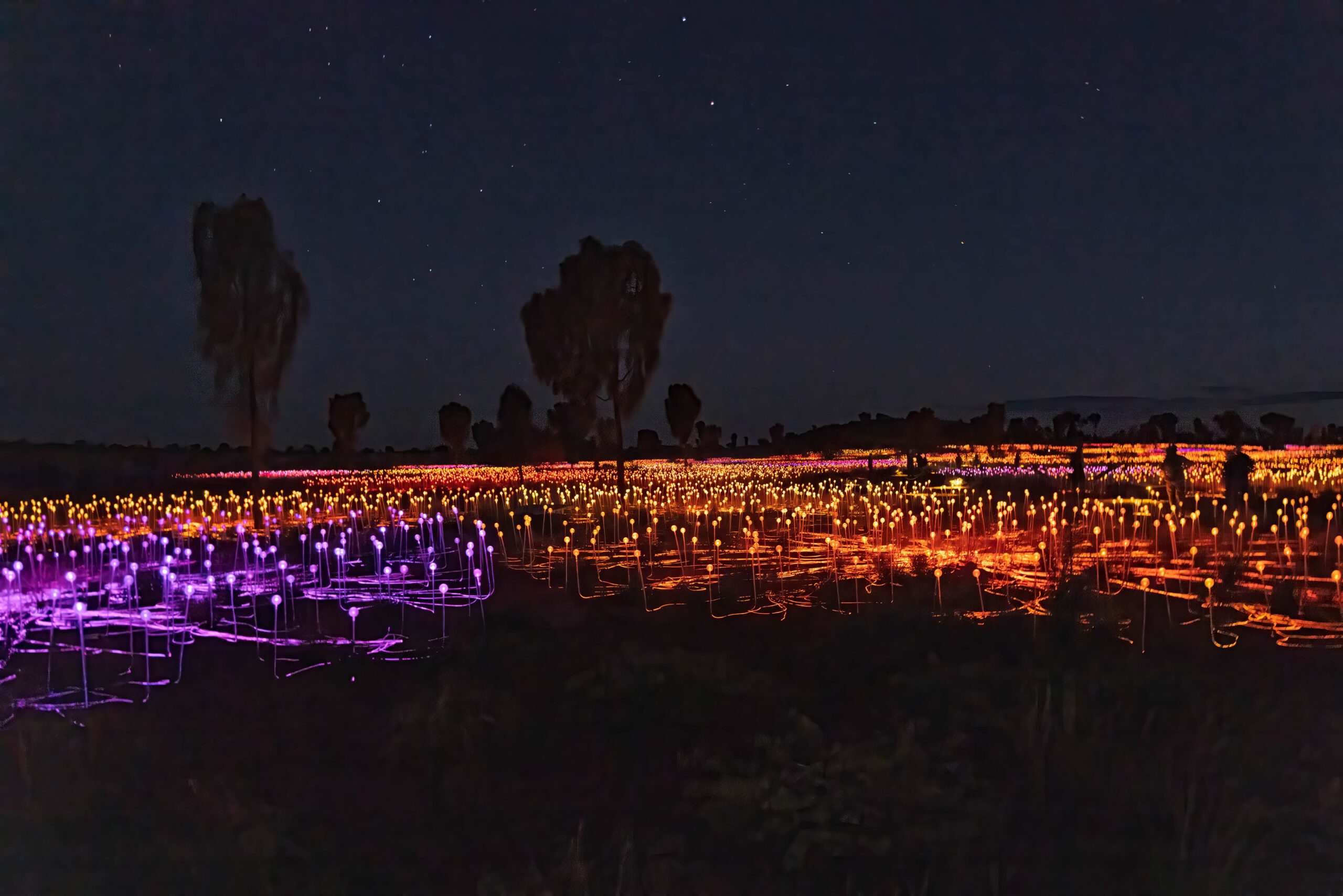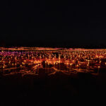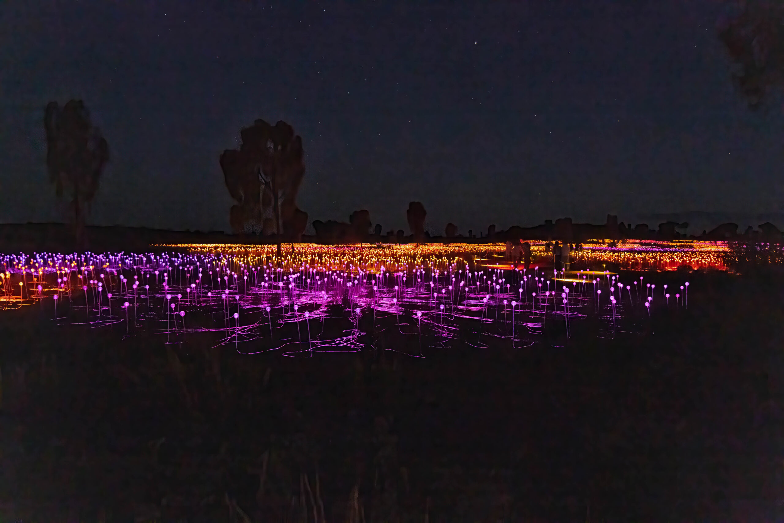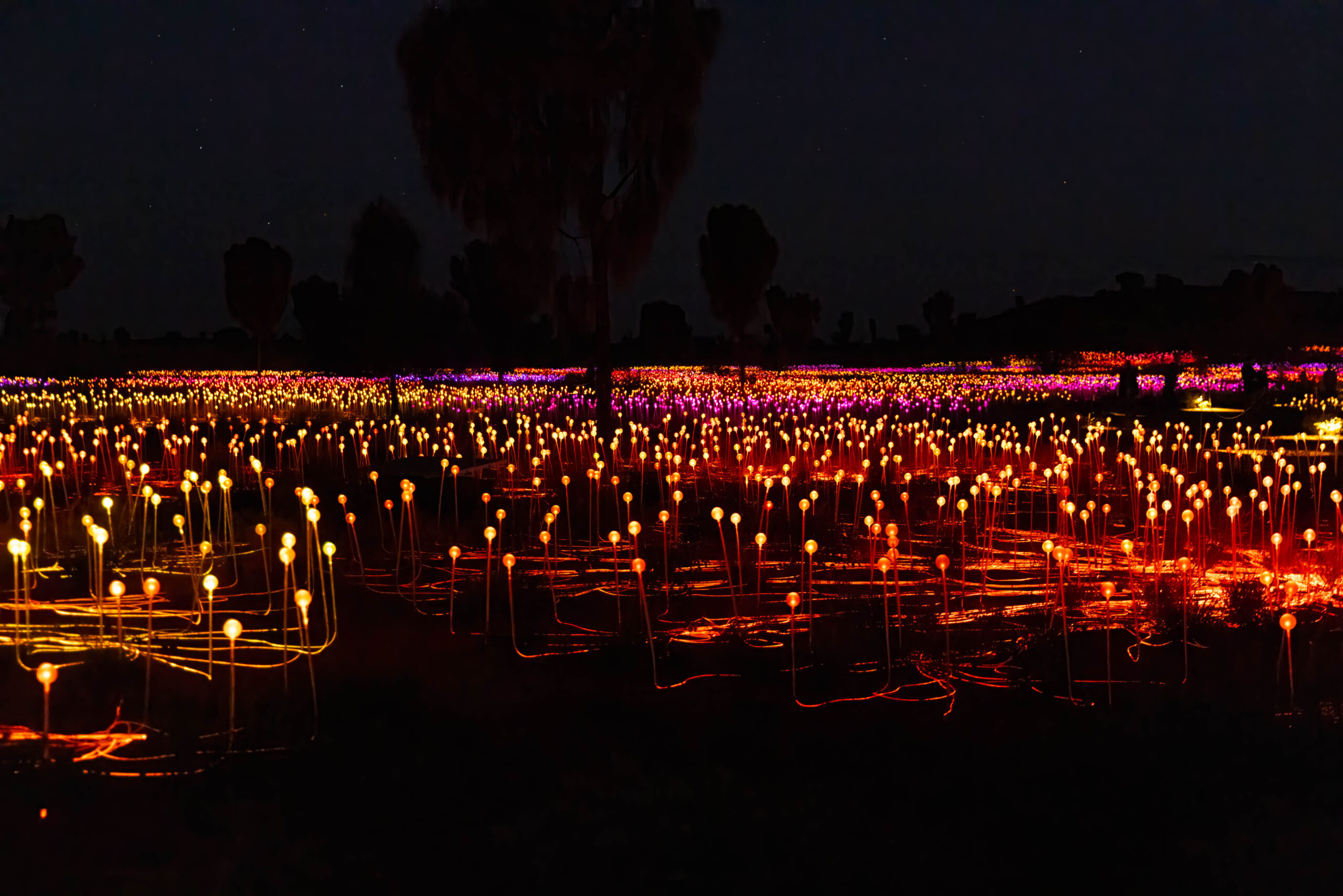 Back in town we decided it was Splice o’clock and then time to check out the pool. We spent an hour or so by the pool while we had some washing going in the laundry. The pool was … refreshing. With our washing hung out to dry behind our room, we showered and dressed to head out for another evening activity, this time the Field of Light. The Field of Light Uluru is a massive, award-winning light installation by artist Bruce Munro. Fully solar powered, the display features 50,000 spindles of light, arrayed over an area equal to seven football fields. The light spheres change colour through ochre, violet, blue and white in a design that reflects the blooming of the desert after rain. The Field of Light was installed in 2016 for a planned run of six months. Then it was extended for another six months, and another. This year it has celebrated its 10th anniversary. Our guide tonight told us that it is definitely (maybe?) going to conclude in 2029.