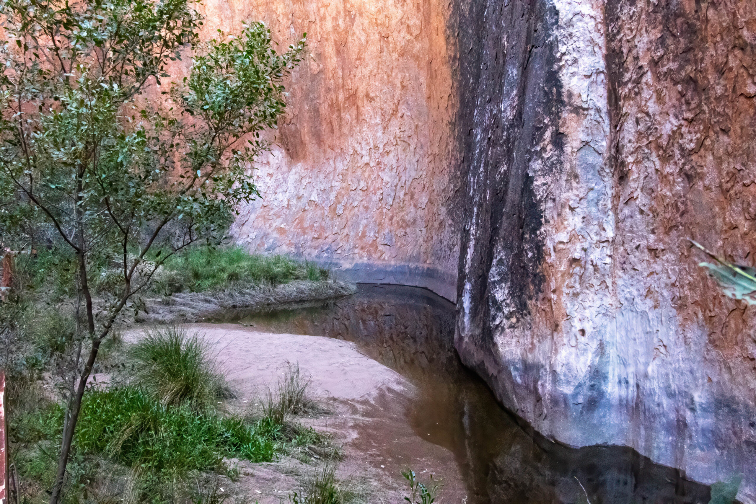 We made a couple of stops during our circuit to do two short walks. The first was the Kaniya Walk into the Mutitjulu Waterhole which was peaceful and picturesque. The second walk was the Mala Walk into the Kantju Gorge. There is a waterhole at the base of the gorge which catches water that pours off The Rock when it rains. It must be spectacular when the rainwater is cascading off the slopes.