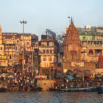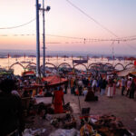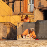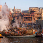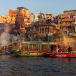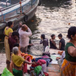 We boarded our boat and cast out onto the river, all the better to see the ghats built along the banks of the river to support the religious activities. We motored along the river absorbing the solemn atmosphere of the river as the sun rose over the eastern bank, witnessing the many pilgrims bathing in the holy waters of the Ganges. We continued past one of the crematoriums which was a little … confronting, but it is a way of life here. Families cremate their loved ones here so that their ashes can be cast into the Ganges River to liberate the soul from the cycle of rebirth.