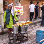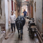We continued walking to Varanasi’s most famous temple, the Kashi Vishwanath, or ‘Golden Temple’, dedicated to the Hindu god Shiva. We did not enter the temple complex but looked through the archway to the three domes of the temple, two of which were covered in gold in 1839. The gold was donated by Punjabi Kisan Maharaja Ranjeet Singh.