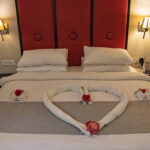 Suneet drove us back to the hotel, where Dinesh left us for a couple of hours of downtime before tonight’s activity. When we returned to our room it was to find our bed adorned with some towel art – a heart in the centre made from our bath towels with lotus flowers on each side folded from our face washers.