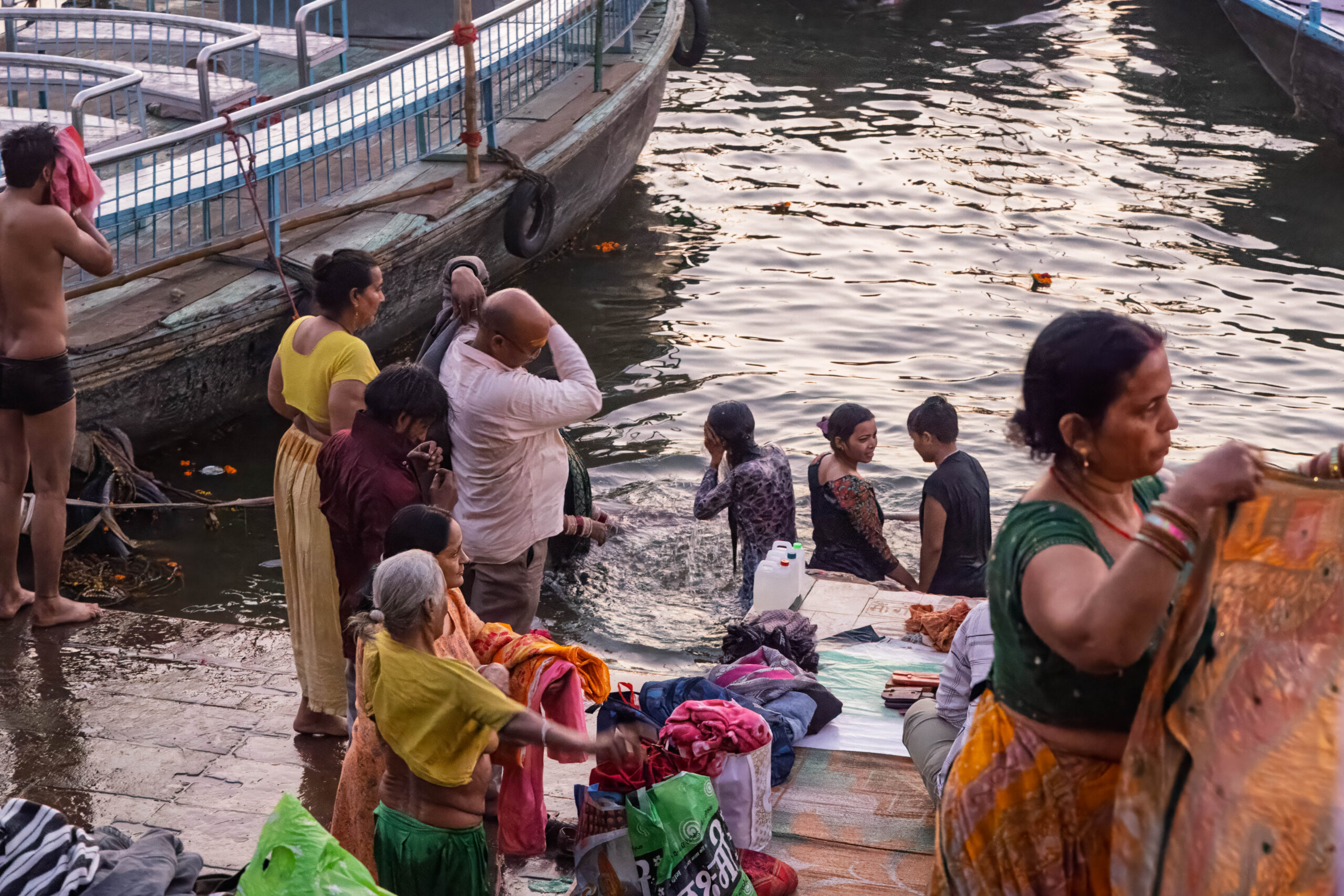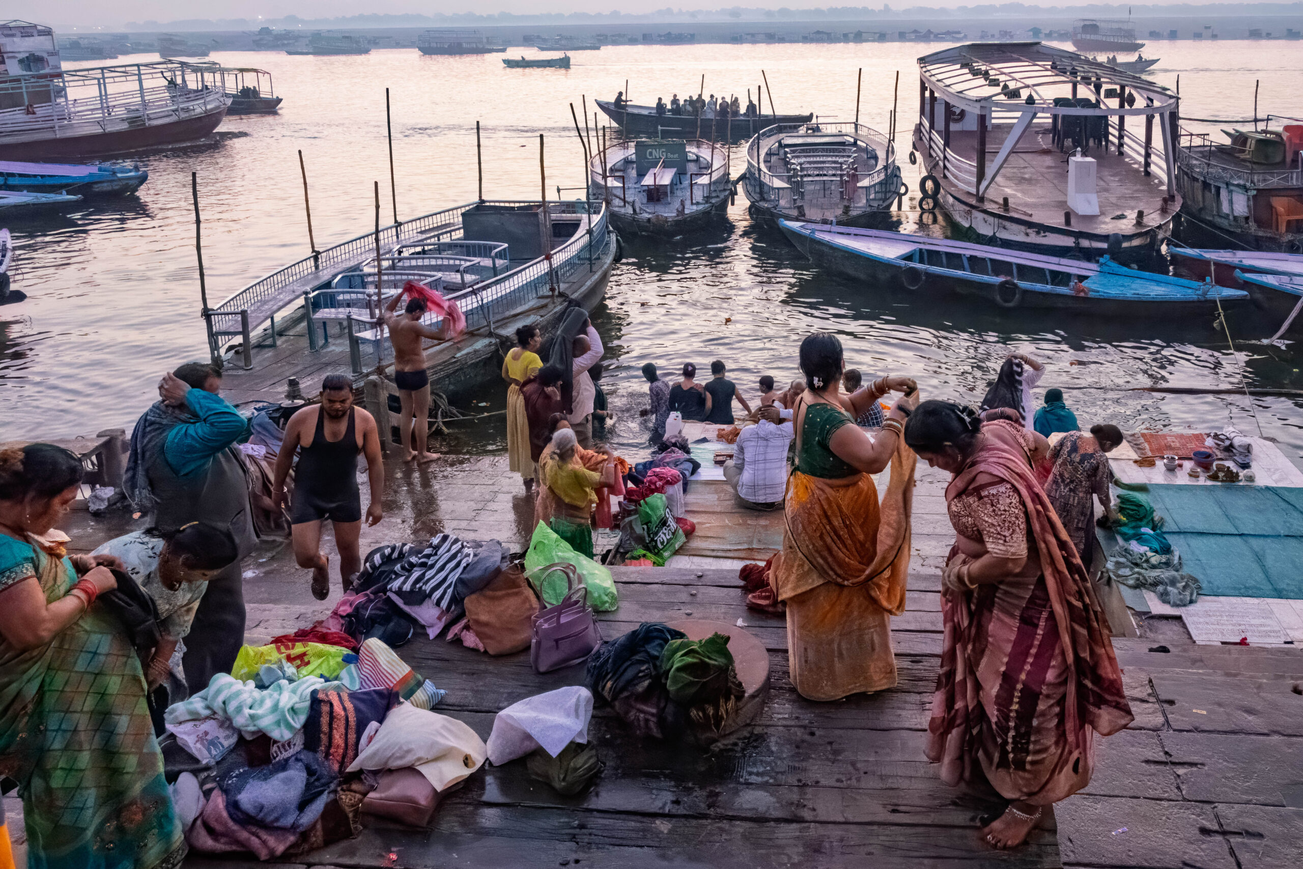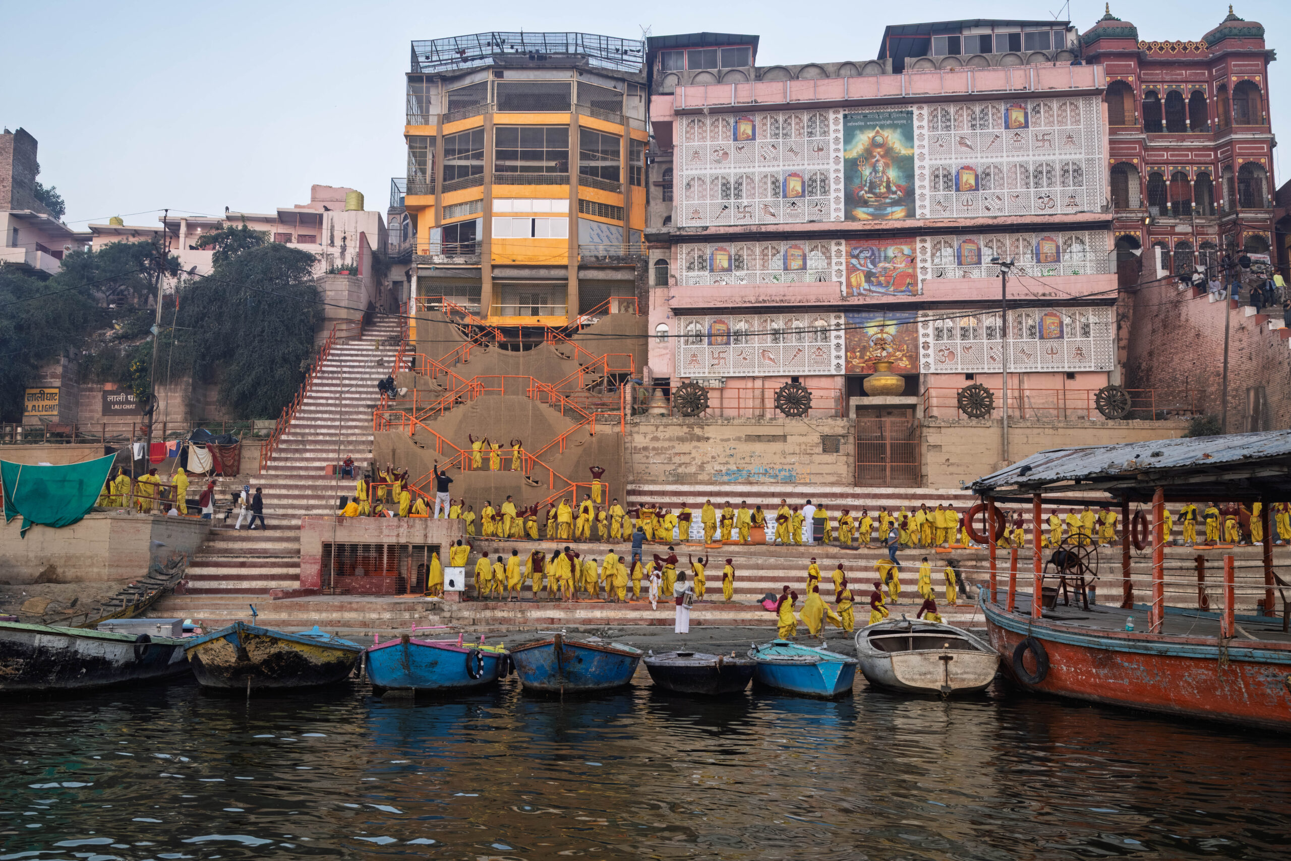 We boarded our boat and cast out onto the river, all the better to see the ghats built along the banks of the river to support the religious activities. We motored along the river absorbing the solemn atmosphere of the river as the sun rose over the eastern bank, witnessing the many pilgrims bathing in the holy waters of the Ganges. We continued past one of the crematoriums which was a little … confronting, but it is a way of life here. Families cremate their loved ones here so that their ashes can be cast into the Ganges River to liberate the soul from the cycle of rebirth.