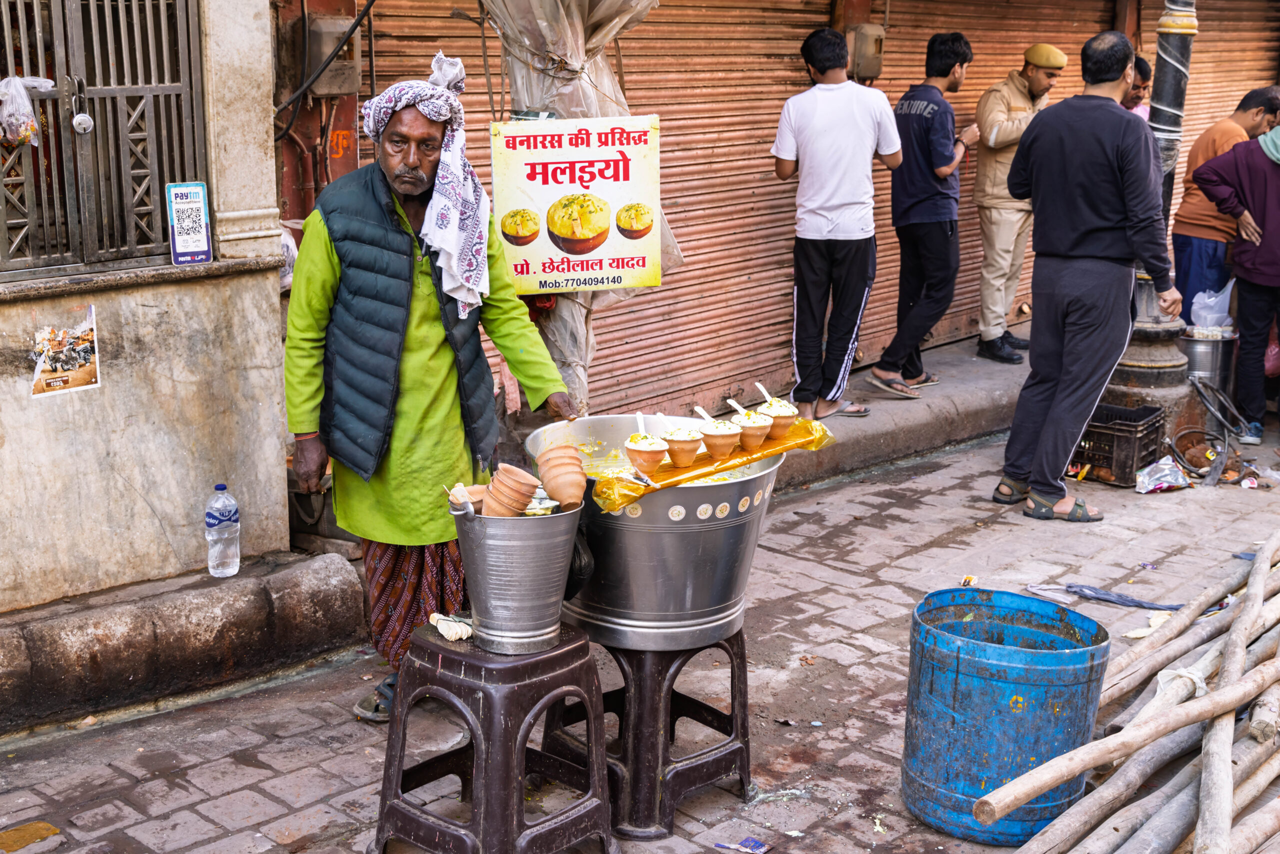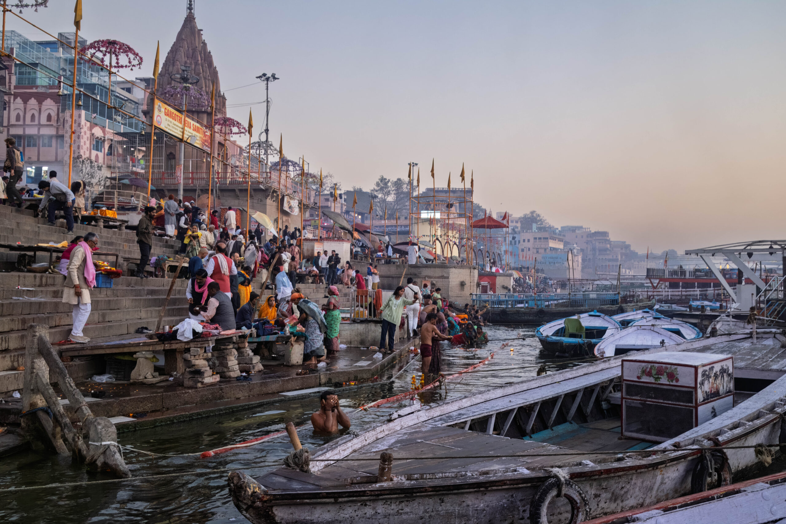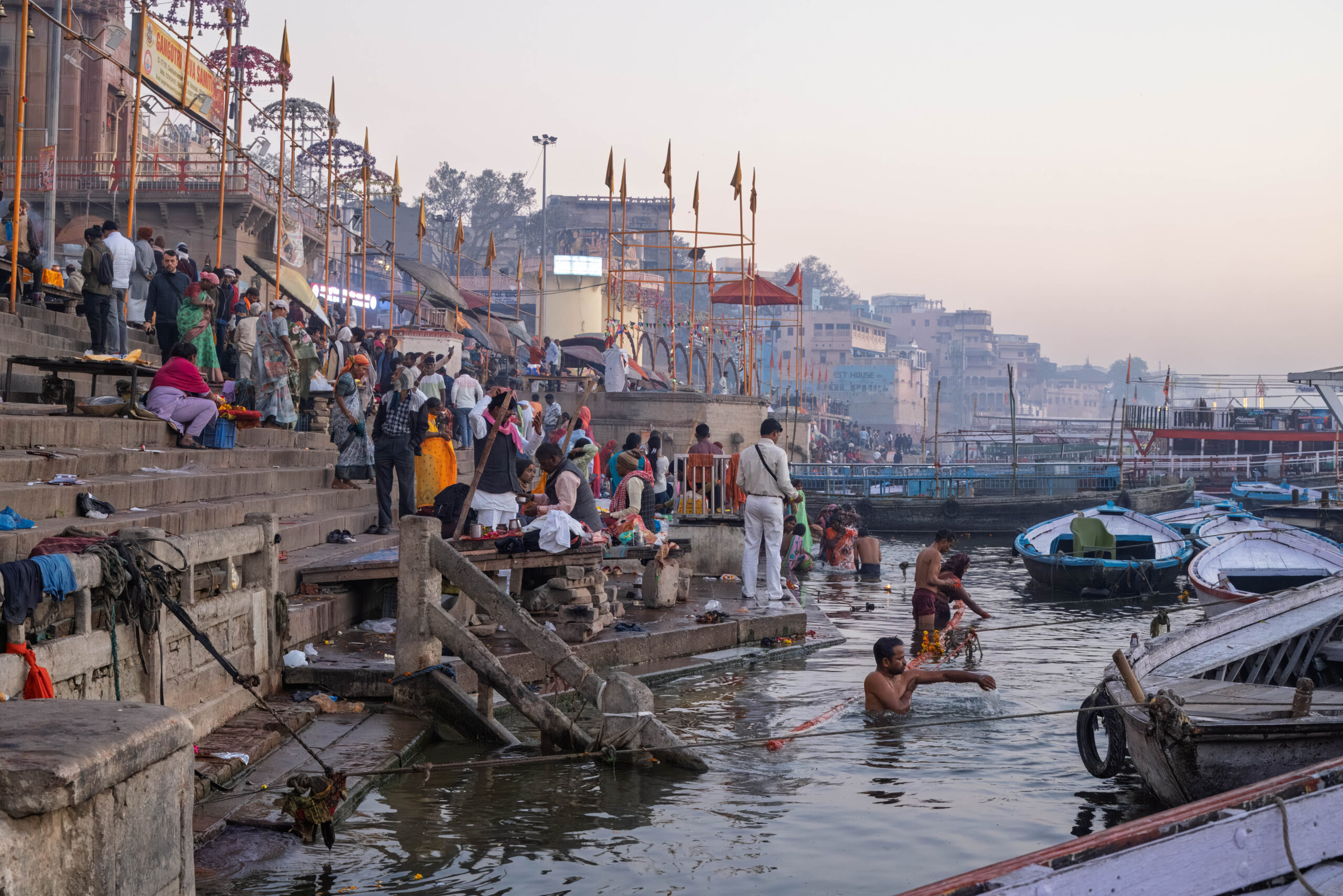 We boarded our boat and cast out onto the river, all the better to see the ghats built along the banks of the river to support the religious activities. We motored along the river absorbing the solemn atmosphere of the river as the sun rose over the eastern bank, witnessing the many pilgrims bathing in the holy waters of the Ganges. We continued past one of the crematoriums which was a little … confronting, but it is a way of life here. Families cremate their loved ones here so that their ashes can be cast into the Ganges River to liberate the soul from the cycle of rebirth.
