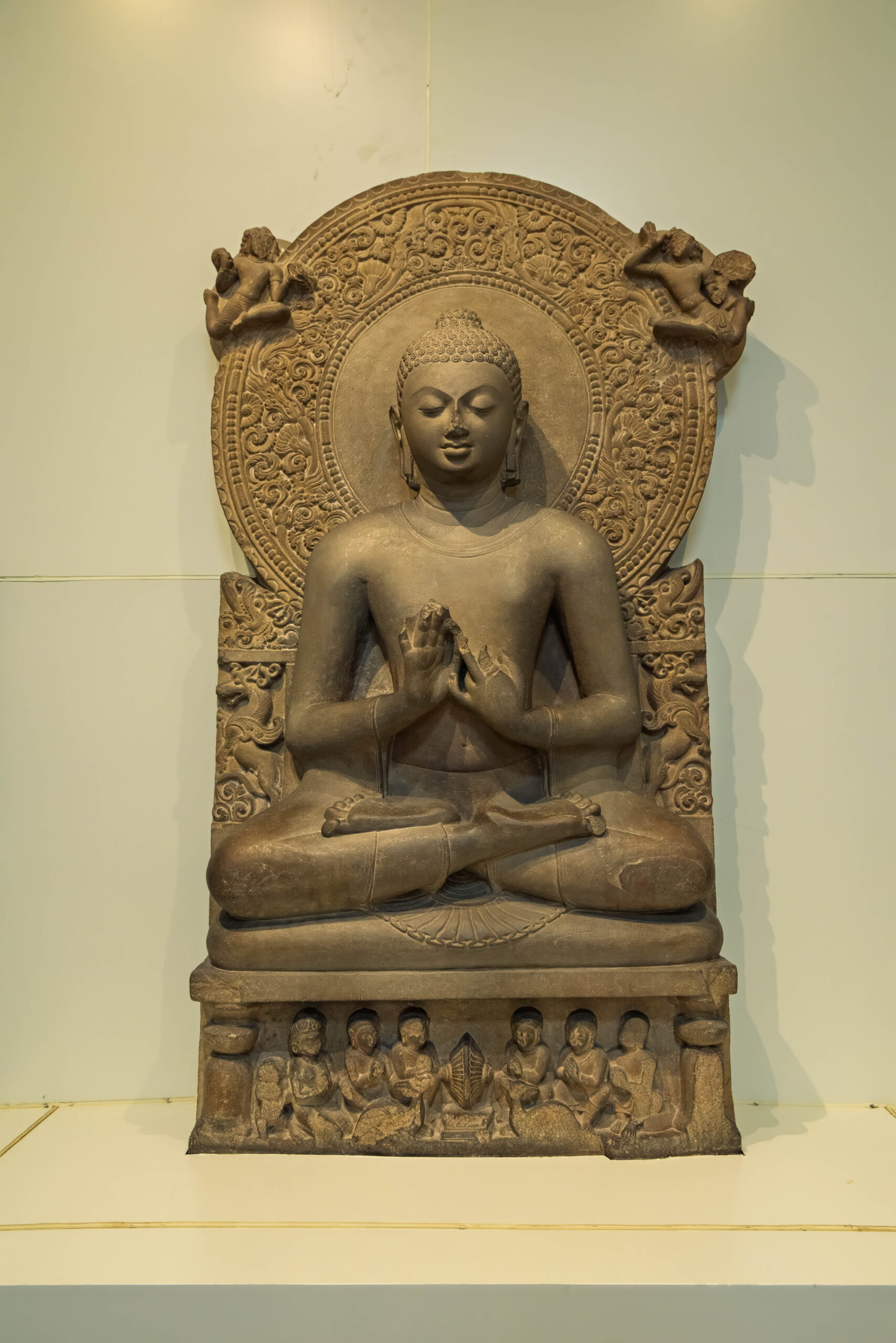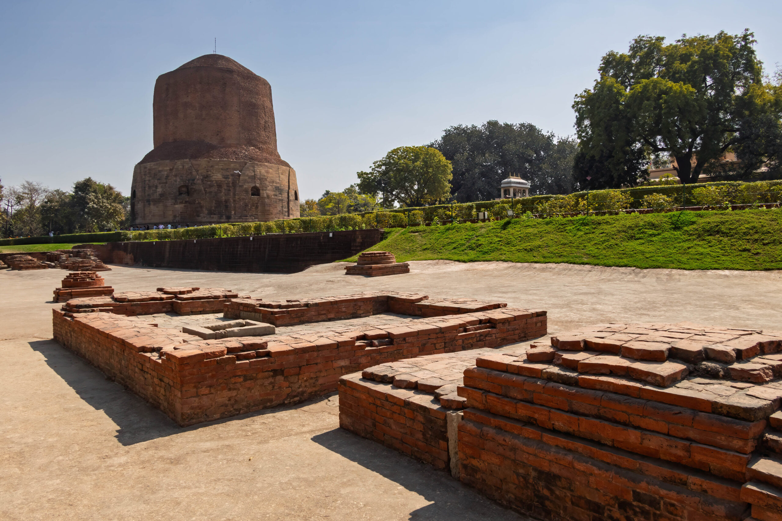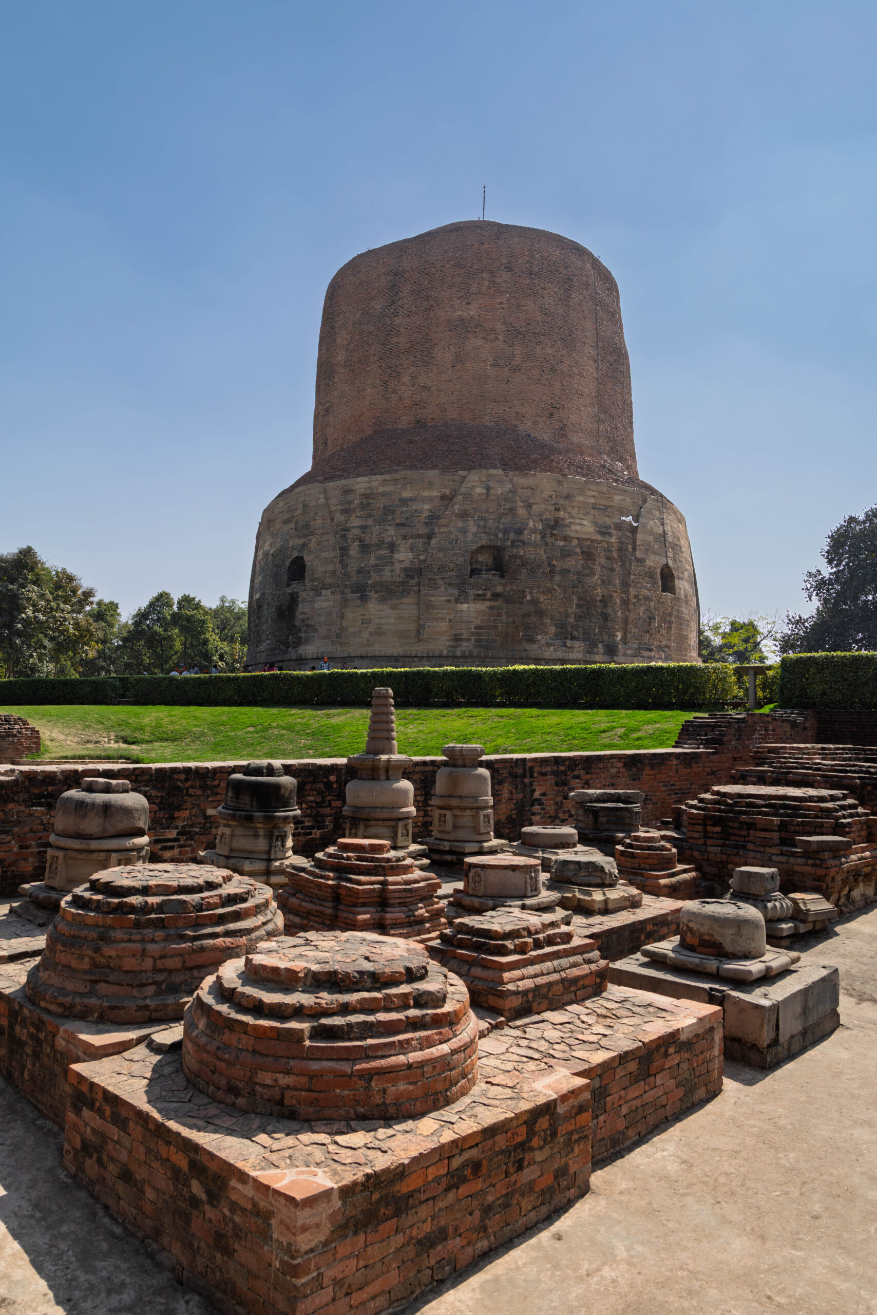 Back at the hotel it was well and truly time for a late (9.30am) breakfast. At 11.00am we rejoined Dinesh in the foyer, before squeezing back into the bus to have Suneet drive us to the city of Sarnath, just 10 kilometres from Varanasi. Sarnath is a highly revered Buddhist pilgrimage centre as it’s believed that after reaching enlightenment at Bodh Gaya, Lord Buddha preached his first sermon here. The great Dhamek Stupa, and several other structures, stand testimony to the importance the place enjoyed at that time. The Chaukhandi Stupa is where, during his first visit to Sarnath, Lord Buddha met his first five disciples. The area is a treasure trove of archaeological findings such as Dharmarajika Stupa and Mulagandha Kuti Vihar.