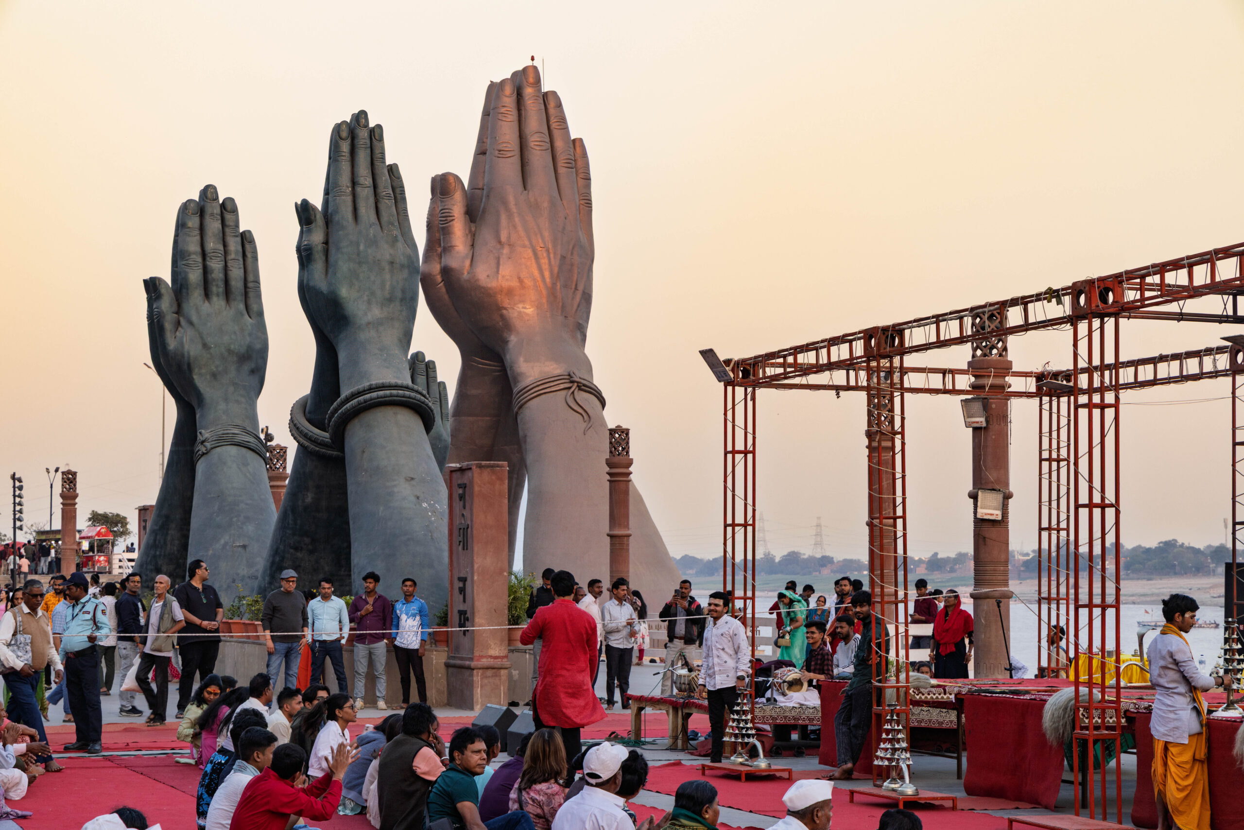 We were picked up again at 5.00pm to drive back to the Ganges River to witness the glittering Aarti ceremony that takes place every day at dusk. Once again, we joined a river of people making their way to the actual river. Dinesh secured us positions on the red carpet right in front of the ‘stages’. It was a bit hard sitting on the concrete covered with a very thin red carpet but, we were very close to the ceremony.
